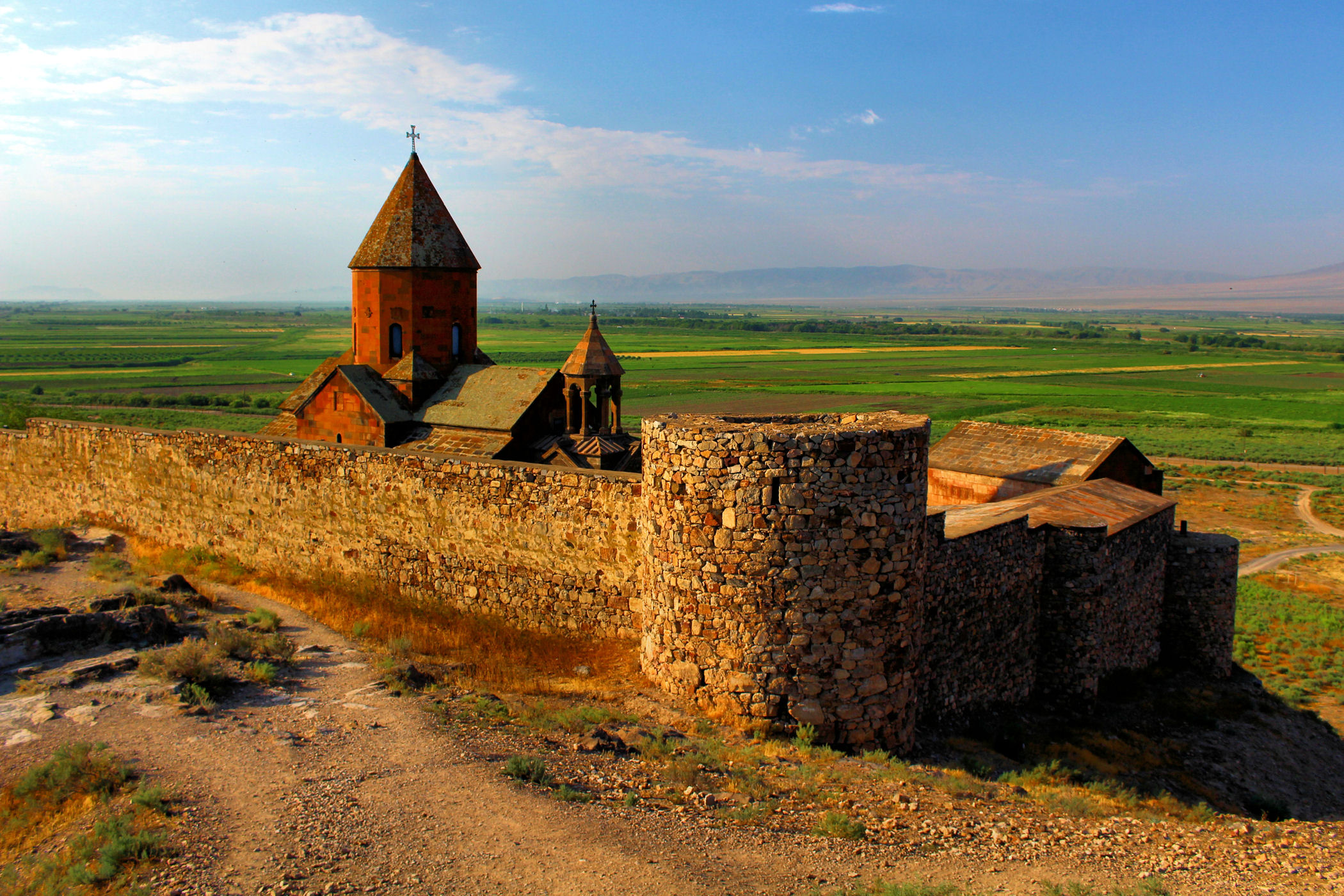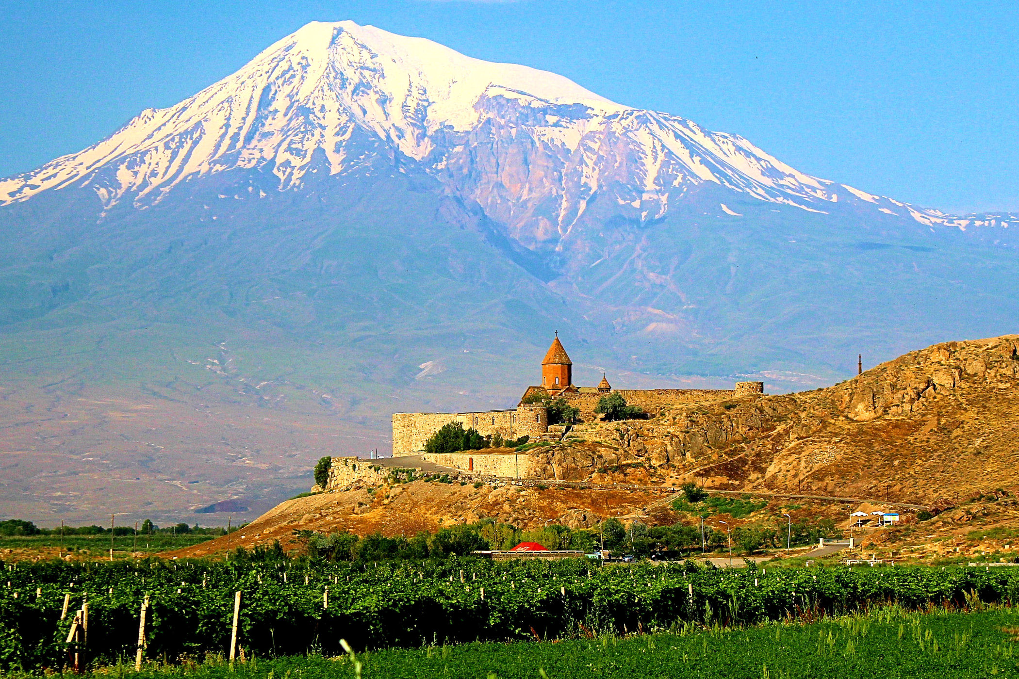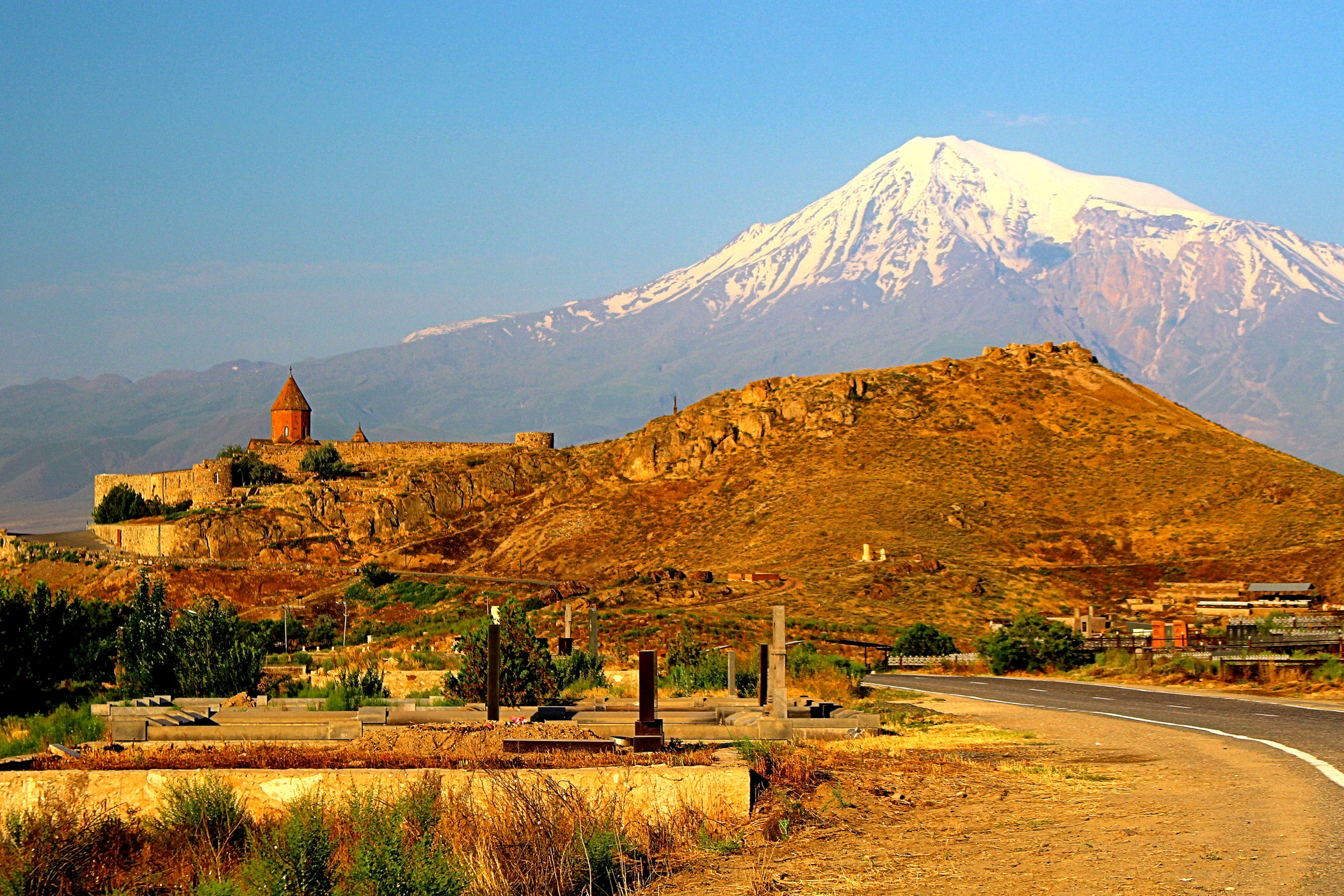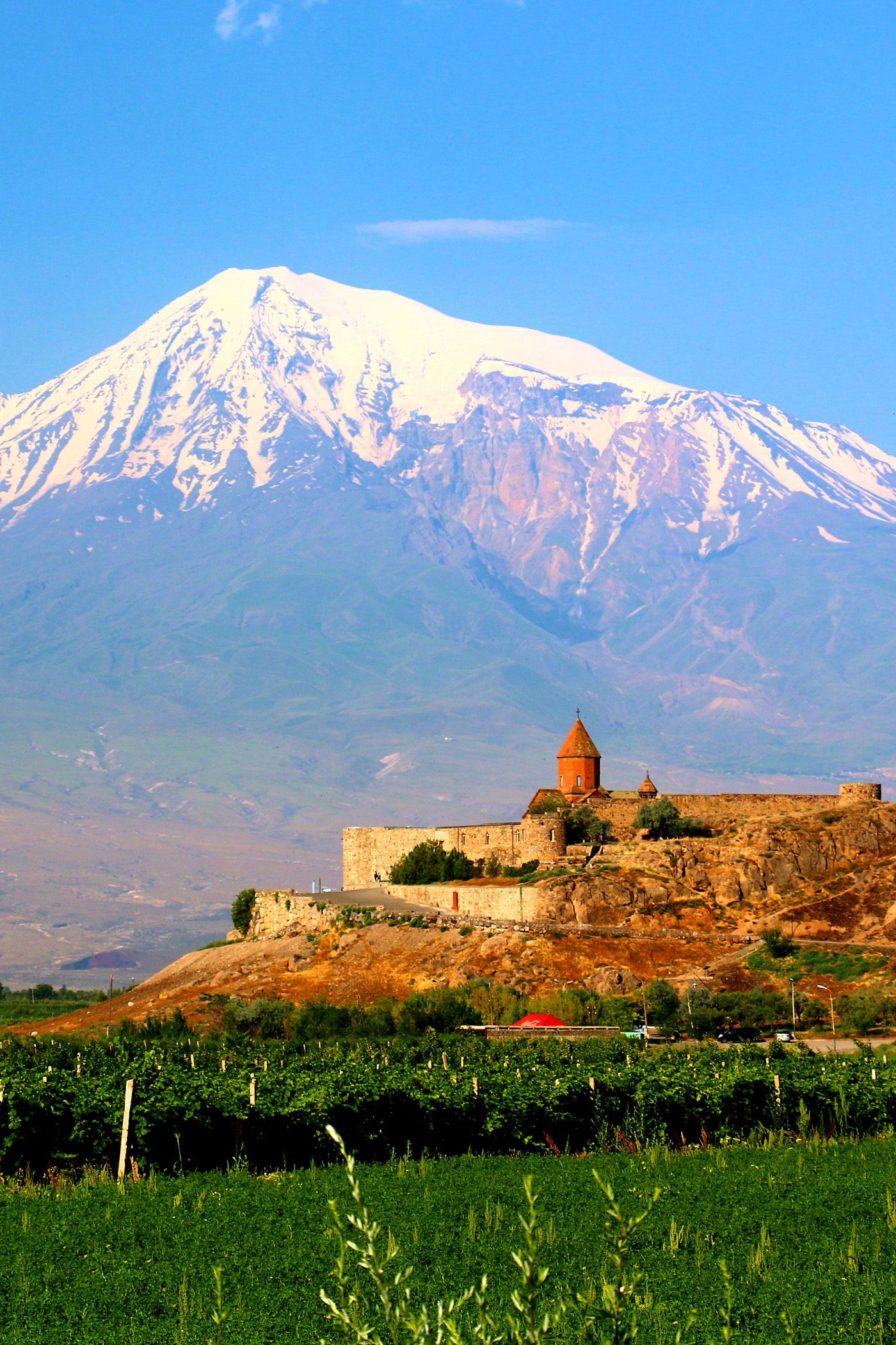 Klasztor Chor Wirap i Ararat w świetle wschodzącego słońca