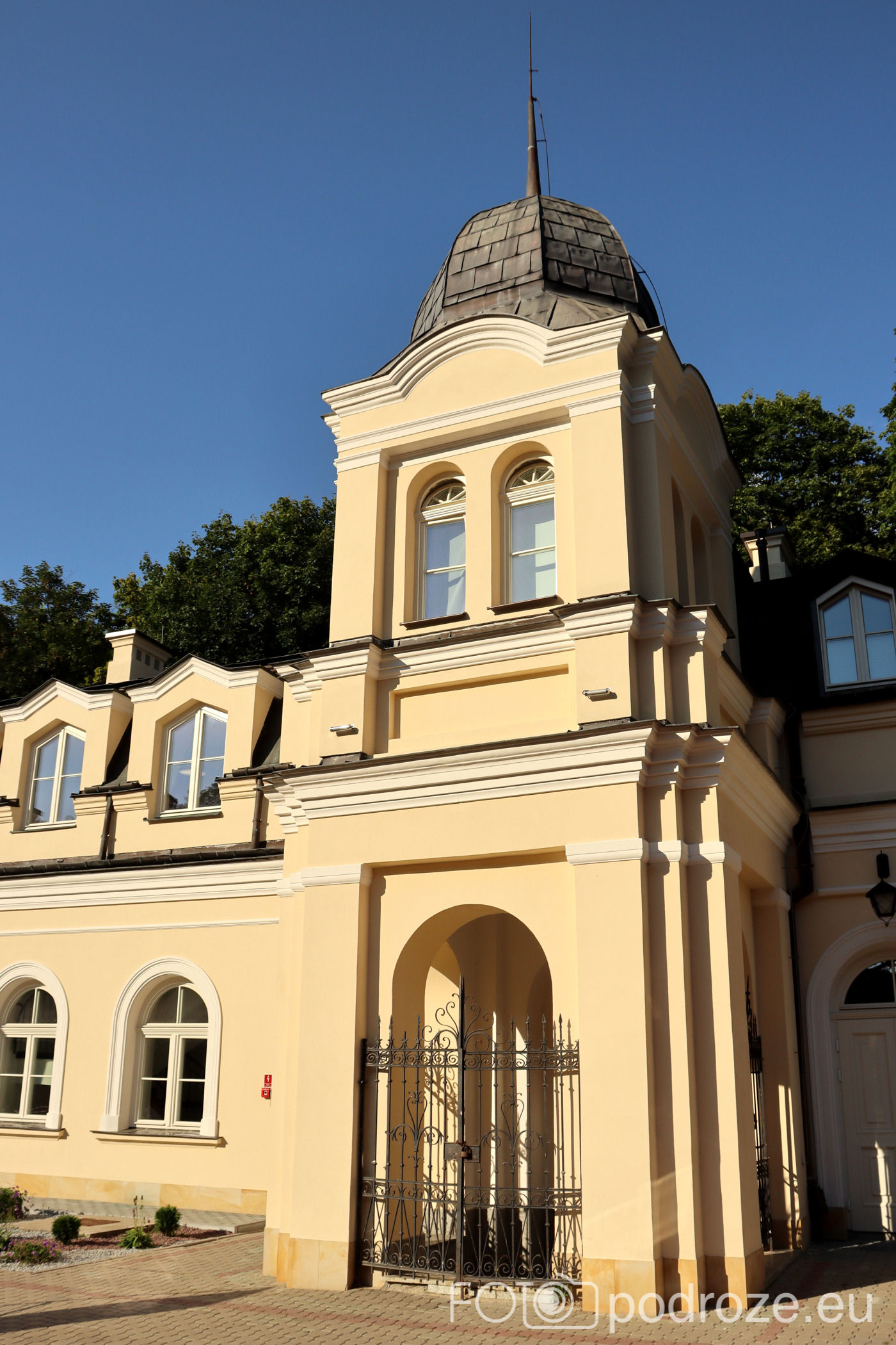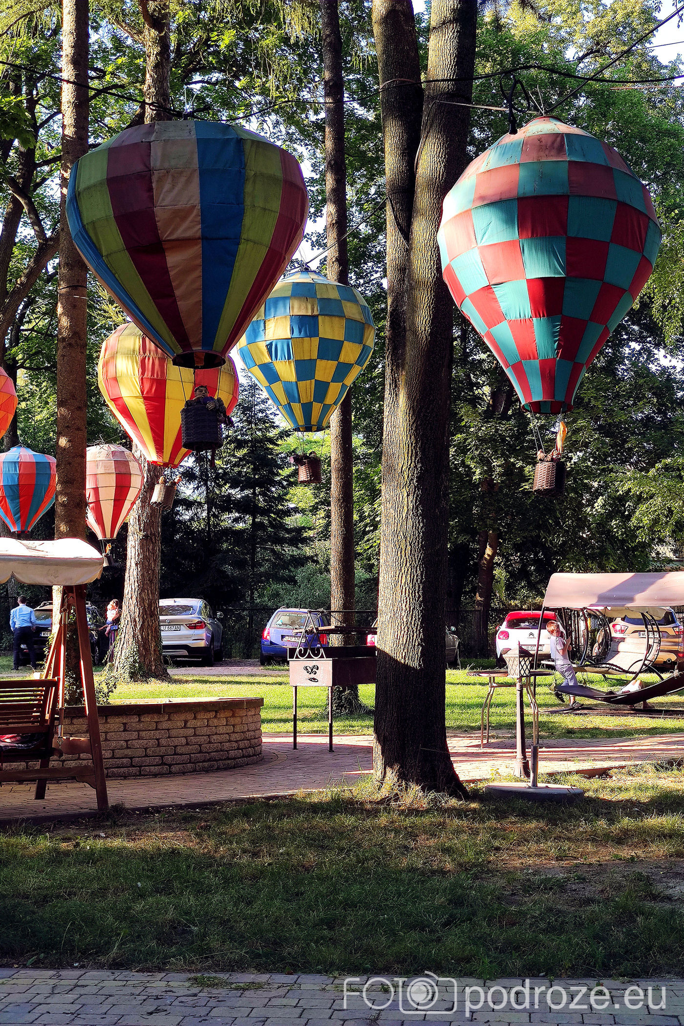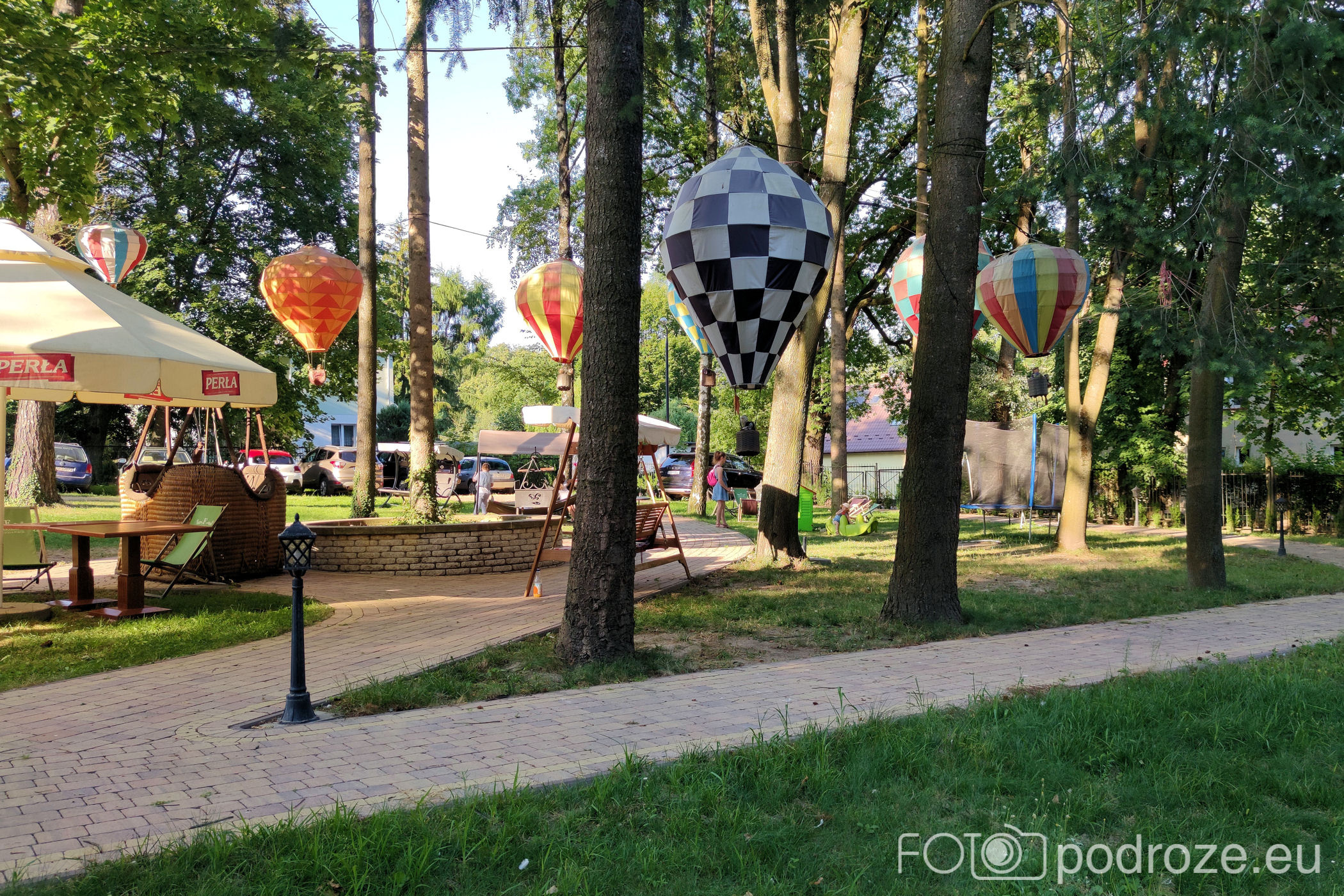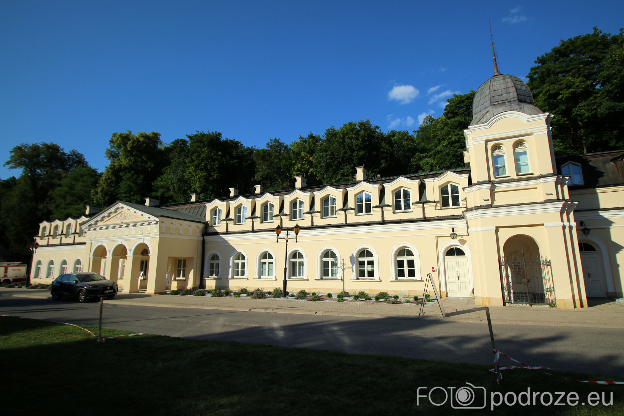 W sercu Nałęczowa znajduje się Park Zdrojowy. Wchodzimy do niego Bramą Zachodnią i kawałek dalej jesteśmy już pod obiektem Starych Łazienek. Odbywa się tu właśnie jakiś koszmarny koncert na zakończenie zawodów balonowych (chyba jedyny w dobie pandemii) i śmiejemy się, że pandemia ma także dobre strony – cisza w takim miejscu była by wskazana , a tu jakby na przekór, odbywa się coś co nie powinno.