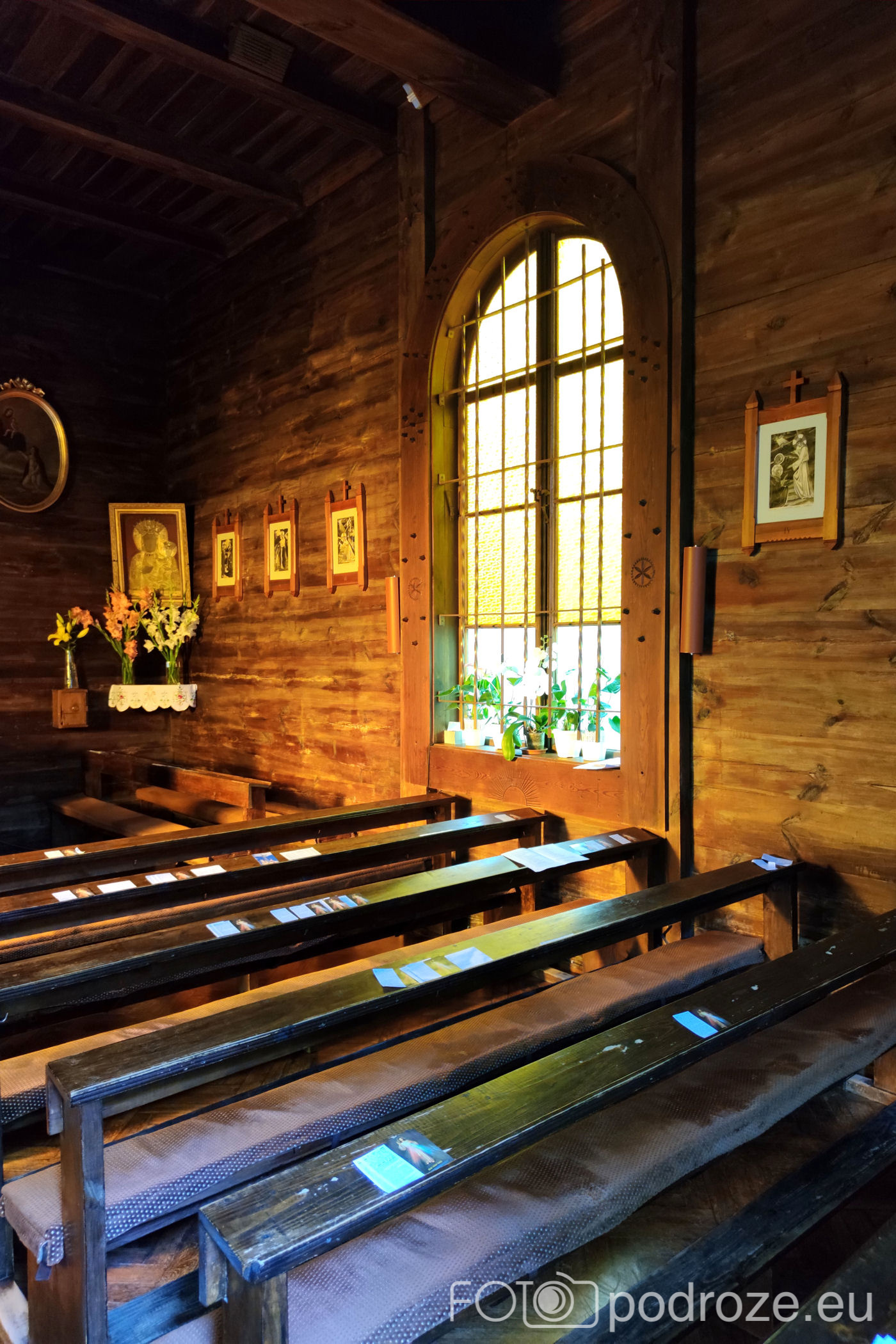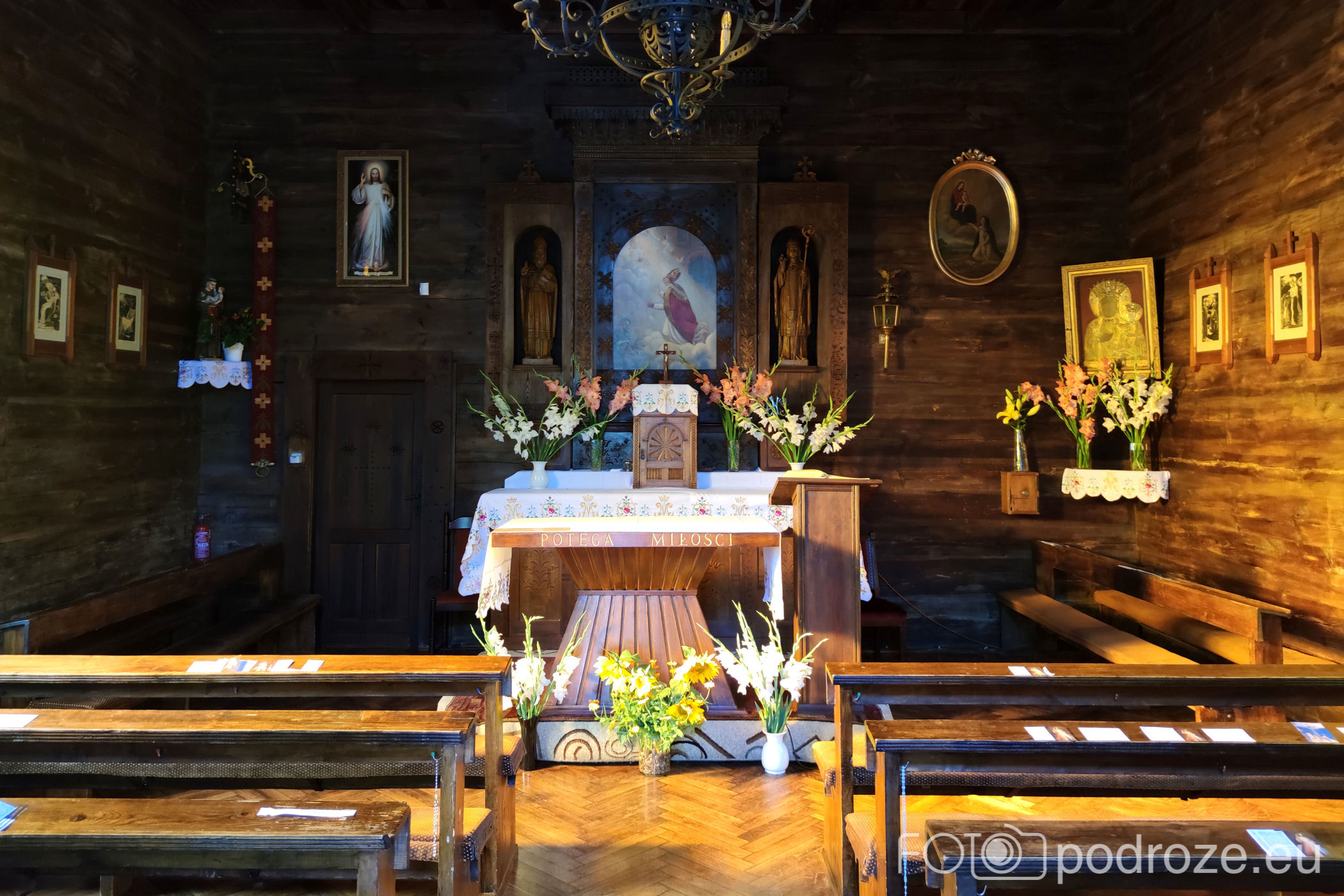 Jak już będziemy przy domu Żeromskiego warto zajrzeć do pobliskiego kościółka znajdującego się przy głównej Ulicy Armatnia Góra 18 . Styl zakopiański zaobserwujemy także w architekturze tego malutkiego drewnianego kościółka wzniesionego na początku XX wieku. W środku znajduje się ołtarz z obrazem patrona parafii, a barierki ozdobione są zwierzątkami.