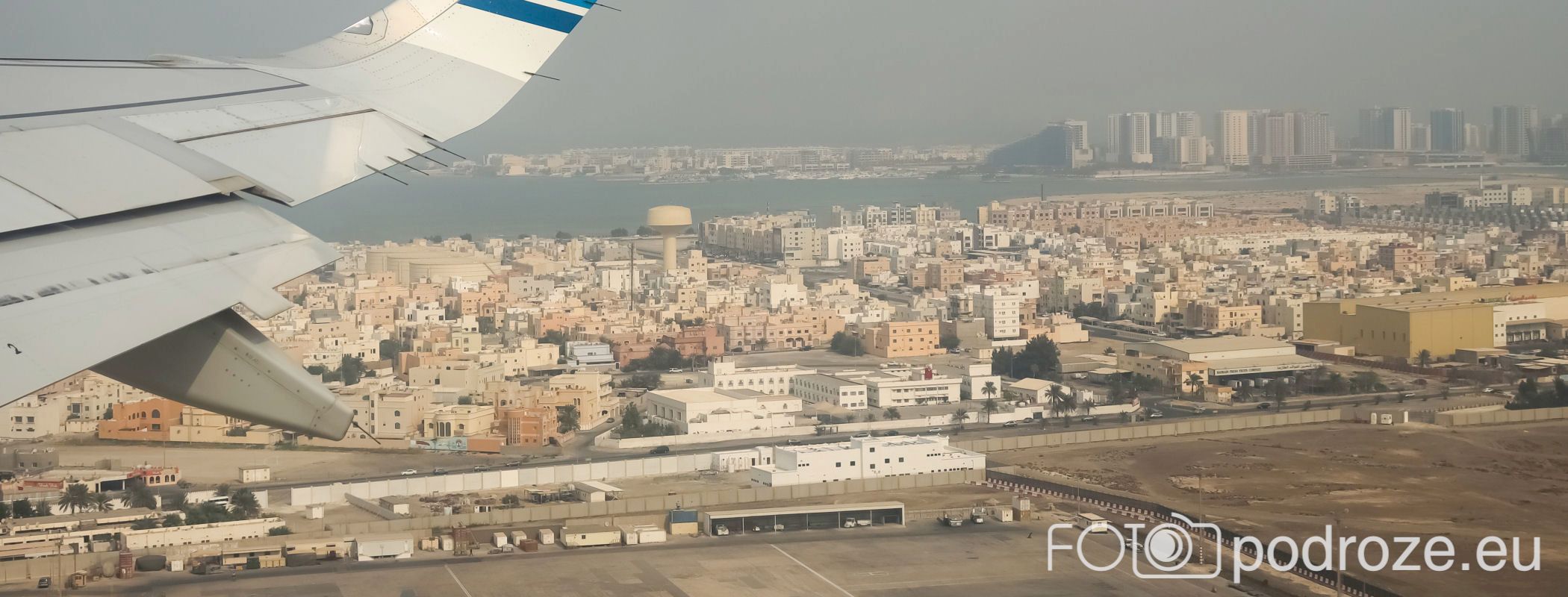Z Polski nie ma bezpośrednich lotów. Można tu dotrzeć z przesiadką z krajów sąsiednich. W Bahrajnie jest tylko 1 lotnisko międzynarodowe w stolicy. Jest też opcja dostania się promem z Kataru lub mostem z Arabii Saudyjskiej. My dostaliśmy się tutaj z Kuwejtu liniami kuwejckimi. Przelot zajął około 50 minut.