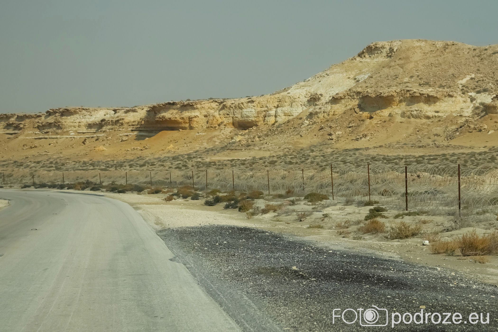 Jak już pisałam, pustynia w Bahrajnie nie jest zbyt ciekawa. Po za kilkoma miejscami ze skałami, w zasadzie jest tu piaszczysty, szaro-beżowy płaskowyż. Wzdłuż dróg ciągną się ogrodzenia mające na celu ochronę wielbłądów, które mogły by wejść pod koła pędzących samochodów.