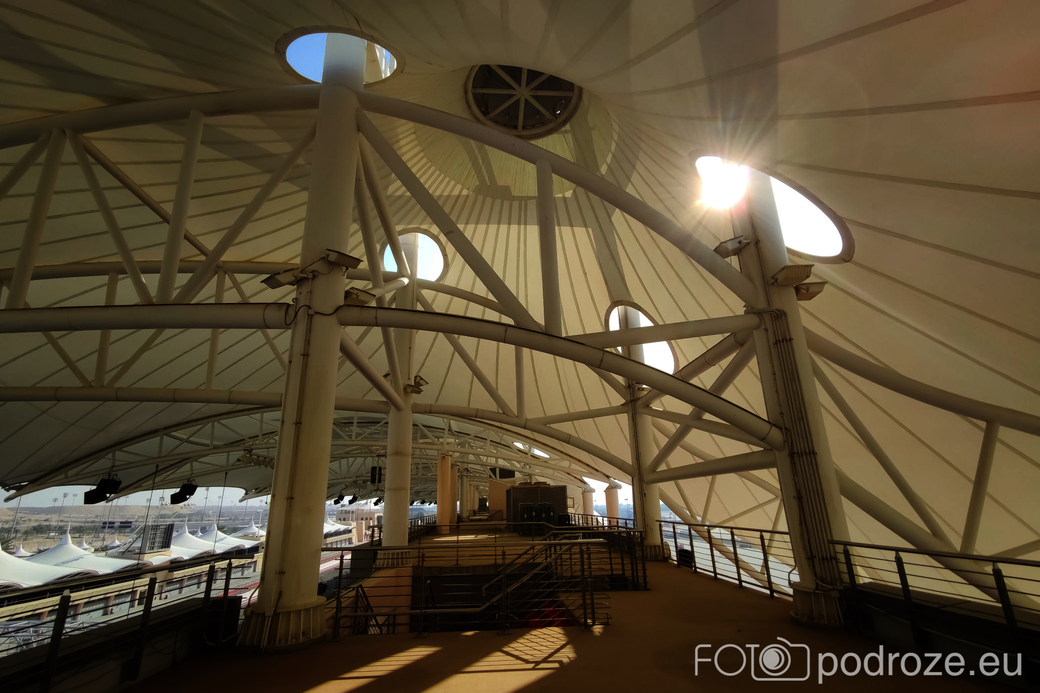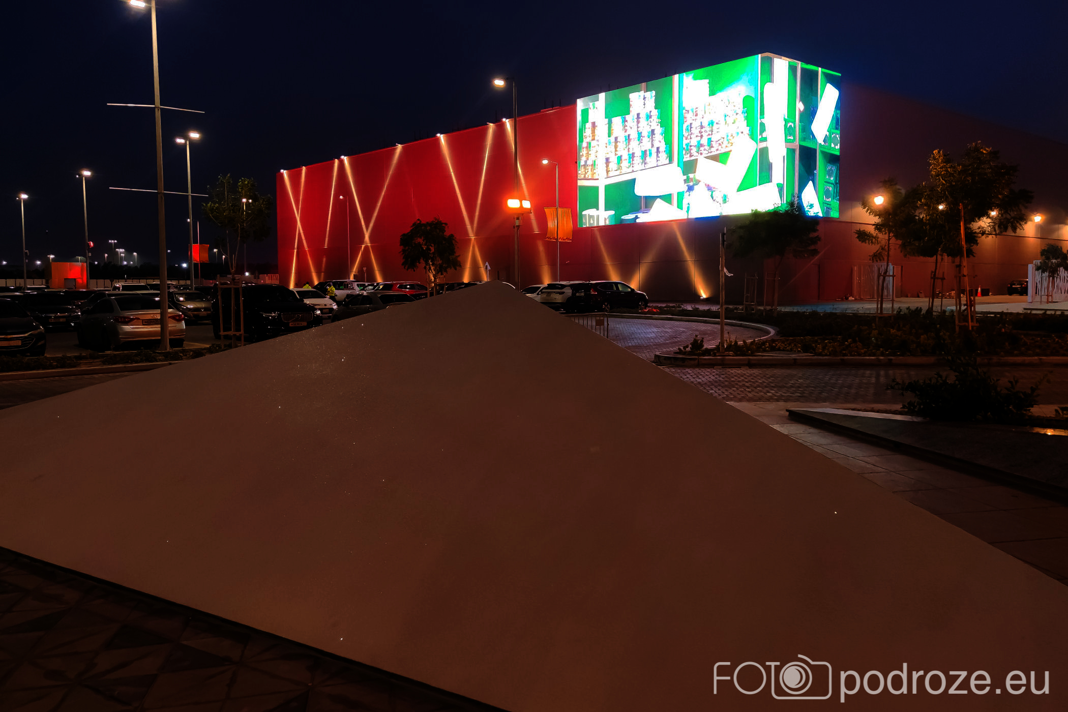 Exhibition World Bahrain. Podjeżdżamy do wjazdu, bo architektura wygląda wyjątkowo ciekawie, po to aby dowiedzieć się, co tam się odbywa. Dowiadujemy się od ochroniarza, że centrum będzie czynne od 16.00.