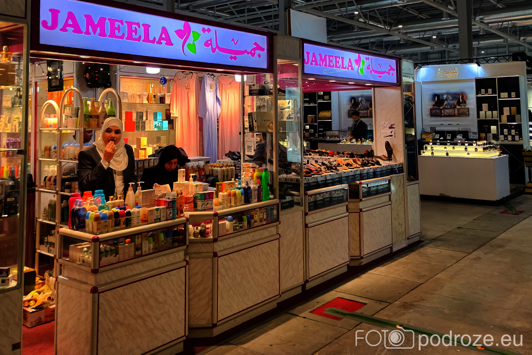 Czekamy więc w parku z mini ogrodem zoologicznym o którym pisze poniżej i po 16 meldujemy się na zapchanym już w połowie ogromnym parkingu. Aby wejść musimy się zarejestrować, potem idziemy kilometrowym korytarzem do jednej z ostatnich hal. Okazuje się, że trafiliśmy tu na największe targi odzieży, perfum oraz żywności i przypraw, odbywające się tu raz w roku. Było to dość zaskakujące, bo spodziewaliśmy się czegoś w rodzaju wystawy EXPO, ale nie omieszkaliśmy wykorzystać okazji, aby nabyć sporo fajnych ciuszków za grosze .