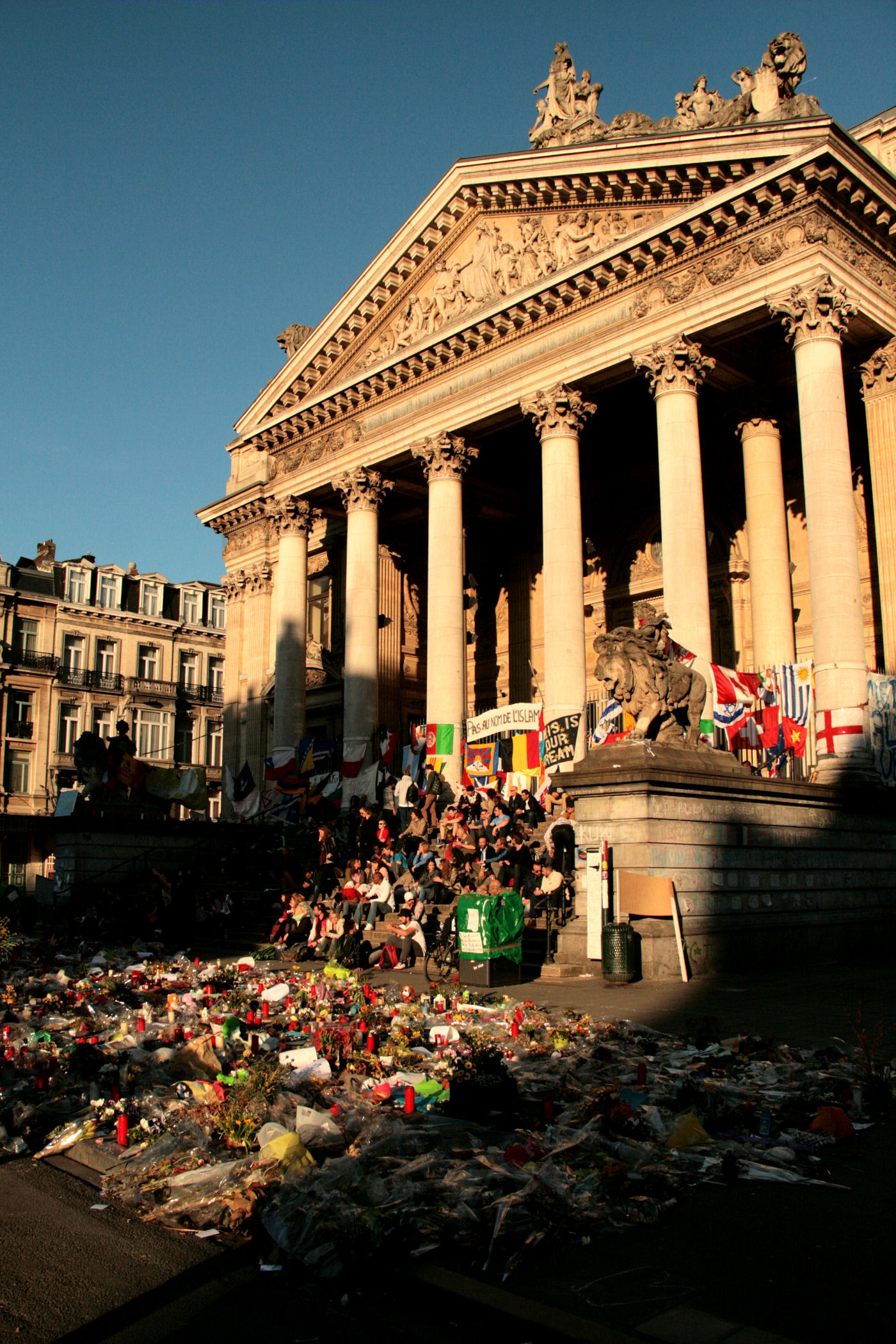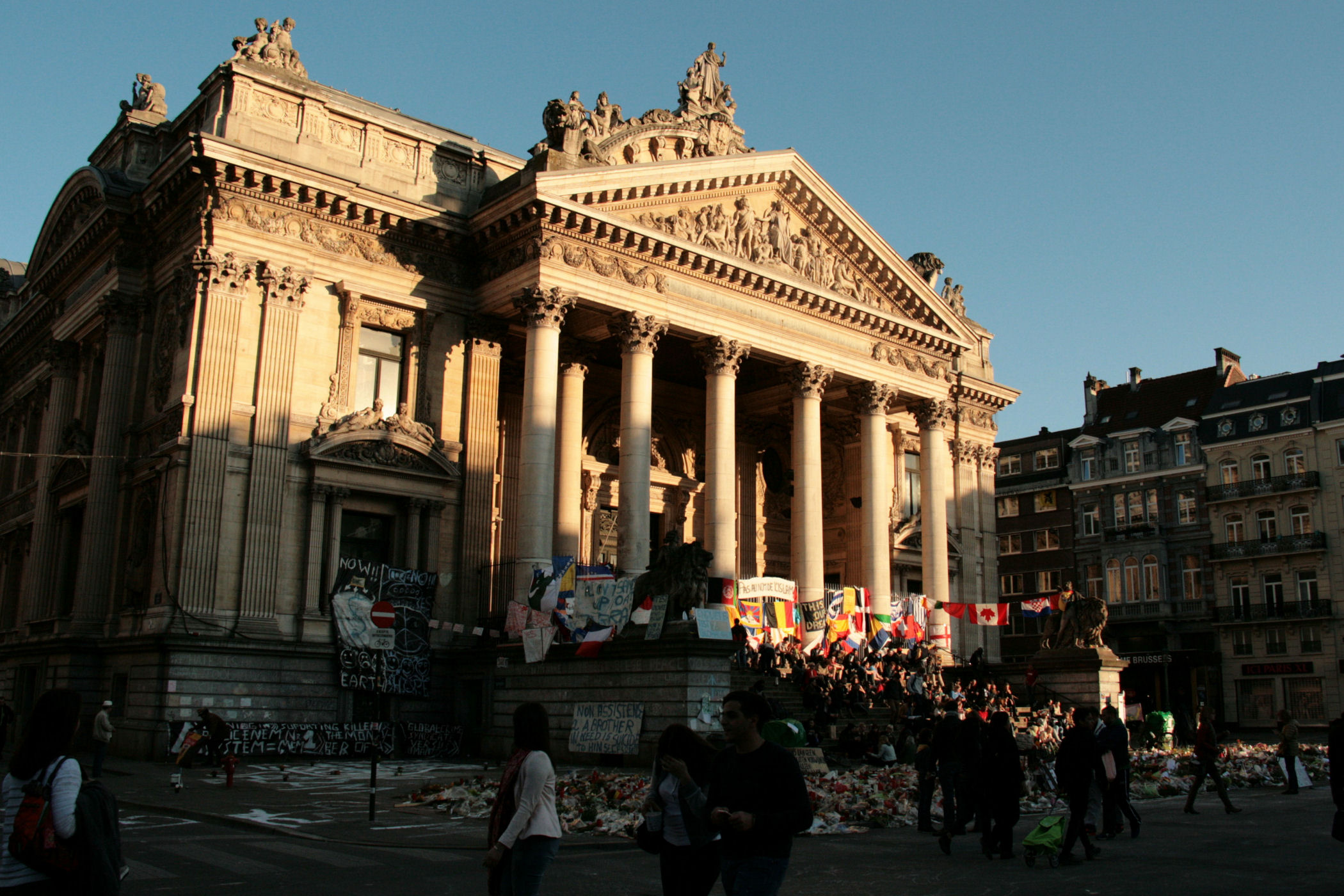 Zaledwie 300m na północny zachód od rynku znajdziemy Place de la Bourse z charakterystycznym budynkiem kolumnowym przy nim. Ten budynek to dawna Giełda Papierów Wartościowych. Dla mnie to dość specyficzne i symboliczne miejsce. Kiedy byliśmy tu w 2016 roku (tuż po największych zamachach terrorystycznych) plac był pełen ludzi wszystkich narodowości, wszędzie były tony kwiatów i zniczy, a wokół mnóstwo opancerzonego wojska. Miejsce było raczej przerażające, pisałam zresztą szerzej o tym na starym BLOGU.