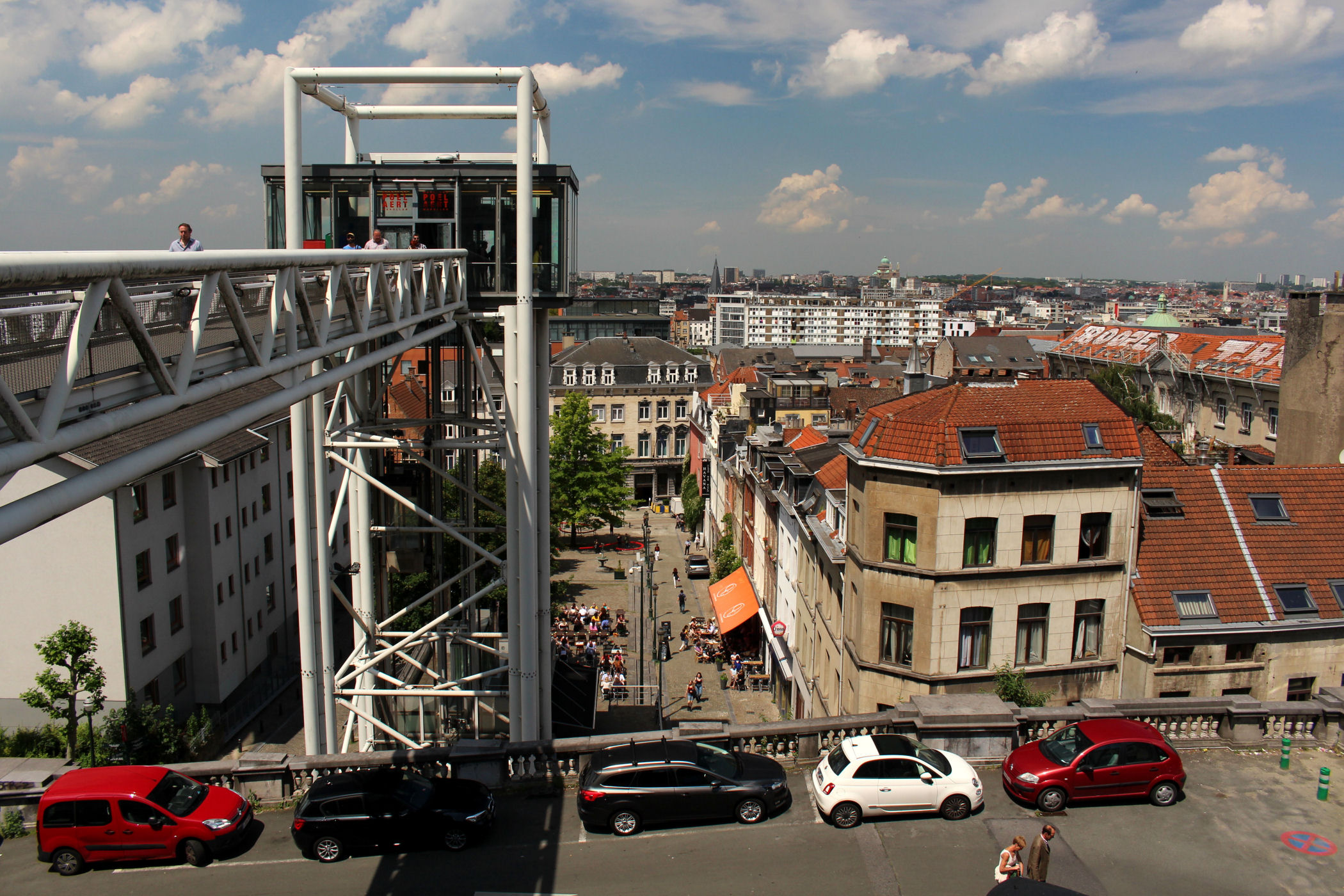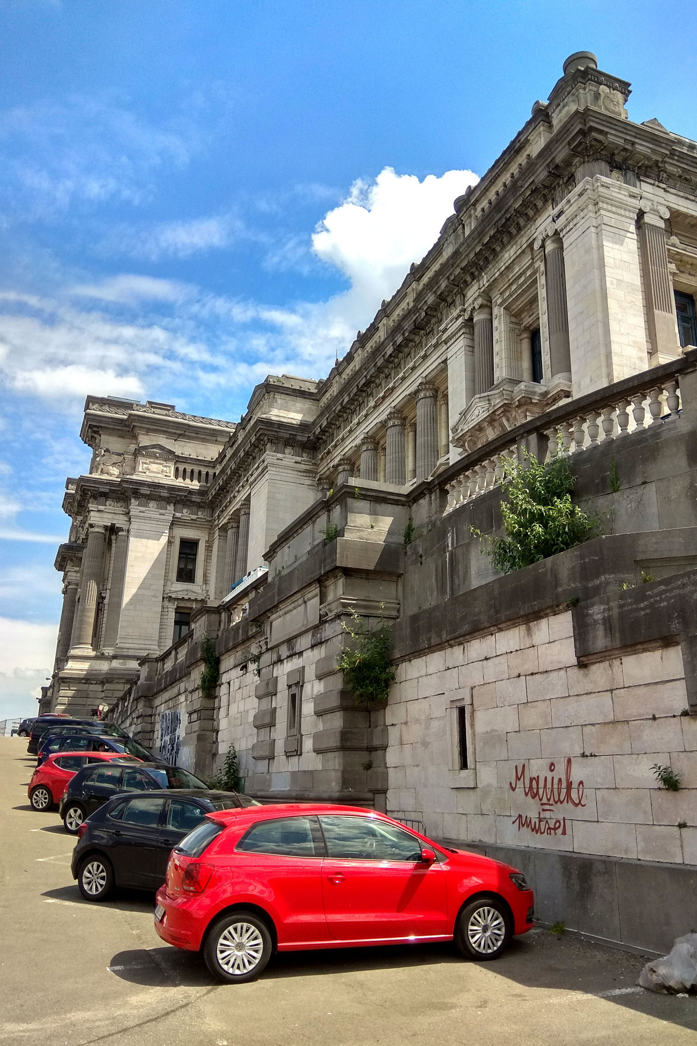Aby obejrzeć budynek z każdej strony – okrążyłam go sobie. Pałac Sprawiedliwości od strony północnej góruje nad pozostała częścią miasta. Tu chodnikiem i windą można zjechać na niższy poziom. To podobno najlepsze miejsce w Brukseli na oglądanie zachodu słońca.