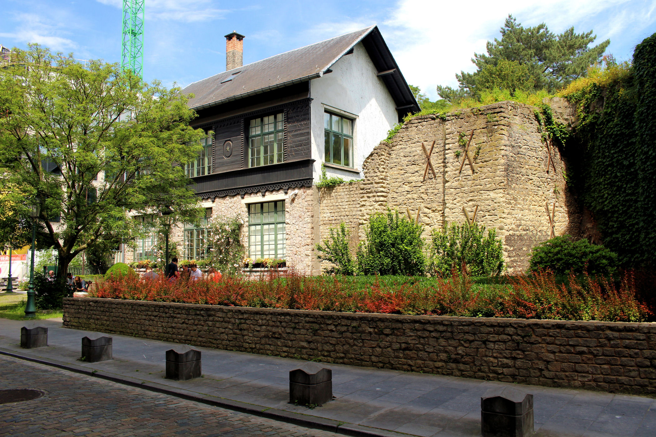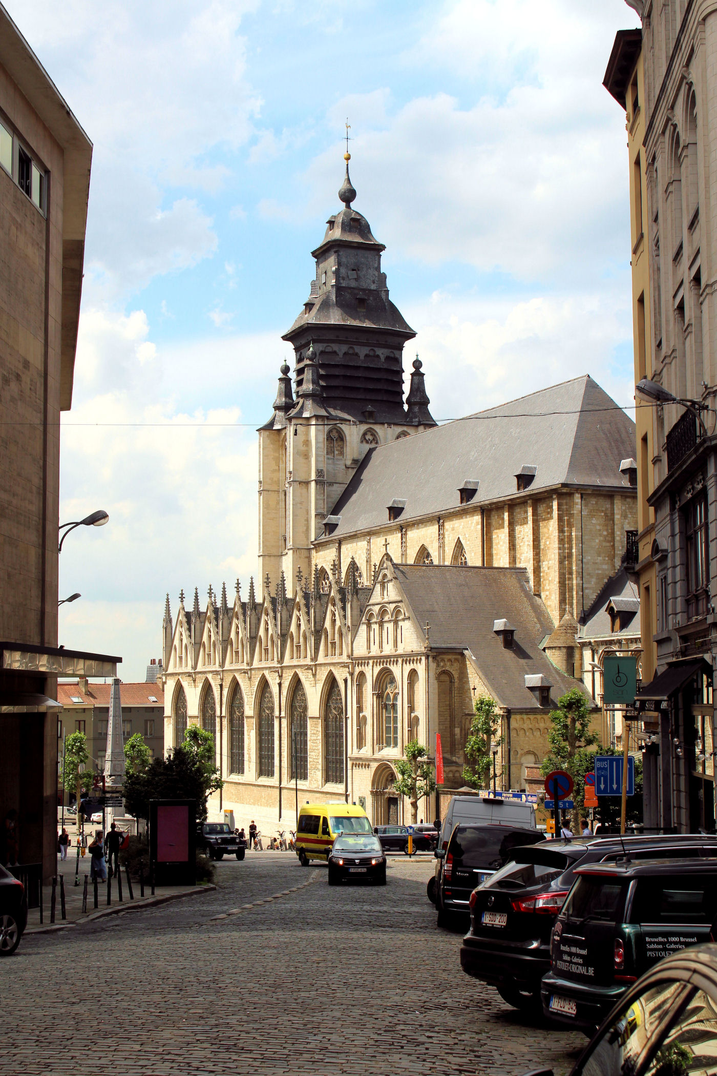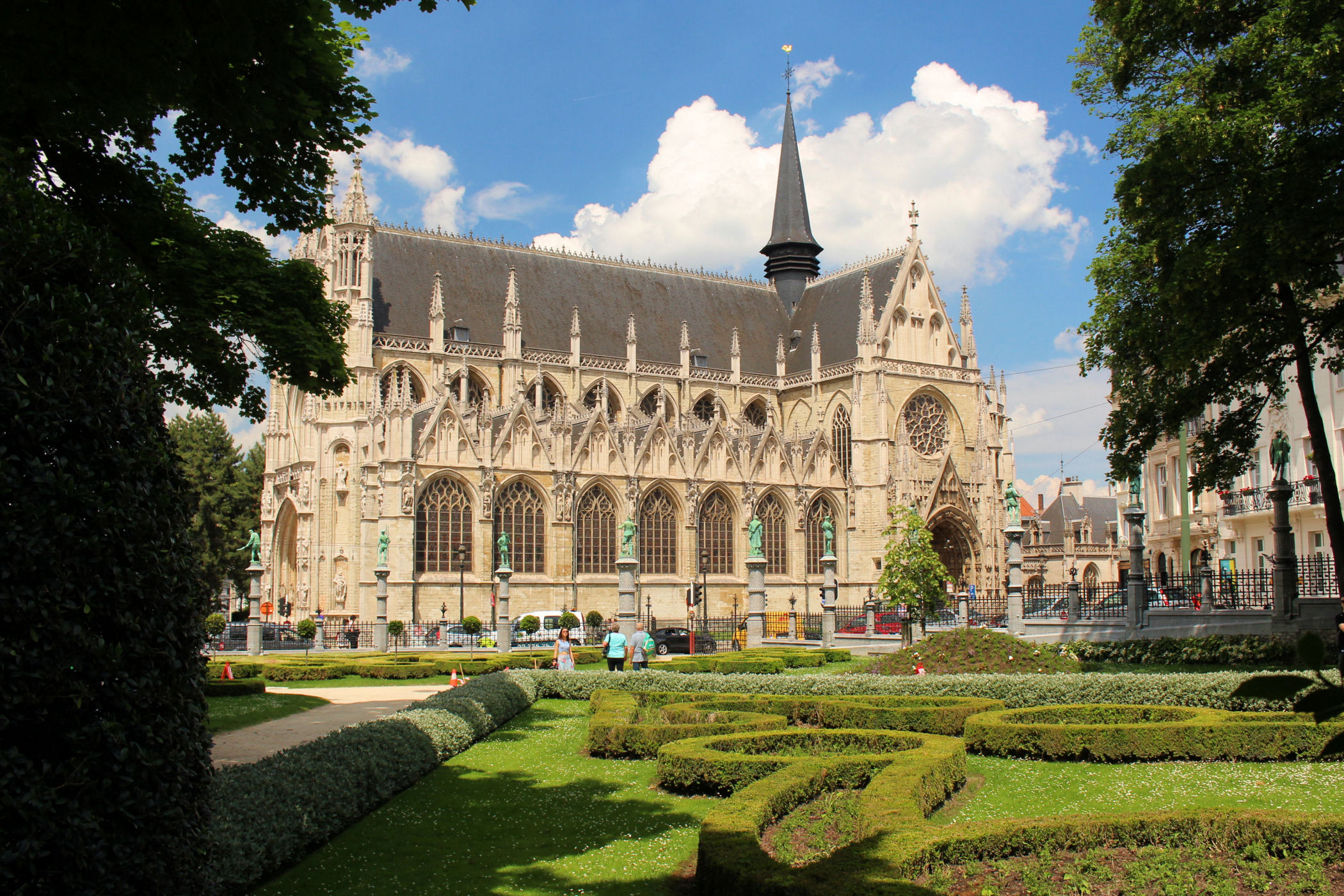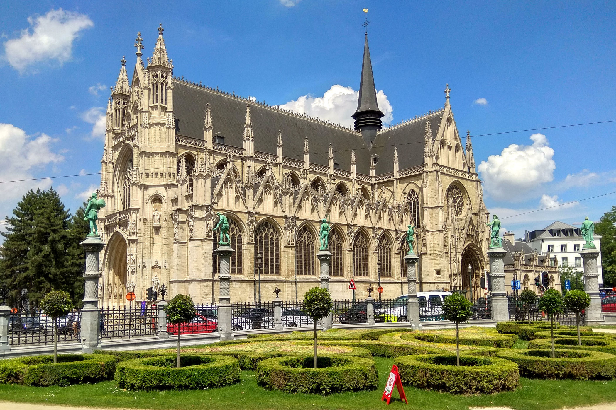 Z parku widać przepiękny gotycki kościół Notre-Dame du Sablon. Kościół łączy w sobie elementy gotyku brabanckiego oraz gotyku „płomienistego” charakterystyczne ostre łuki, dużo detali i bardzo szczegółowe rzeźby ozdabiają fasady ze wszystkich stron. Jego budowę (100-letnią) finansowali możni obywatele, szlachta oraz cech kuszników, który miał prawo do ziemi, na której stoi kościół.