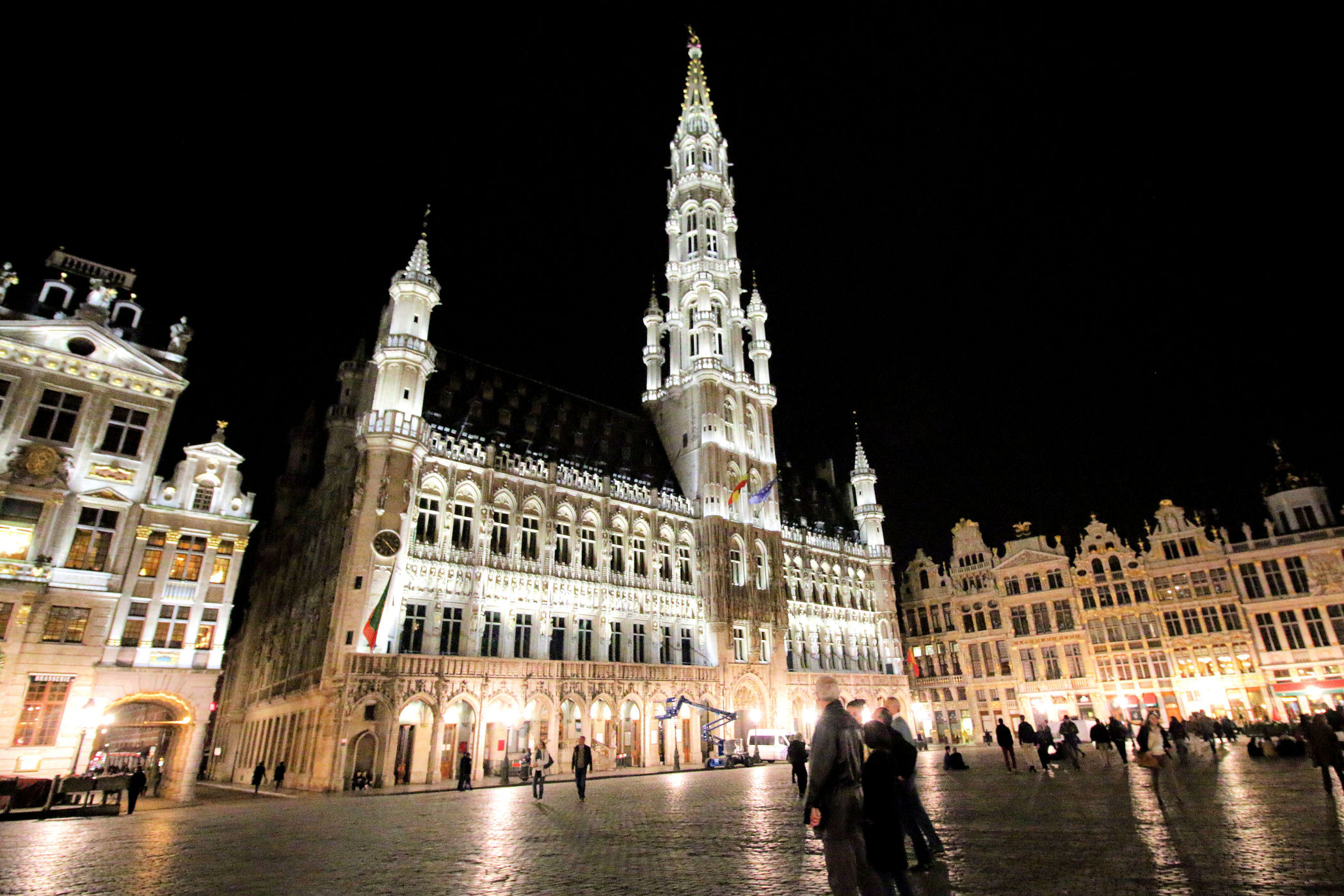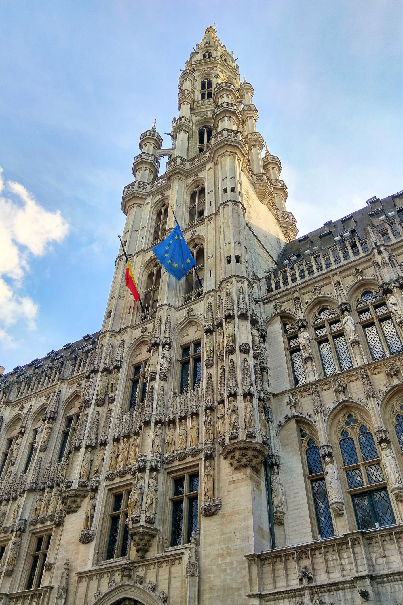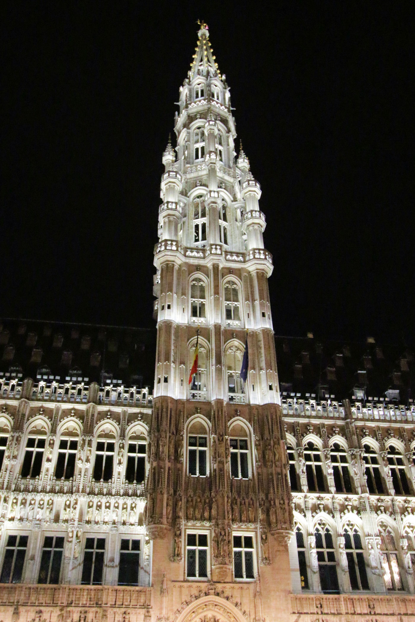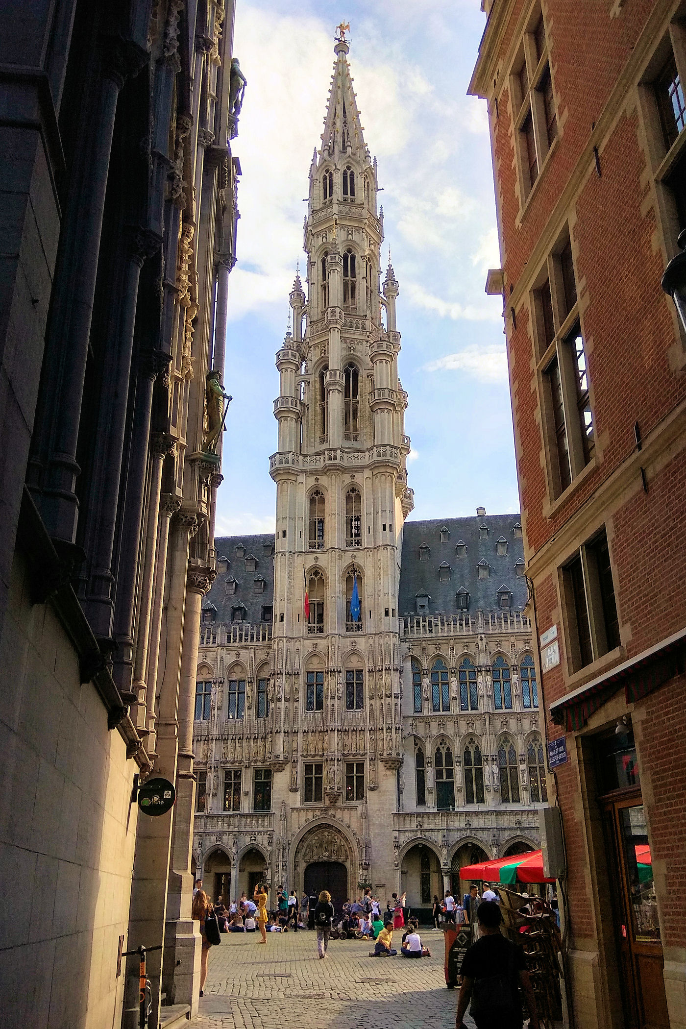 Ten Wielki Plac / Rynek wytyczony przed 1348 rokiem to niezaprzeczalnie serce miasta. Każdy kto tu dotrze „rozdziawi” buzię z wrażenia. Tak pięknej zabudowy głównego placu nie ma nigdzie na świecie. Miejsce robi wrażenie zarówno w dzień jak i w nocy, wszystkie kamienice są bowiem pięknie podświetlone. Nad wszystkimi obiektami góruje Ratusz / Hôtel de Ville. Jego imponująca wieża widoczna jest niemalże ze wszystkich zakątków. To kolejny przedstawiciel gotyku brabanckiego z początku XV w.