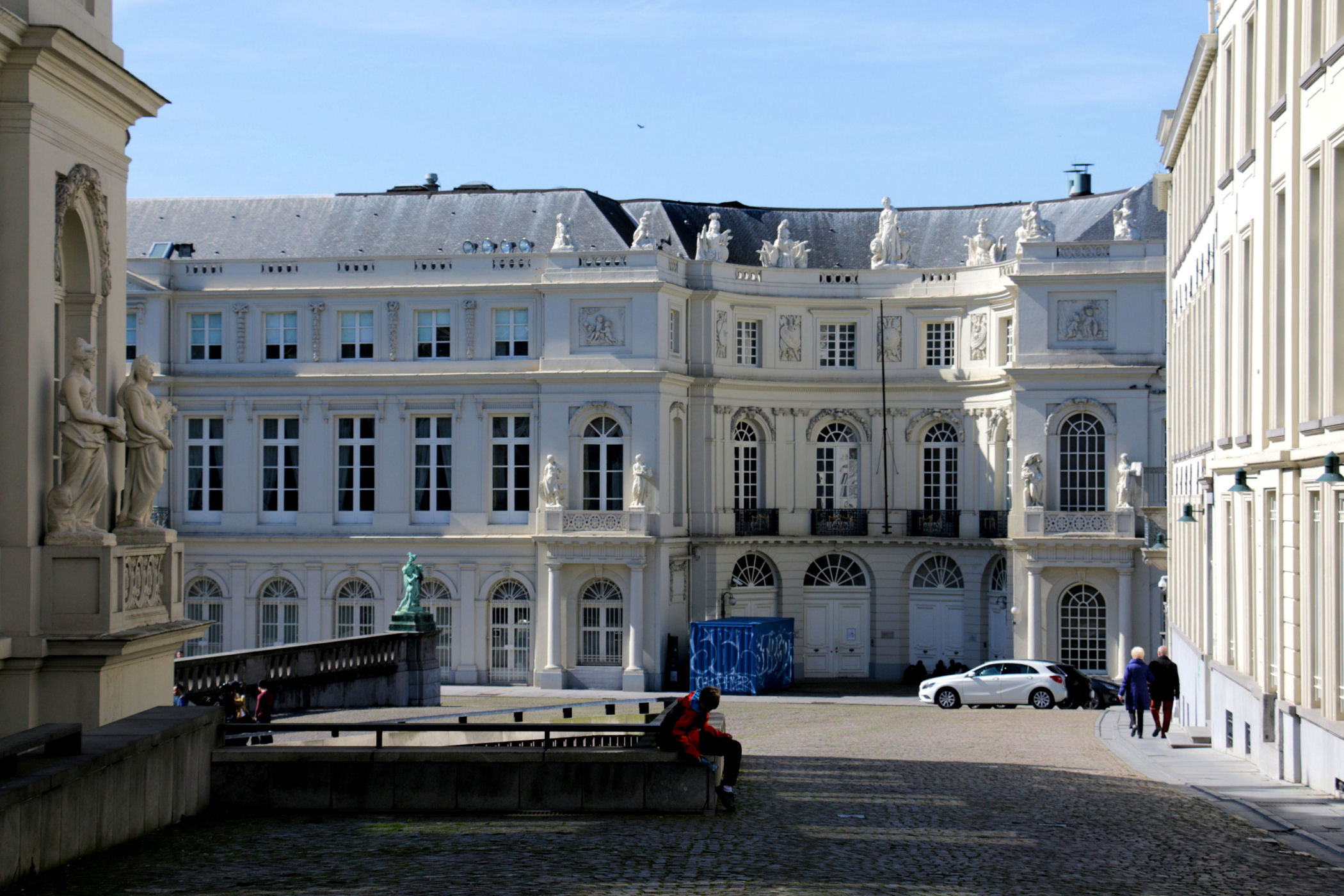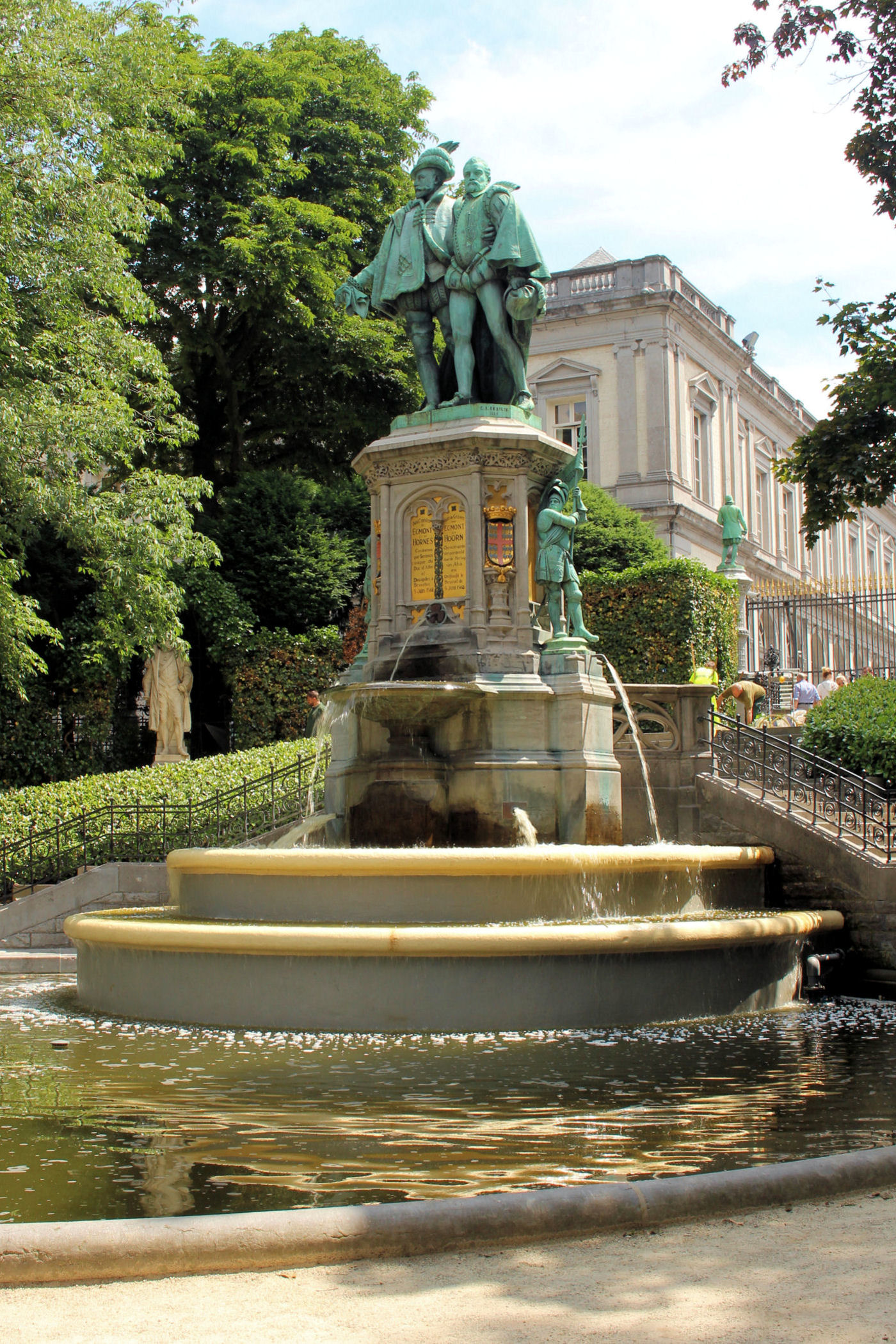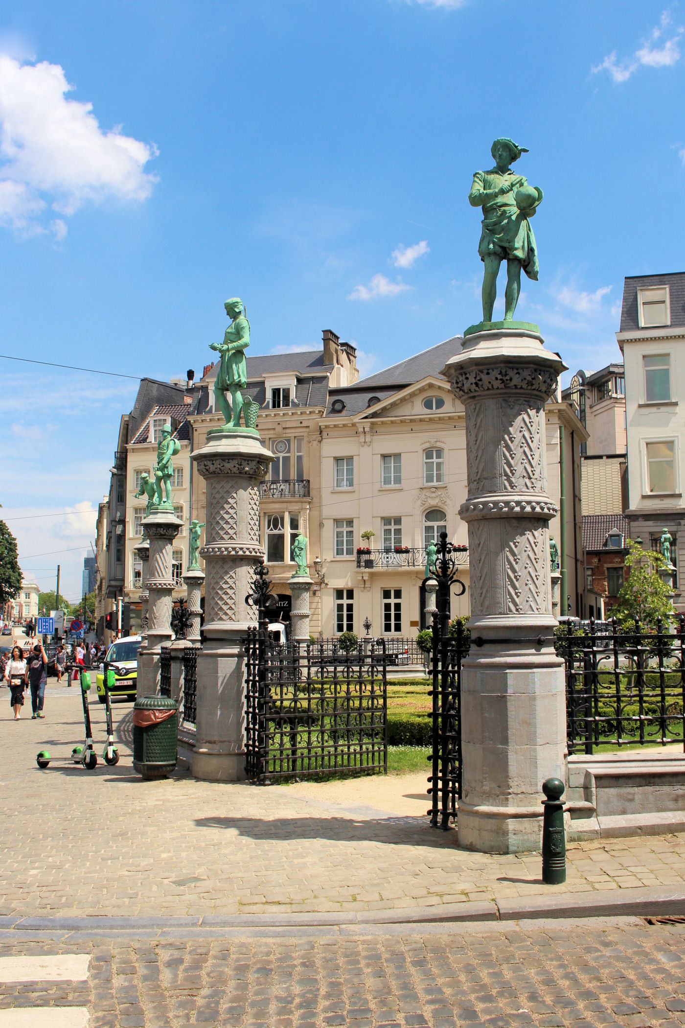 Na przeciwko pałacu znajduje się skwer otoczony kolumnadą z postaciami różnego rodzaju rzemieślników. To Place du Petit Sablon.