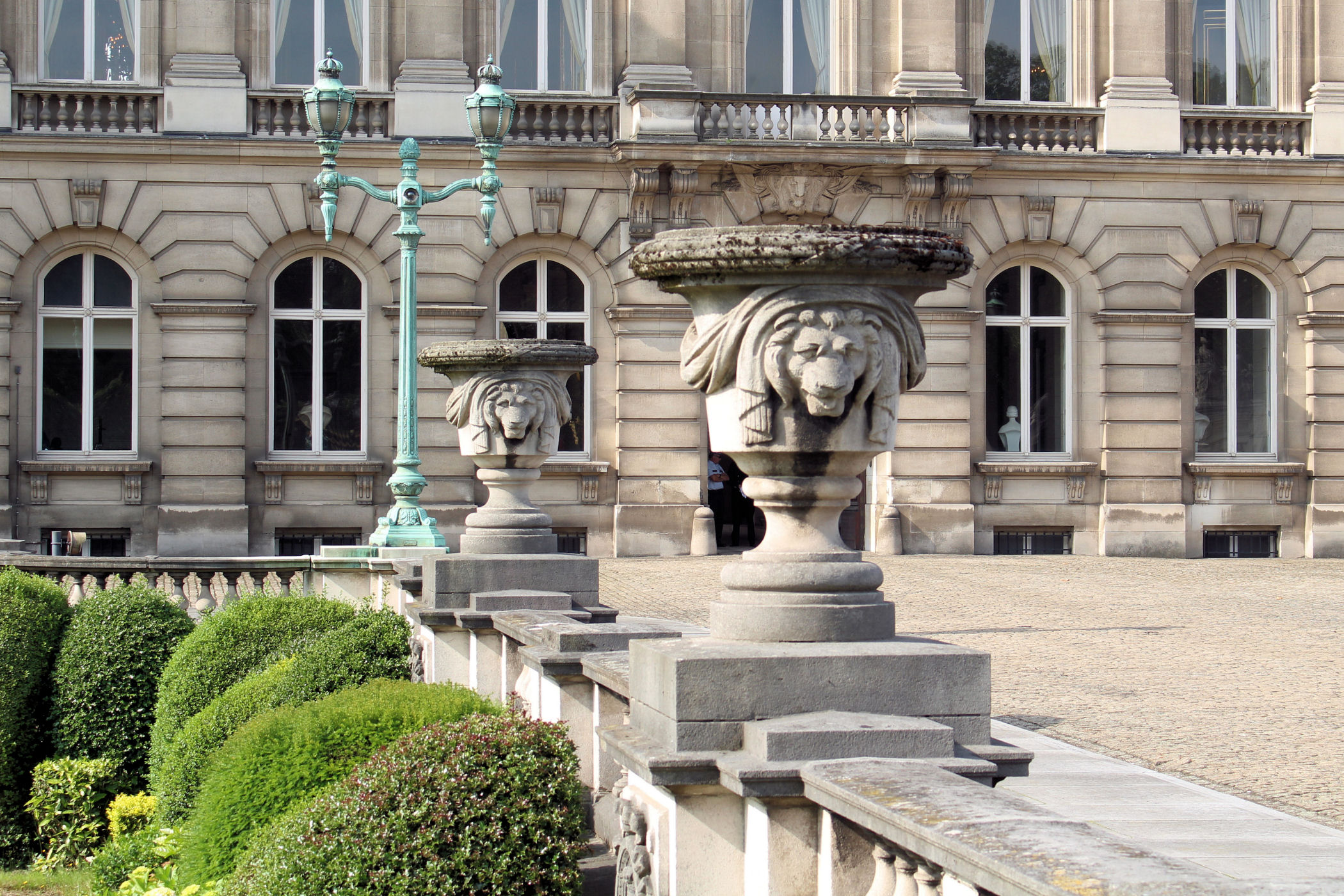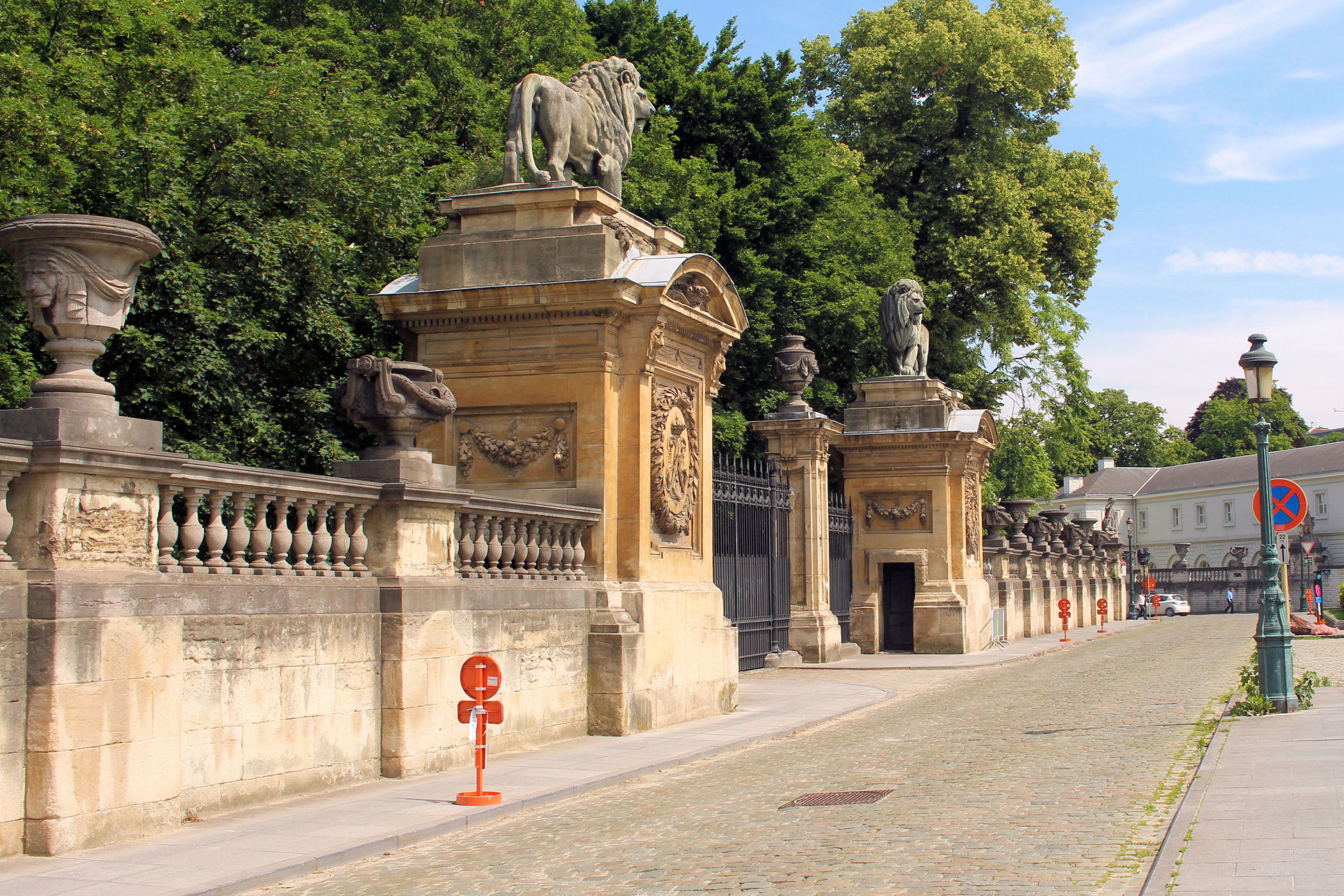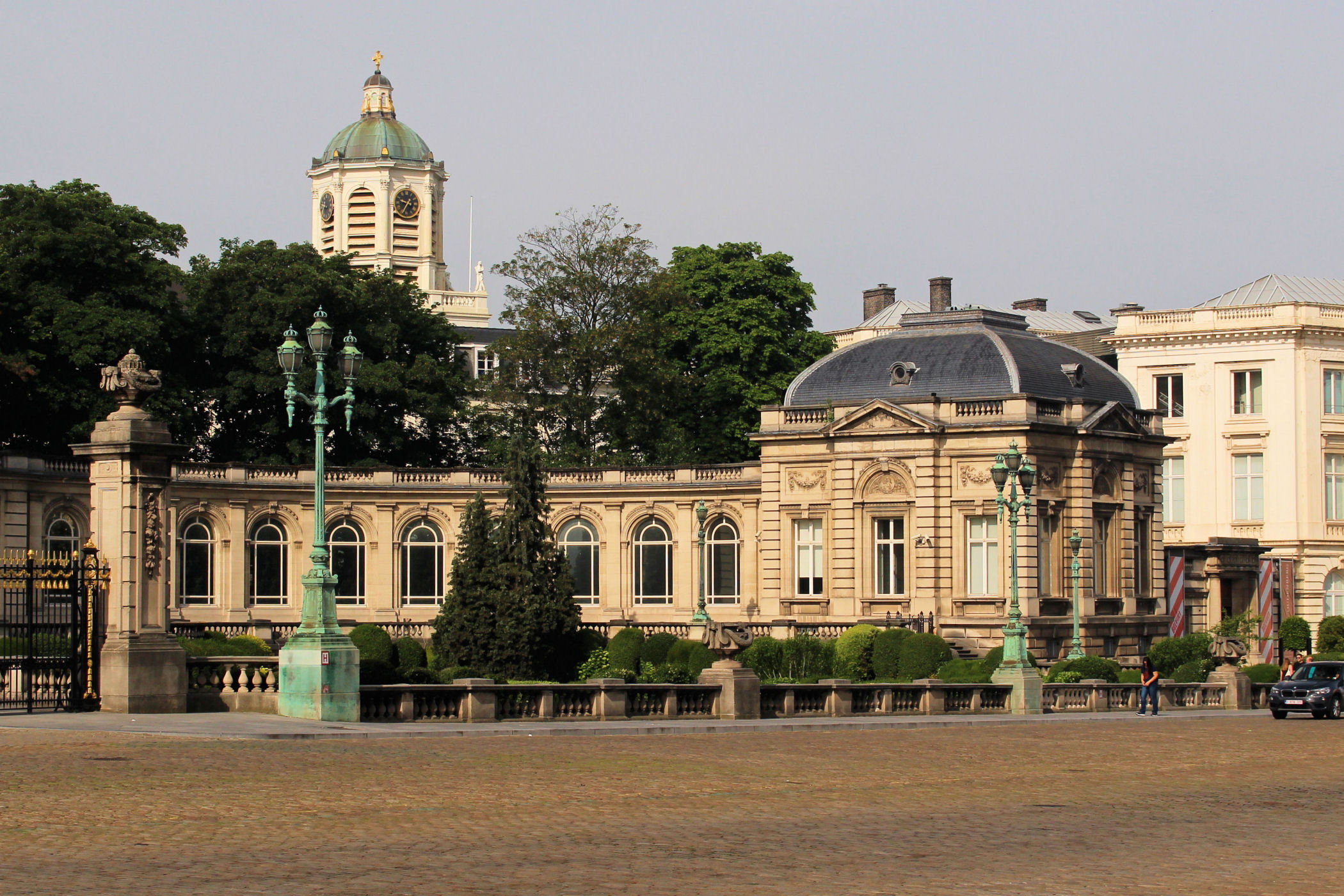 Na przeciwko pałacu znajduje się skwer otoczony kolumnadą z postaciami różnego rodzaju rzemieślników. To Place du Petit Sablon.
