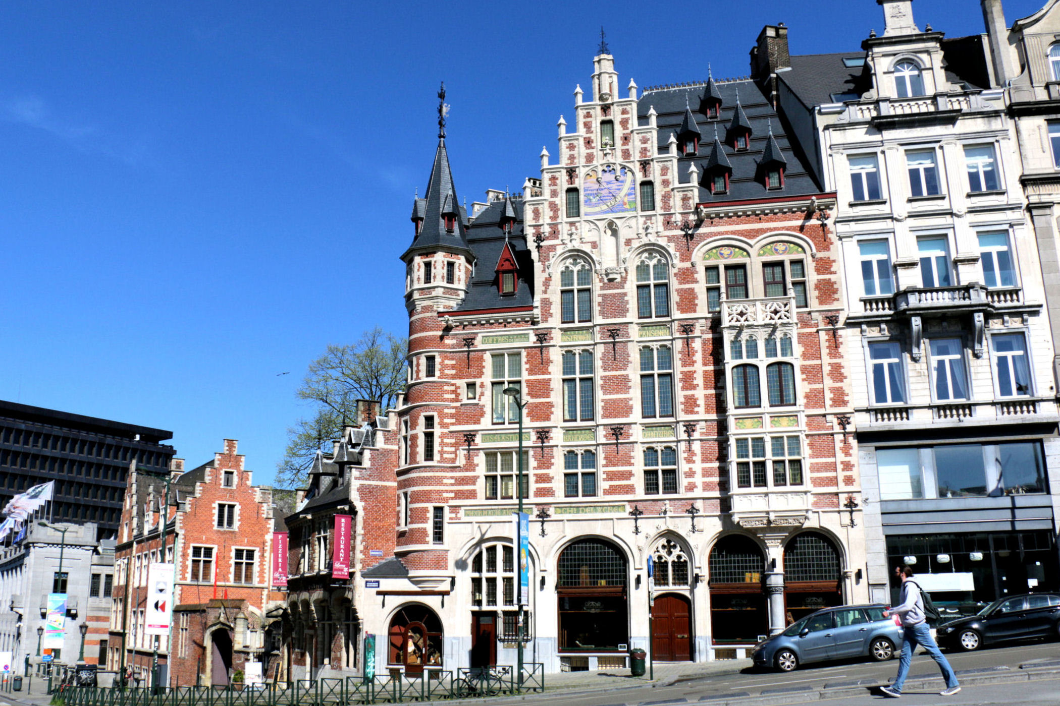 Idąc od Katedry dalej w kierunku naszego Hotelu Sabina mijamy kilka ciekawych obiektów. To miedzy innymi : skwer ze Statuą generała Brialmonta i ciekawą narożną kamienicą. Kawałek dalej znajduje się rondo ze Statuą Andreasa Vesaliusa.