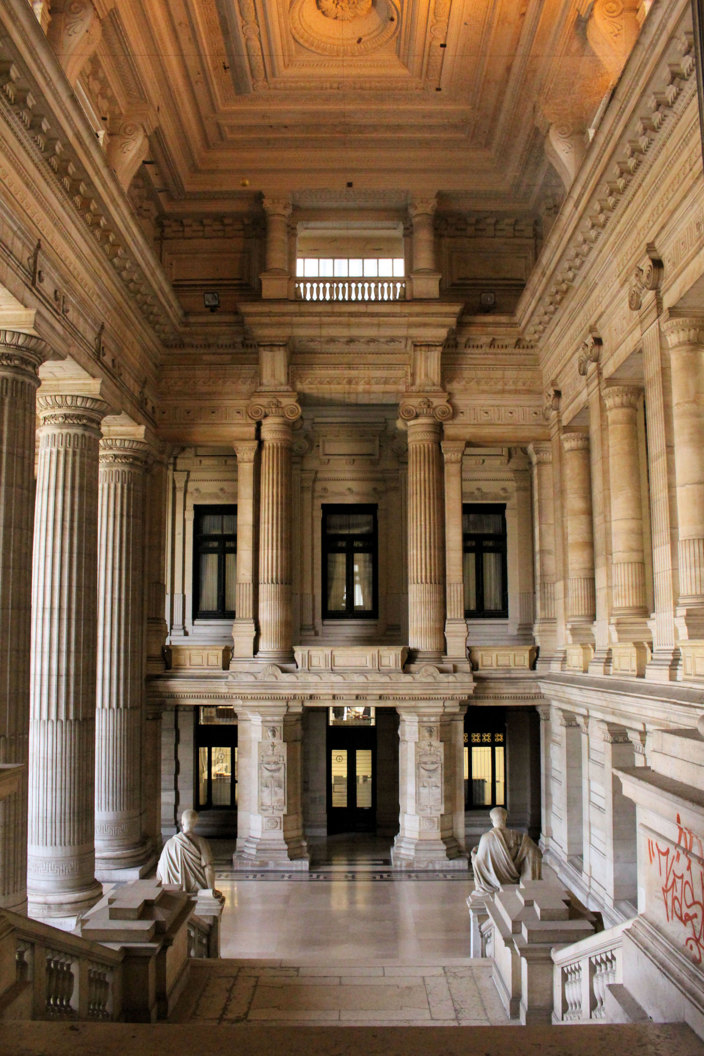 To najciekawszy obiekt tej części miasta – tak monumentalnej budowli w życiu nie widziałam. Niestety trwa tu nieustający już od kilkudziesięciu lat remont. Jego budowa rozpoczęła się w 1860 roku (za panowania króla Leopolda I), według projektu architekta Josepha Poelaerta. Pod koniec XIX w. był największym budynkiem świata: 100 m wysokości i 26 tys. m2 powierzchni. Obecnie jest w opłakanym stanie. Walą się stropy, fasady, a remont już kosztował miliony euro, a to dopiero początek. Więcej o tym problemie możecie poczytać TUTAJ . Mimo takiego stanu nadal zachwyca.