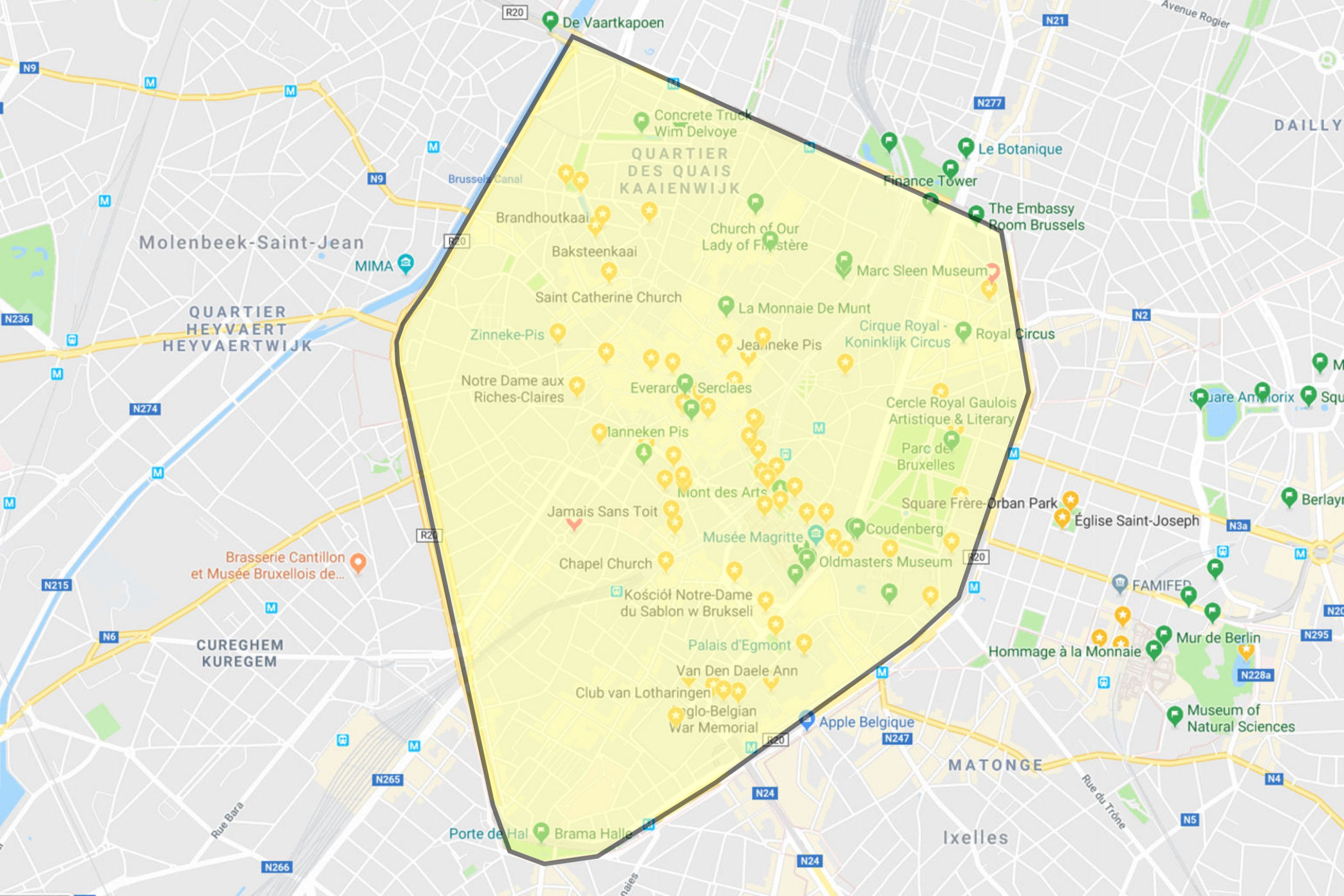 Bruksela centralna jaką przyjęłam jest częściowo zbieżna z granicami Brukseli z mapy pochodzącej z 1657 roku. Obie mapy poniżej.