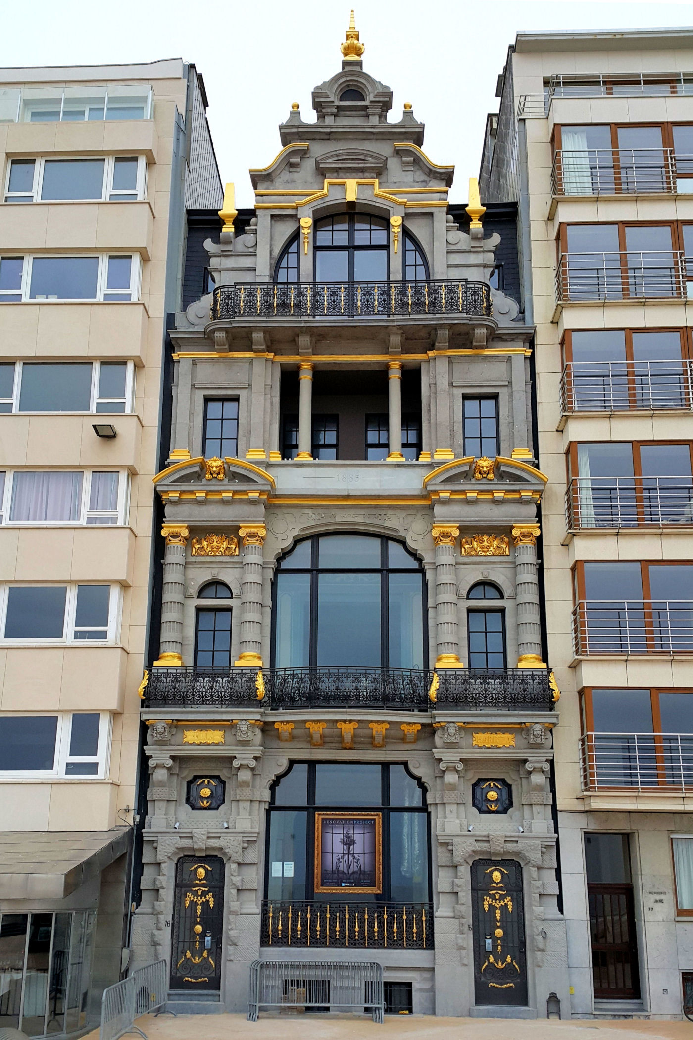 Wędrując plażą mijamy zabudowę . To głównie hotele i apartamentowce. Na końcu pierwszej linii zabudowy znajduje się pierwszy z charakterystycznych budynków Ostendy. To KURSAAL CASINO ROYAL . Miejsce gdzie znajduje się kasyno (jak sama nazwa wskazuje), ale też miejsce, gdzie występowali znakomici artyści dla europejskiej arystokracji. Pierwszy Kursaal został kompletnie zniszczony w trakcie II wojny światowej. Został odbudowany osiem lat po wojnie, ale w zupełnie innej – bardziej współczesnej formie. Duży, przeszklony budynek nad samym morzem to typowy przykład modernizmu , jest też największym kasynem w kraju. Nas nie zachwyca, żadne z nas nie archiwizuje go na zdjęciach w zbliżeniu.