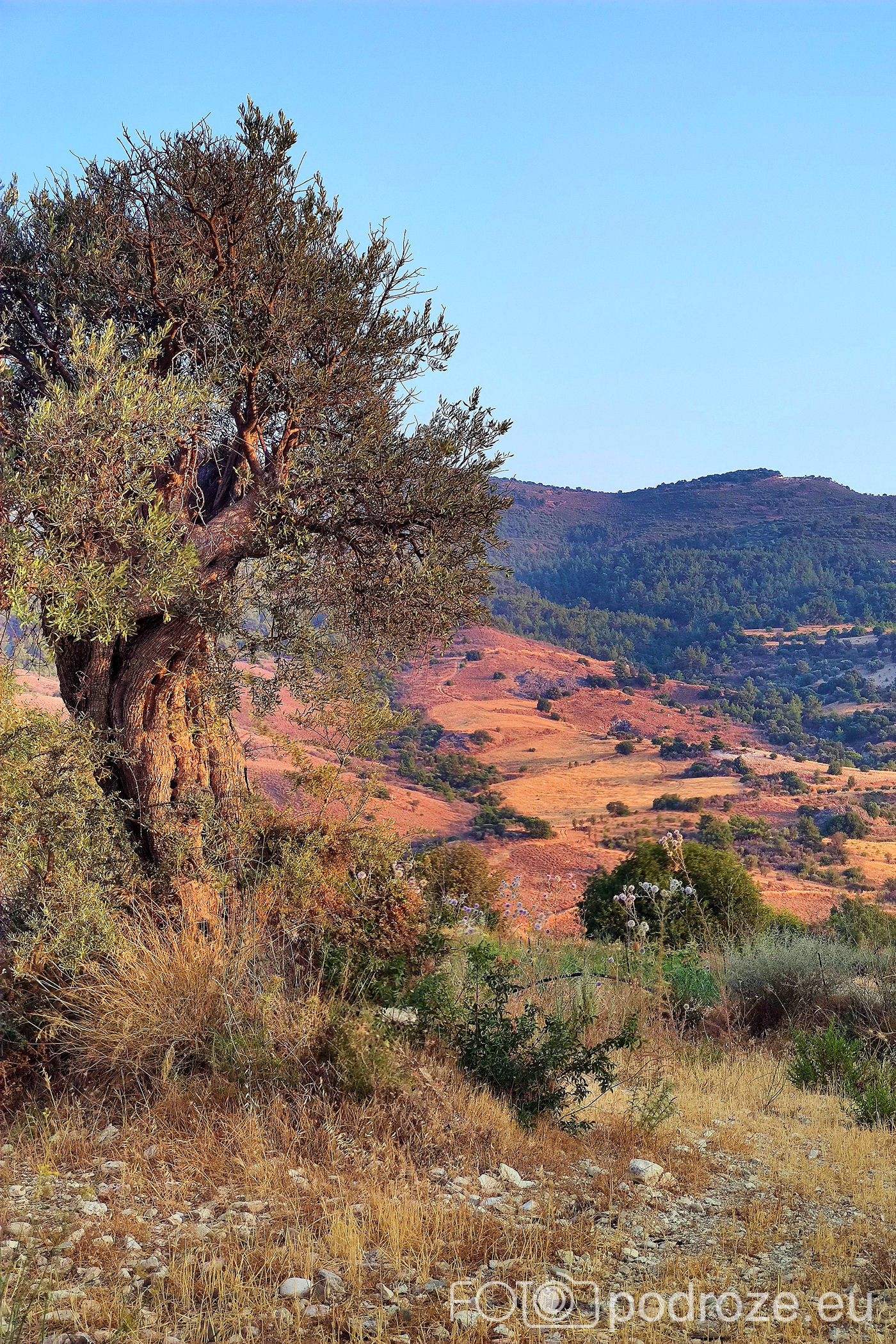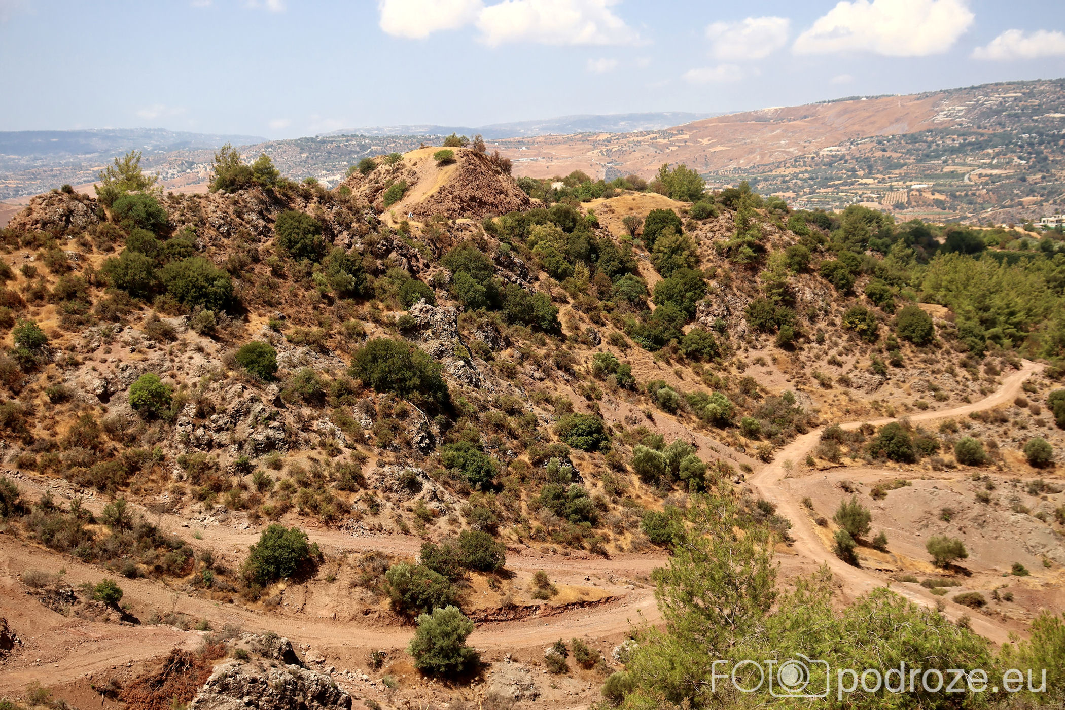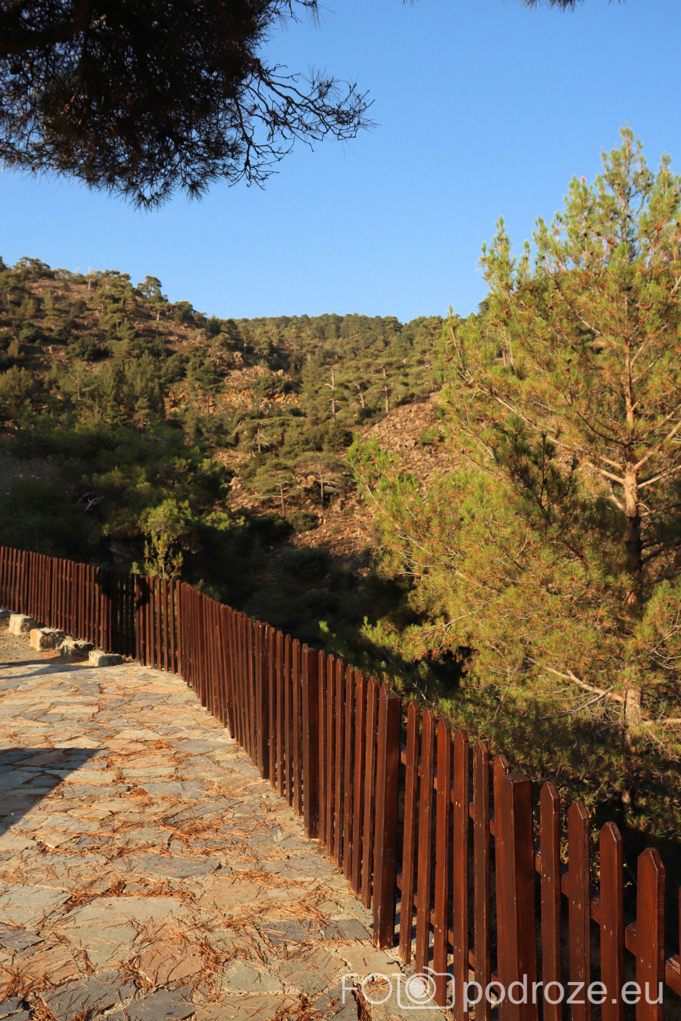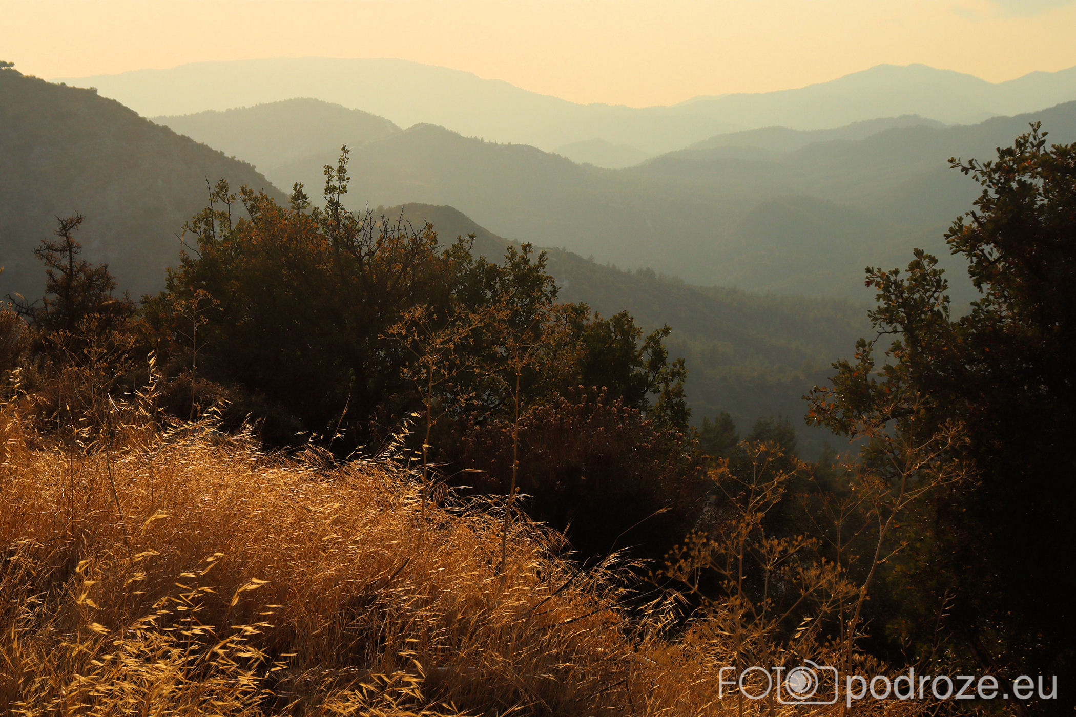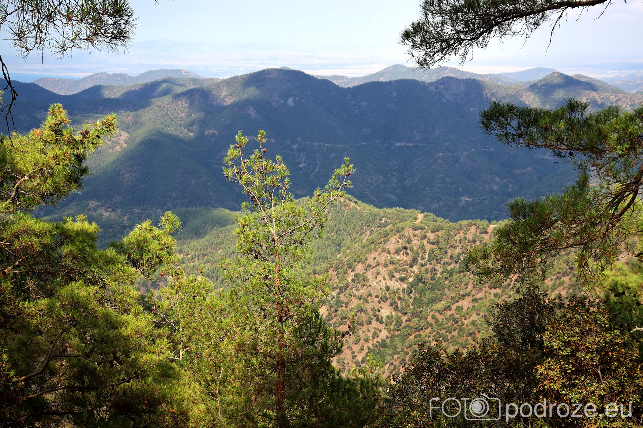 Tak jak sam najwyższy szczyt rozczarowuje to na pewno nie można tego powiedzieć o pozostałych szczytach i pasmach górskich. Z przyjemnością zatrzymujemy się co jakiś czas, aby móc spojrzeć w dal na spokojnie. Po drodze jest piękny punkt widokowy oznaczony nazwą : Gerokamina view point. Jedziemy przez góry już późnym popołudniem. W rejonie miasta Troodos znajduje się początek kilku bardzo ciekawych szlaków, ale niestety nie mamy już czasu, aby na nie wyruszyć. W planach jest co prawda dojście (mimo późnej pory) do jednego z wodospadów: Caledoni lub Miillomeris, ale ruch w tym rejonie jest ogromny, a brak miejsc do zaparkowania samochodu skutecznie weryfikuje nasze plany. Trudno, nie da się niestety być wszędzie. Opuszczamy Góry Troodos zostawiając za sobą całą masę pięknych miejsc: miasteczek, klasztorów i szlaków, których tym razem nie było nam dane zobaczyć.