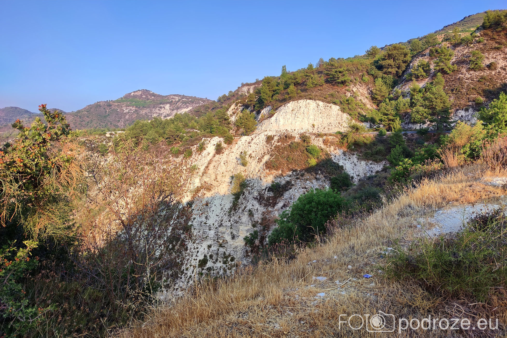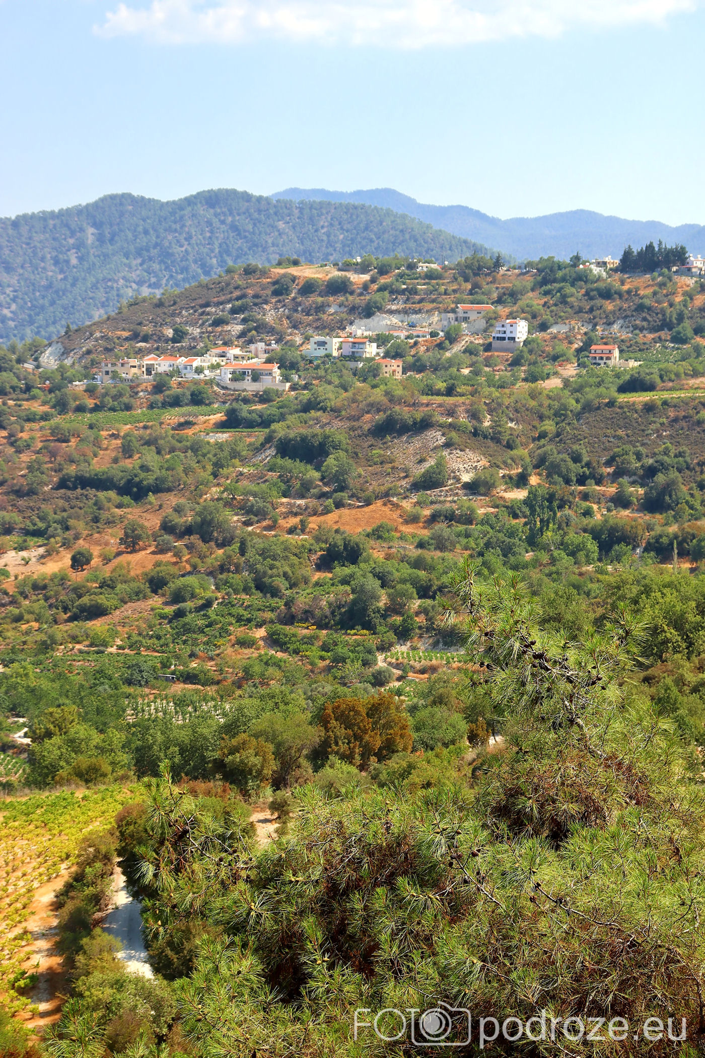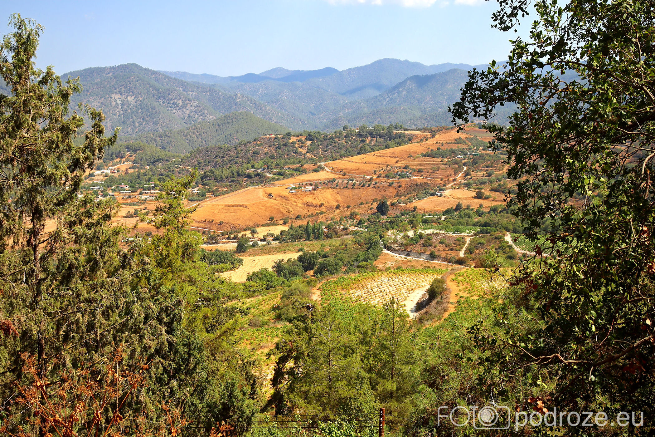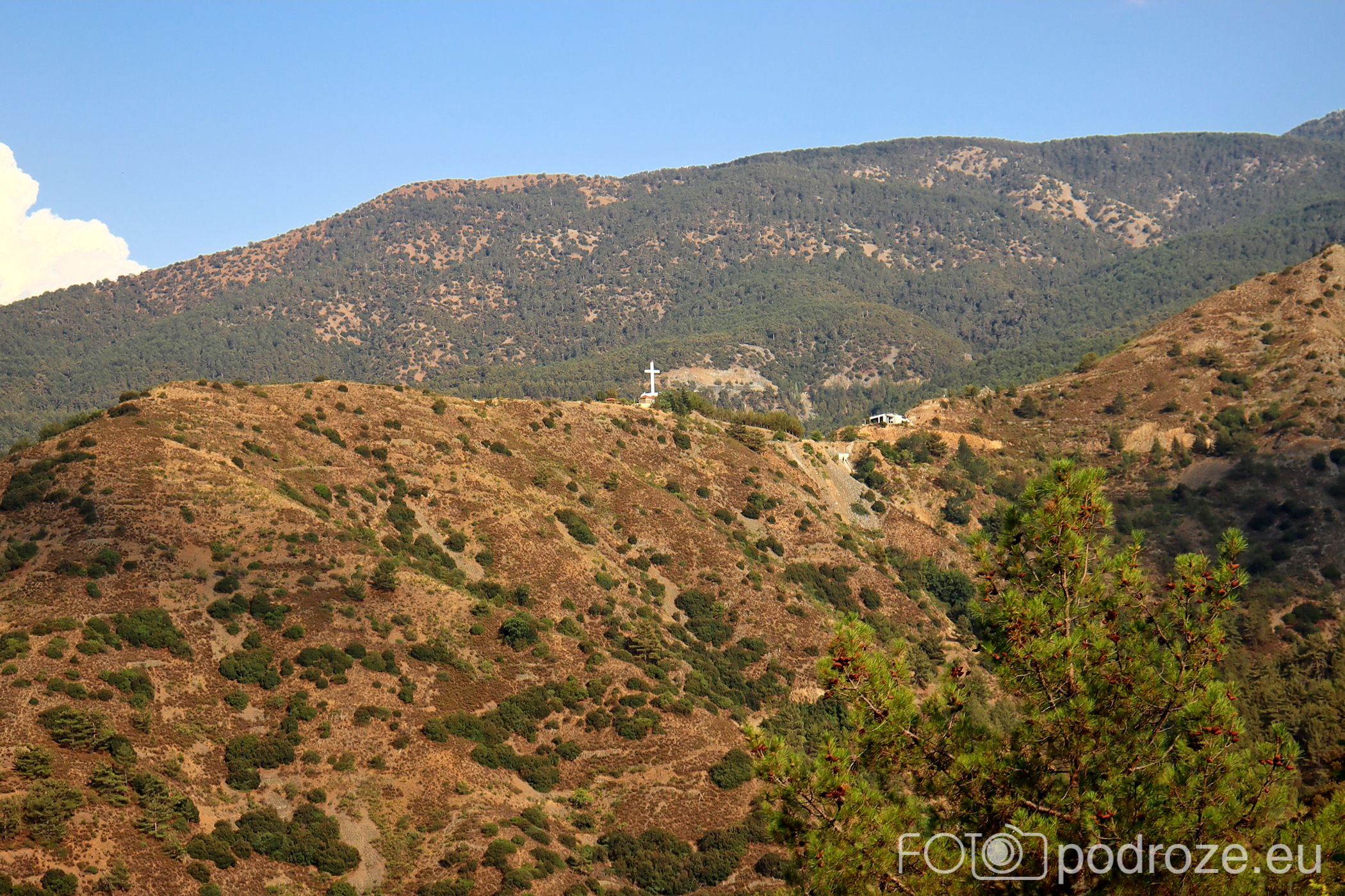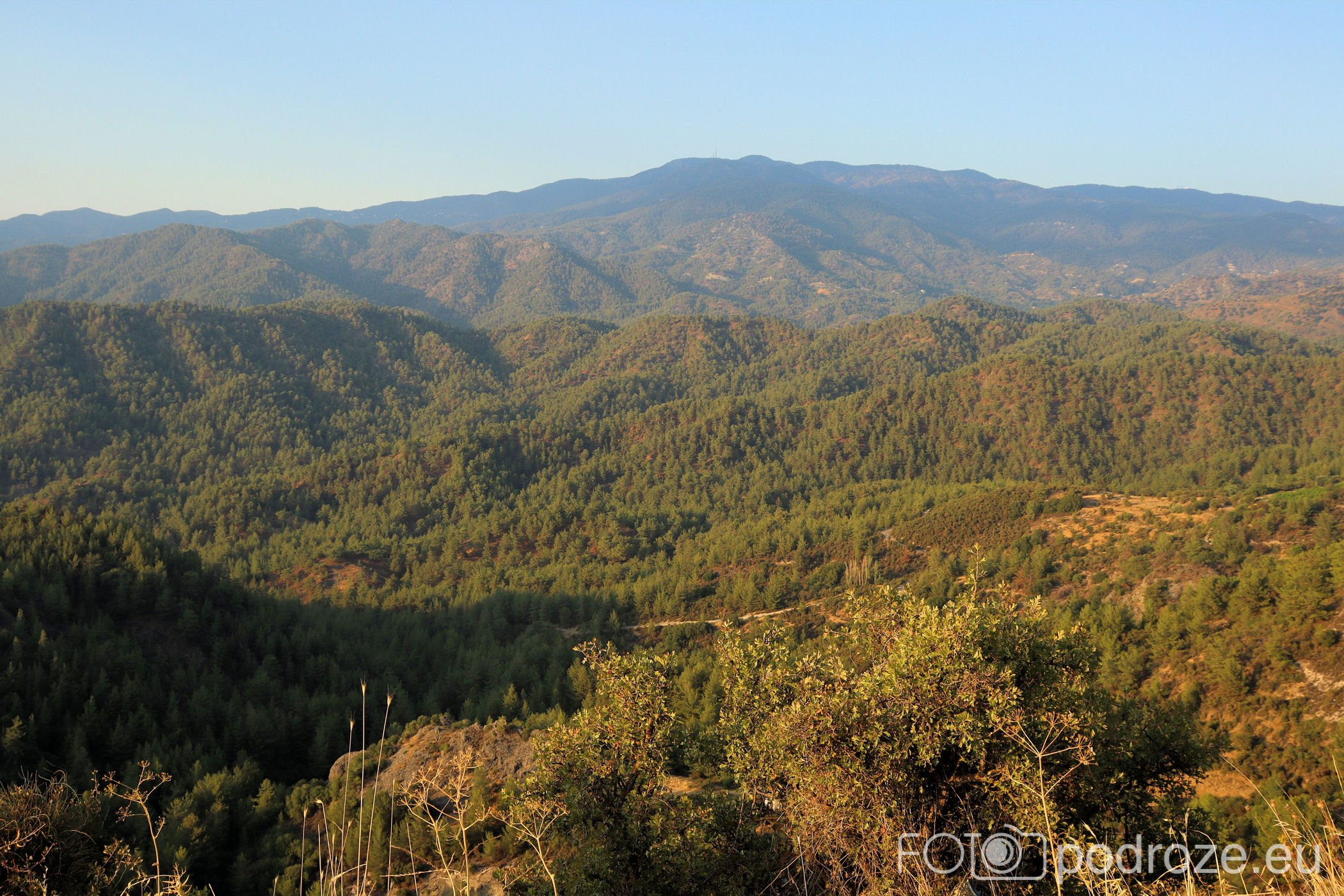Tak jak sam najwyższy szczyt rozczarowuje to na pewno nie można tego powiedzieć o pozostałych szczytach i pasmach górskich. Z przyjemnością zatrzymujemy się co jakiś czas, aby móc spojrzeć w dal na spokojnie. Po drodze jest piękny punkt widokowy oznaczony nazwą : Gerokamina view point. Jedziemy przez góry już późnym popołudniem. W rejonie miasta Troodos znajduje się początek kilku bardzo ciekawych szlaków, ale niestety nie mamy już czasu, aby na nie wyruszyć. W planach jest co prawda dojście (mimo późnej pory) do jednego z wodospadów: Caledoni lub Miillomeris, ale ruch w tym rejonie jest ogromny, a brak miejsc do zaparkowania samochodu skutecznie weryfikuje nasze plany. Trudno, nie da się niestety być wszędzie. Opuszczamy Góry Troodos zostawiając za sobą całą masę pięknych miejsc: miasteczek, klasztorów i szlaków, których tym razem nie było nam dane zobaczyć.