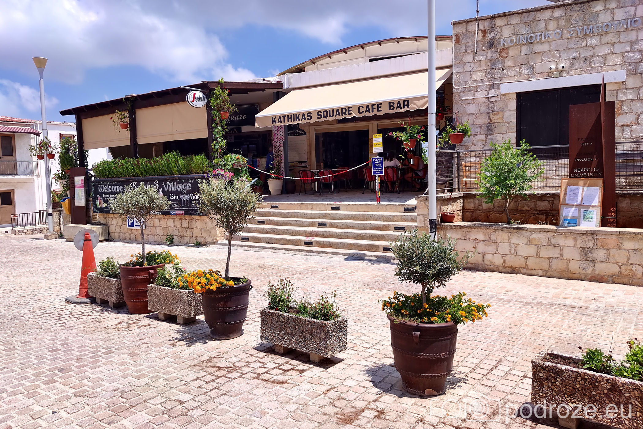 Zwiedzanie ciekawych miejsc centralnego Cypru ponownie zaczynamy od zachodu. Tu w drodze na północ zatrzymaliśmy się w mały miasteczku Katikas. Szukaliśmy uroczego miejsca na kawę, a znaleźliśmy całą miejscowość godną polecania. Tu w samym centrum znajduje się zabytkowy kościółek prawosławny Panaja Ewangelistria z 1870 roku. A godne polecenia miejsce na kawę, czy posiłek to restauracja To Stekki Tou Panai