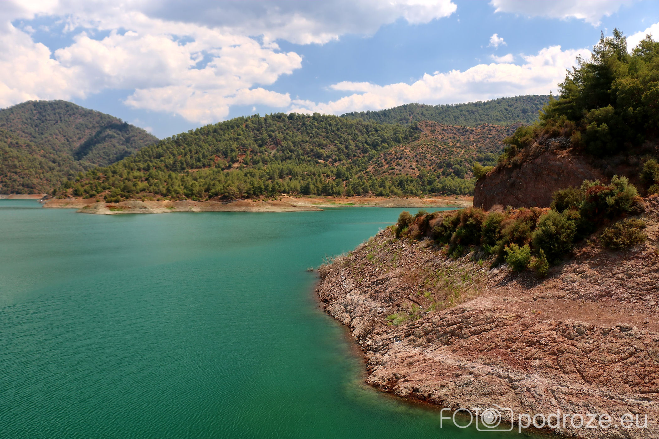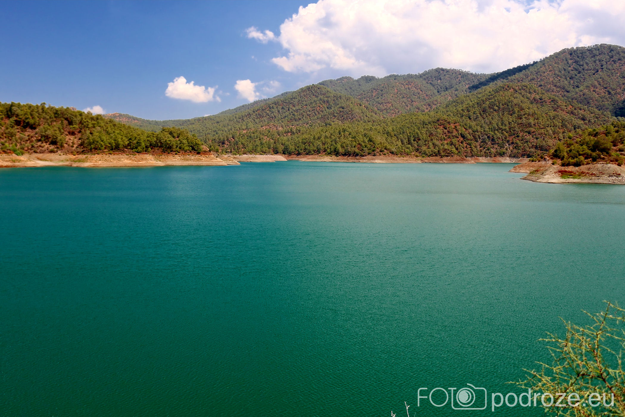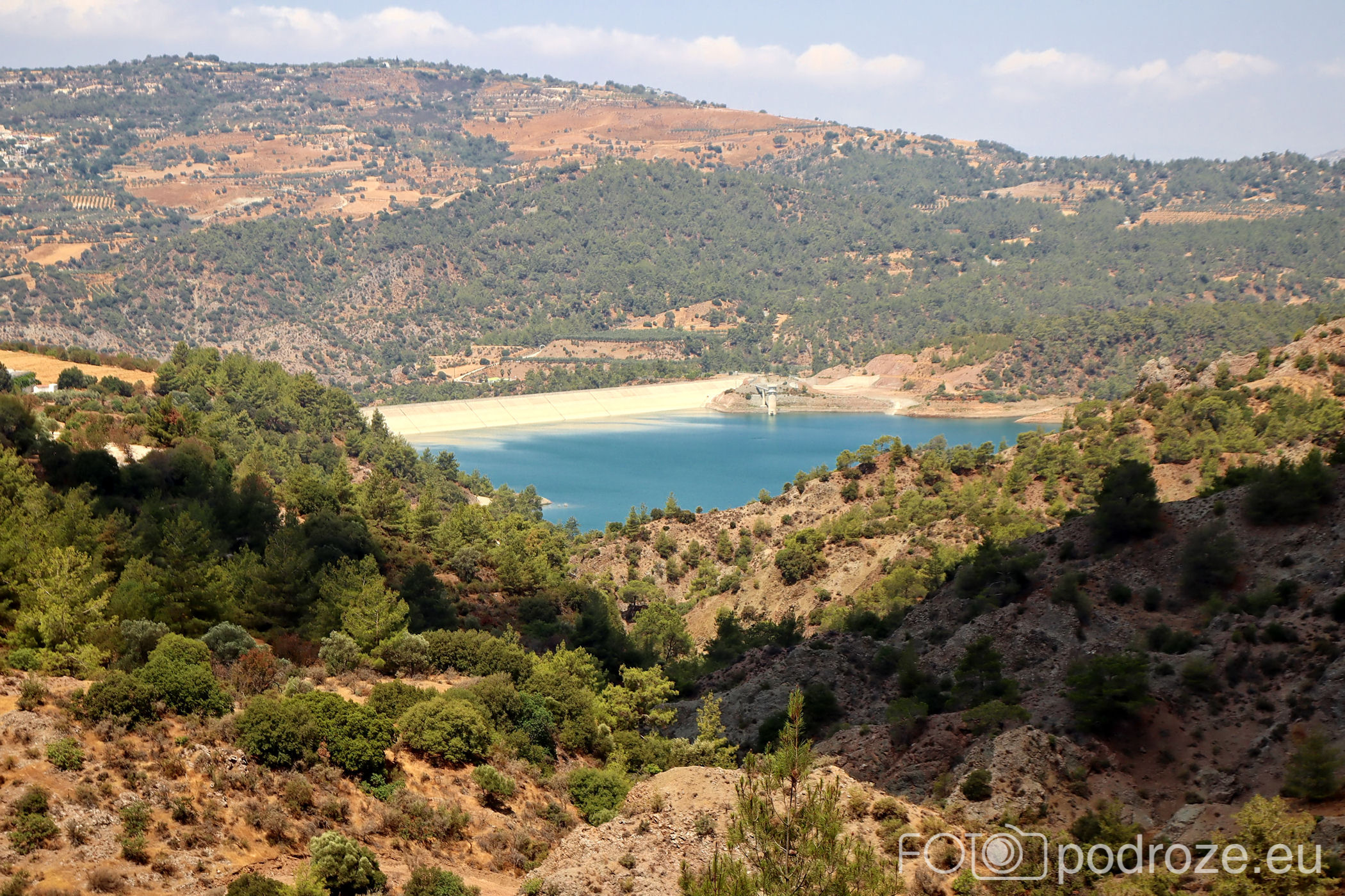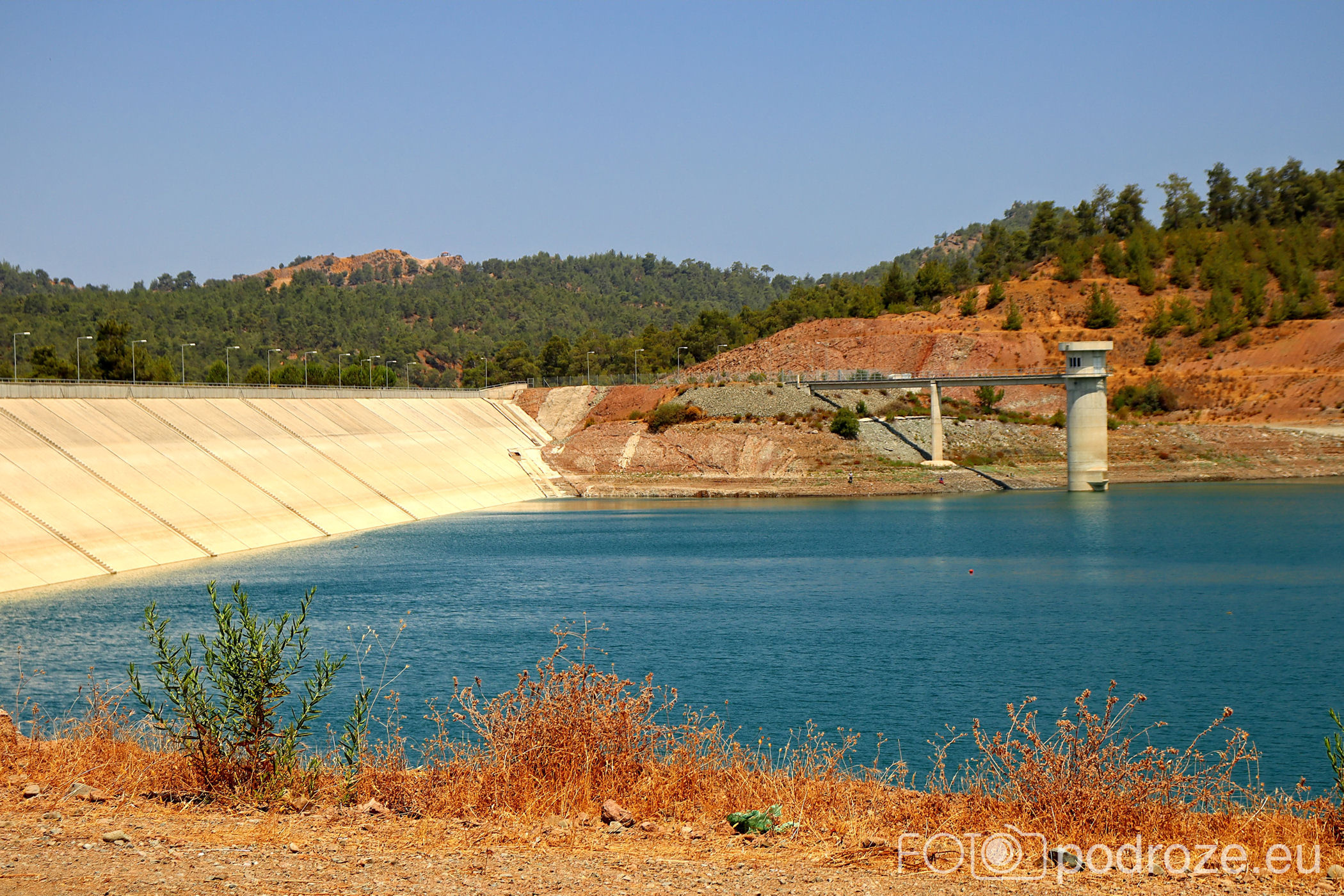 Już spot kościółka mamy okazję spojrzeć na przepiękny zbiornik wodny Kannaviou z zaporą. Jedziemy więc drogą w dół, aby zajrzeć nad turkusowe wody jeziora i spojrzeć na nie z bliska. Miejsce jest faktycznie niezwykle malownicze.