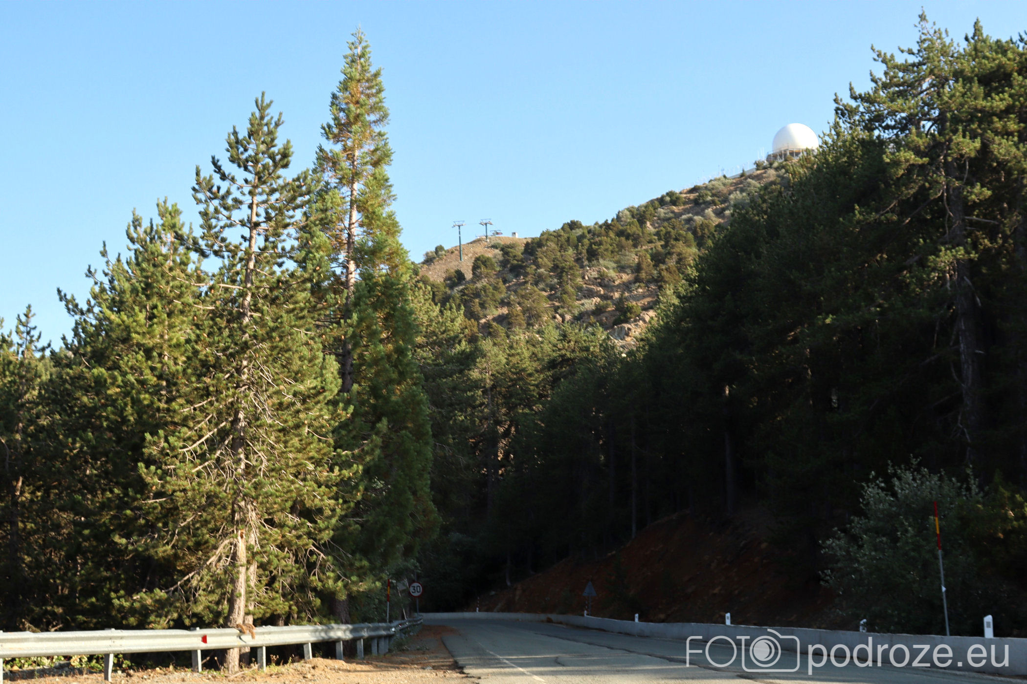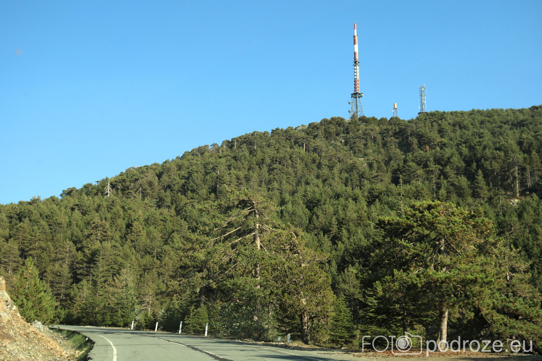 Droga kieruje nas pod najwyższy szczyt Cypru – Górę Olimp. Jej wysokość nie jest zbyt imponująca, bo 1952 m n.p.m., ale to wystarczy, aby zimą jej zbocza stawały się rajem dla narciarzy. Wybudowano tu bowiem Kurort Troodos – stację narciarską czynną często od stycznia do marca. Sama góra niestety nie jest ciekawa turystycznie. Na szczycie znajduje się baza wojskowa i co oczywiste nie da się niej dojechać. Dostępu do szczytu broni płot. Szkoda, że zniszczono tak piękną górę, mogła być wielką atrakcją turystyczną, ale niestety nie jest .