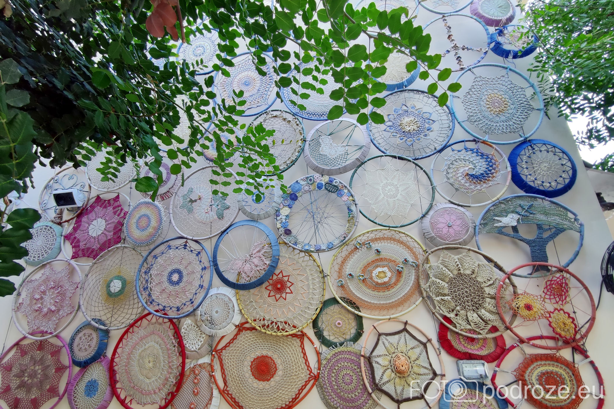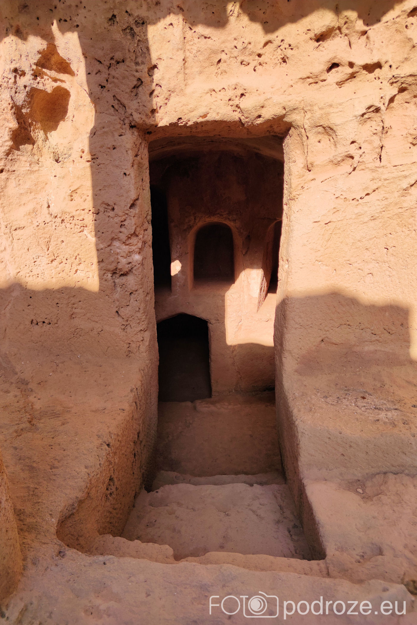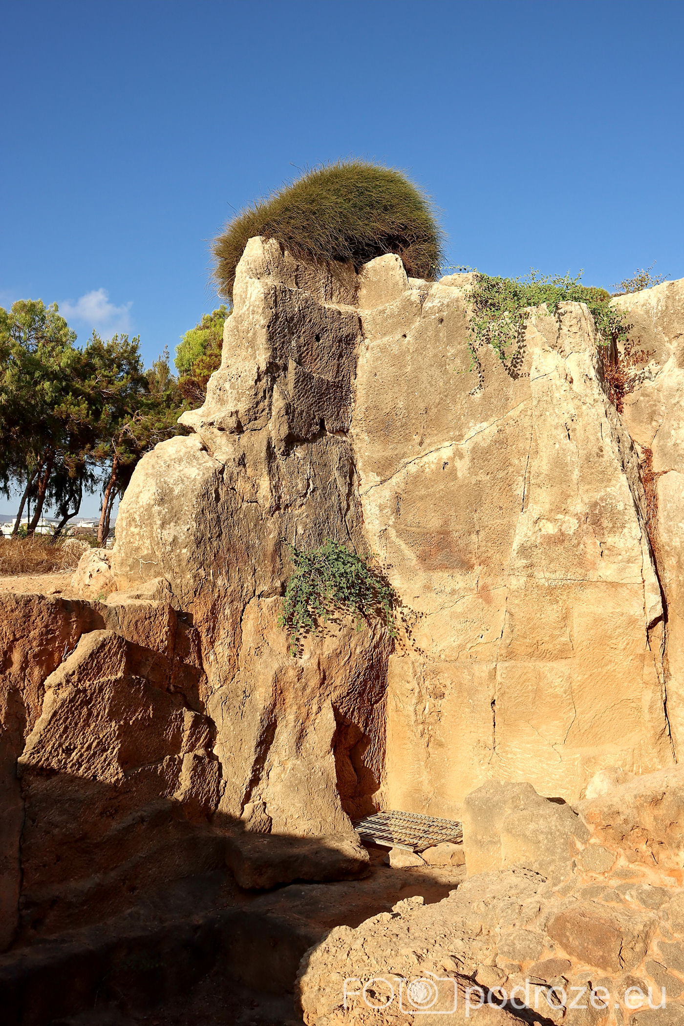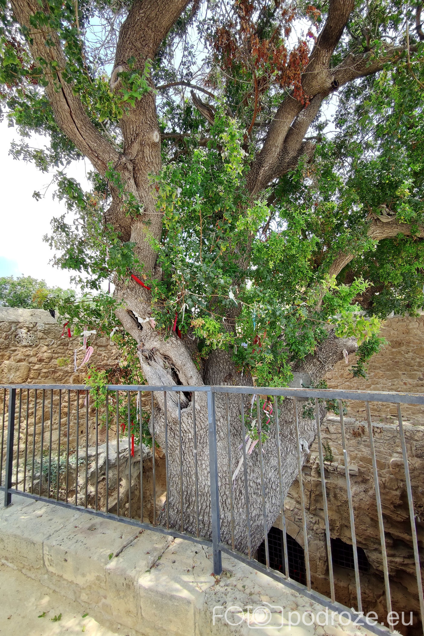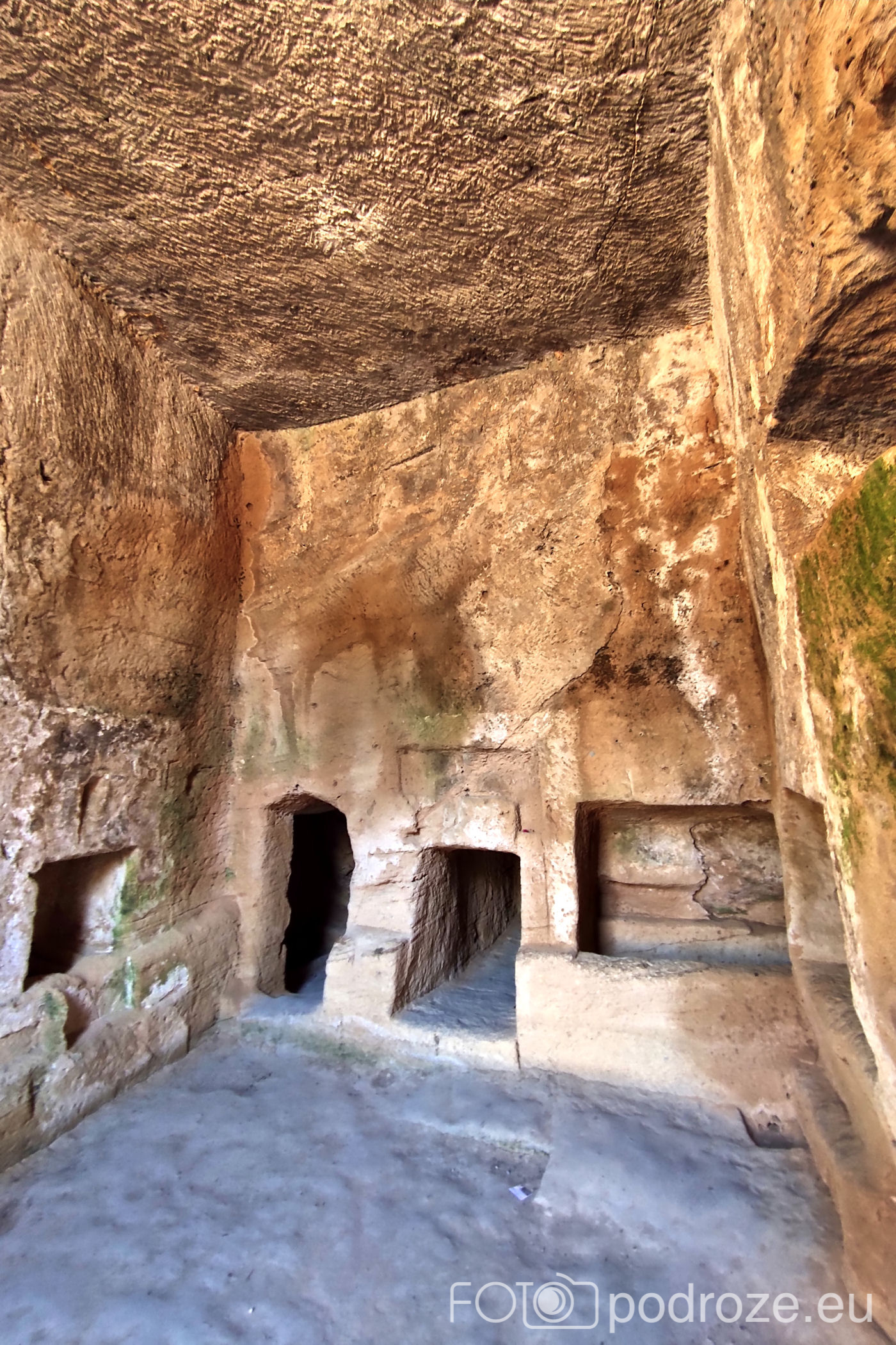 Tuż za amfiteatrem znajduje się kolejna grupa niezwykłych obiektów historycznych. Niestety do części z nich dostęp był ograniczony, bo w budowie była latem jakaś kładka piesza . Zajrzeliśmy tylko do katakumb Agia Solomoni. Nad nimi znajduje się drzewo obwieszone wstążkami i ścinkami materiału. To pistacja terpentynowa, której korzenie sięgają w głąb zabudowy, a wieszanie materiału na jej gałęziach wynika z wiary w uzdrowienie. Katakumby mają formę niewielkiego dziedzińca otoczonego wykutymi w skale komnatami służącymi w czasach helleńskich jako grobowce.