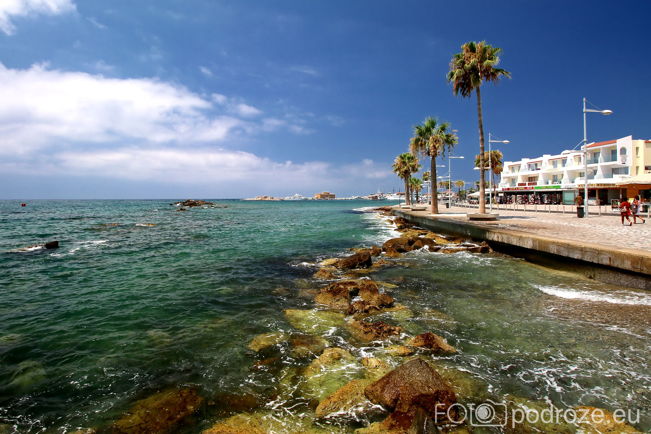 Zanim zabiorę Was do następnych zabytków miasta, proponuję spacer wzdłuż wybrzeża. Okrążamy w nim cały Półwysep Pafos. Tu bowiem znajduje się kilka przyjemnych plaż : Kefalos Beach i Lighthouse Beach. Dalej wybrzeże robi się już skaliste, ale prowadzi tędy całkiem przyjemna promenada. Przyjemna, ale nie latem, bo teren jest całkowicie odkryty i nie ma tu ani jednego drzewa.