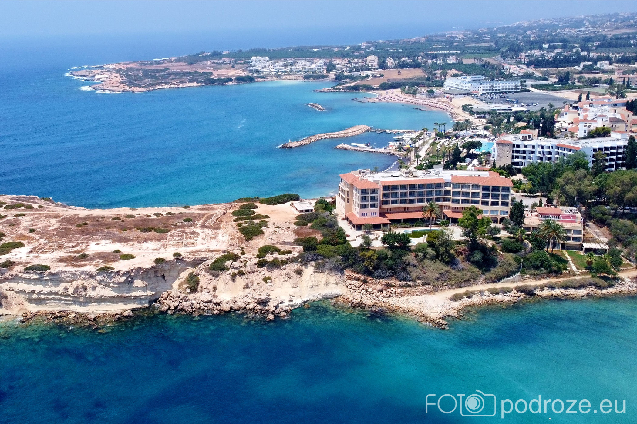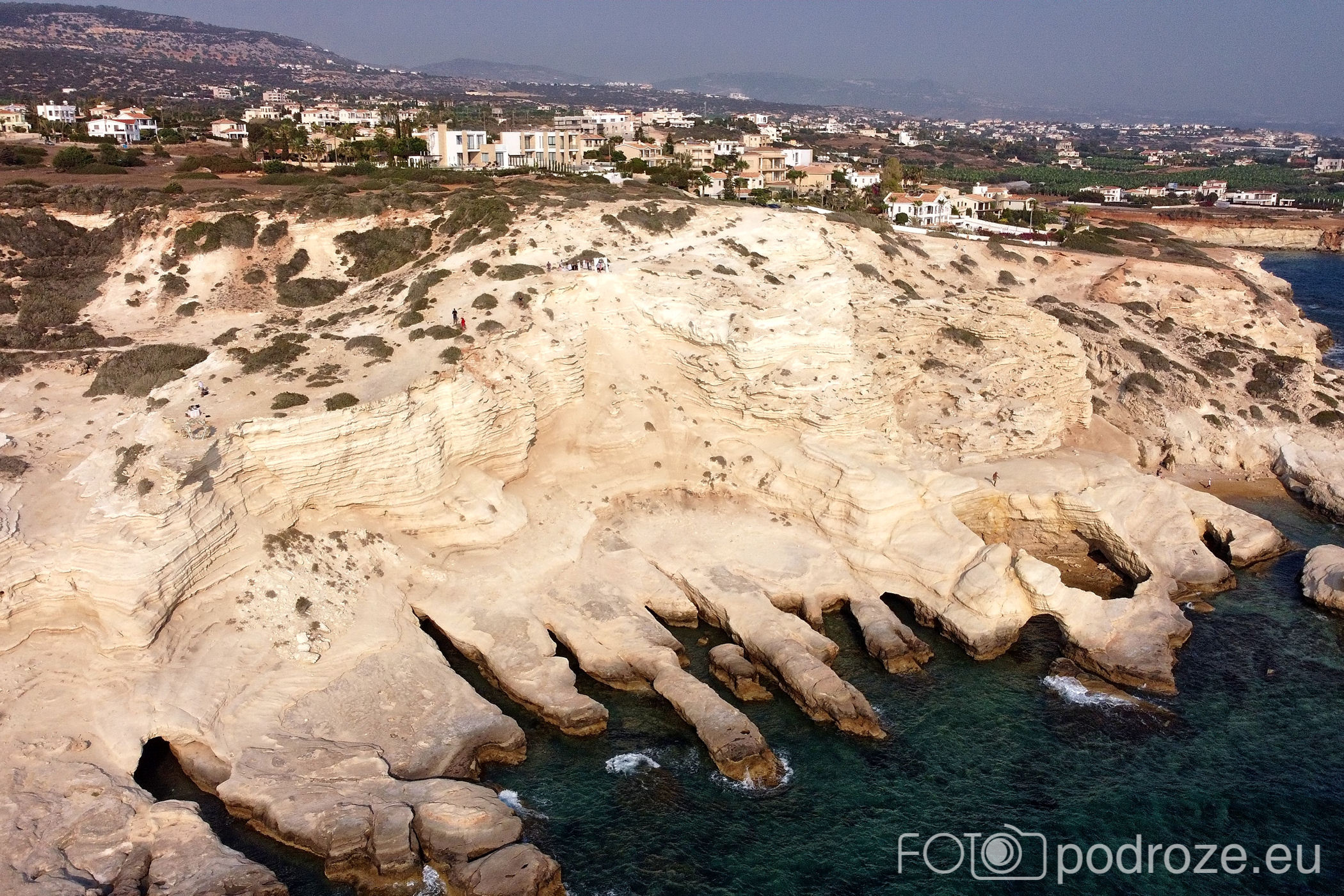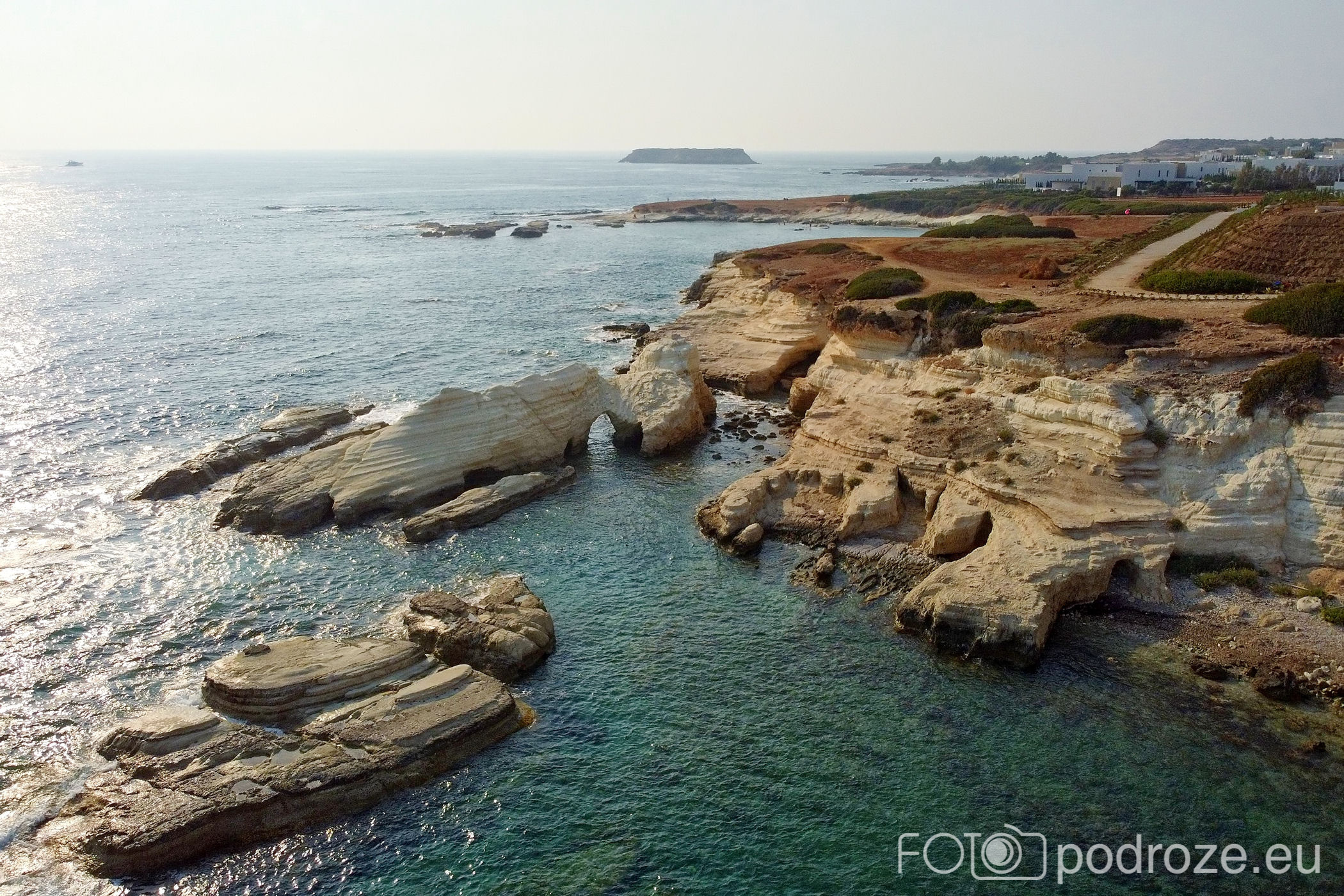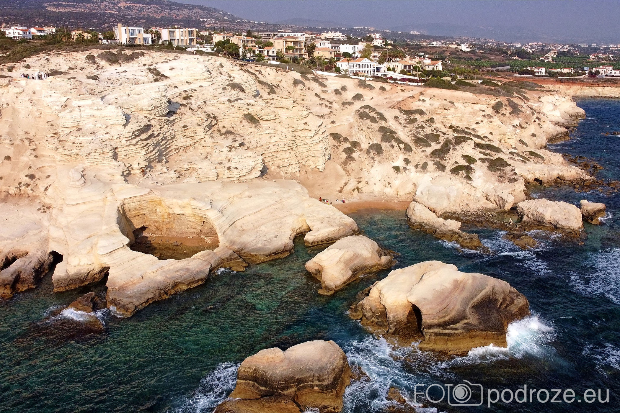 Coral Bay, czyli zatoka Koralowa to jedno z tych miejsc o których poczytacie w każdym przewodniku. To jedna z tych plaż, która przyciąga masę plażowiczów. Jasny piasek i turkusowa woda – dla wielu to wszystko, czego im potrzeba. My nie jesteśmy miłośnikami komercyjnych plaż pełnych leżaków i parasoli, choć jak widać z ujęć drona – i takie miejsce może być piękne. Warto wiedzieć, że na północnym cyplu okalającym zatokę znajduje się Muzeum Archeologiczne – Mycenaean settlement of Cyprus Museum. Widać je wyraźnie z góry, jest ukryte w skale, a na zewnątrz widoczne jako okrąg.