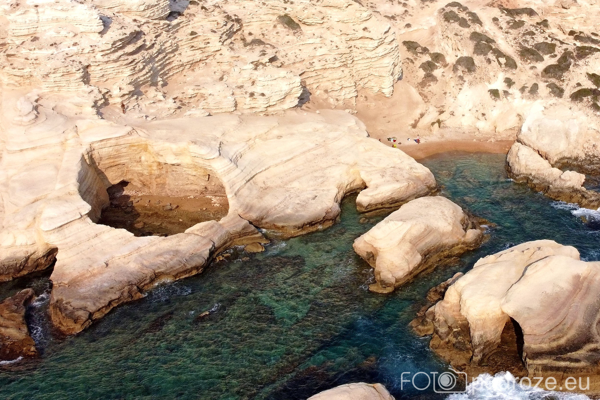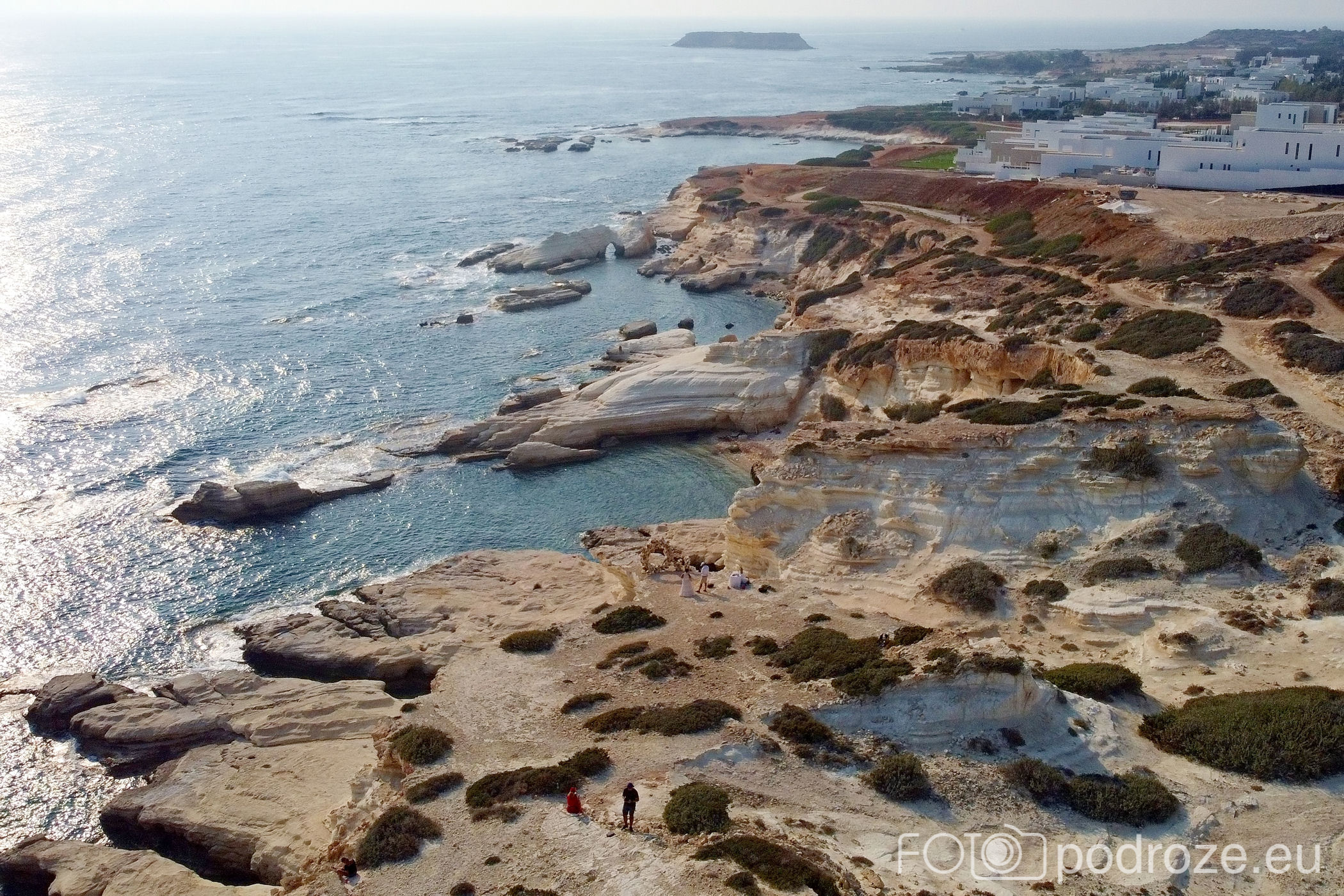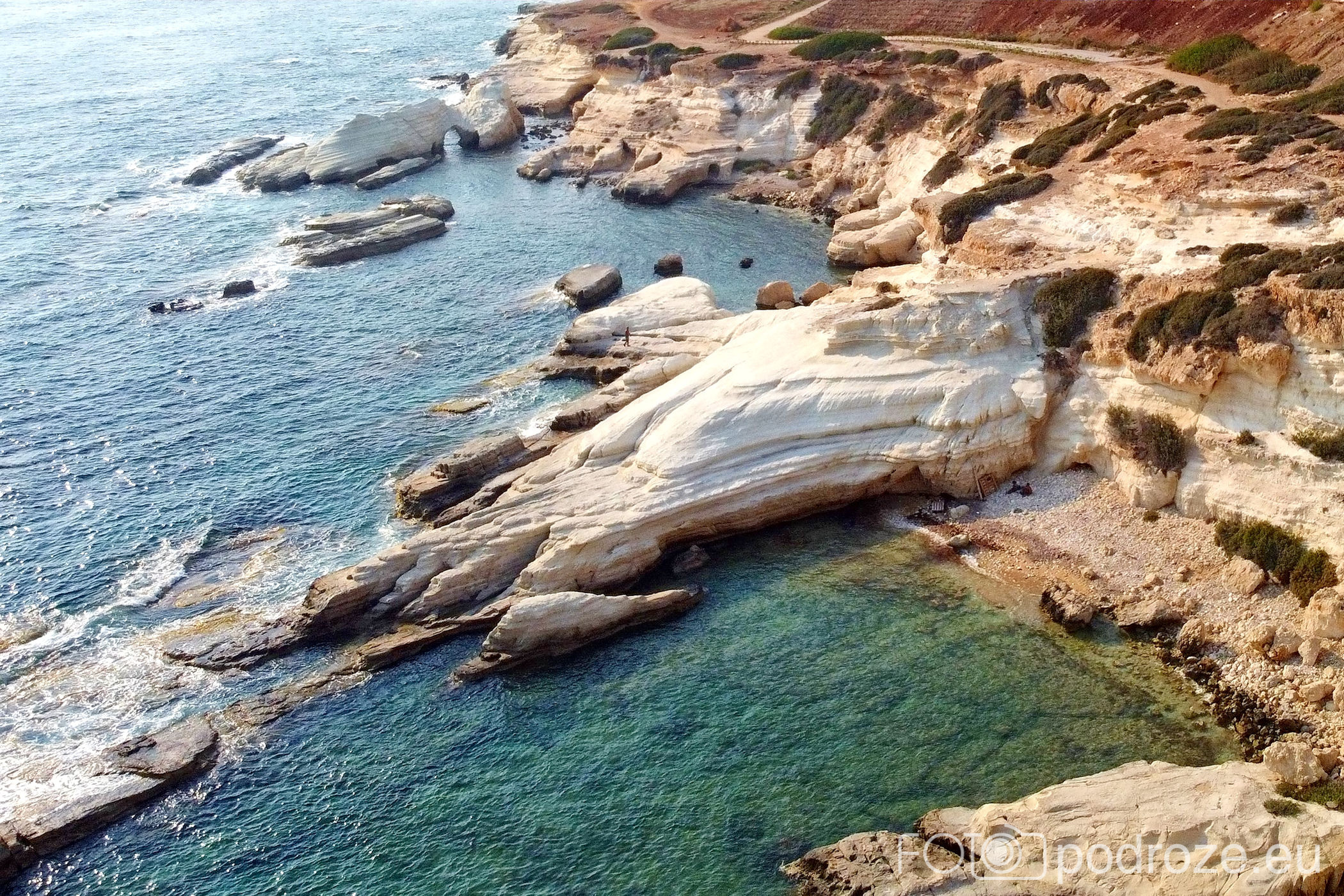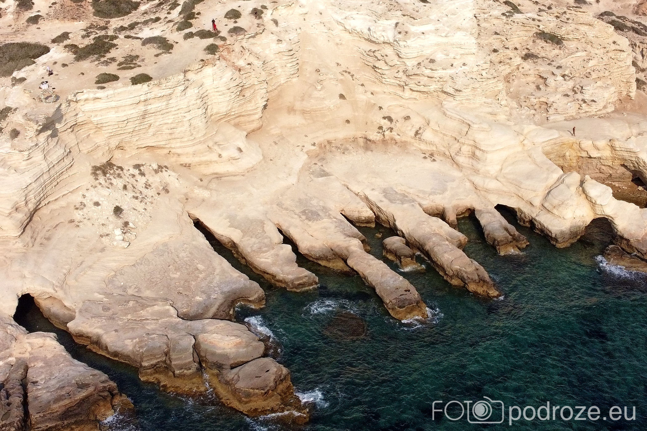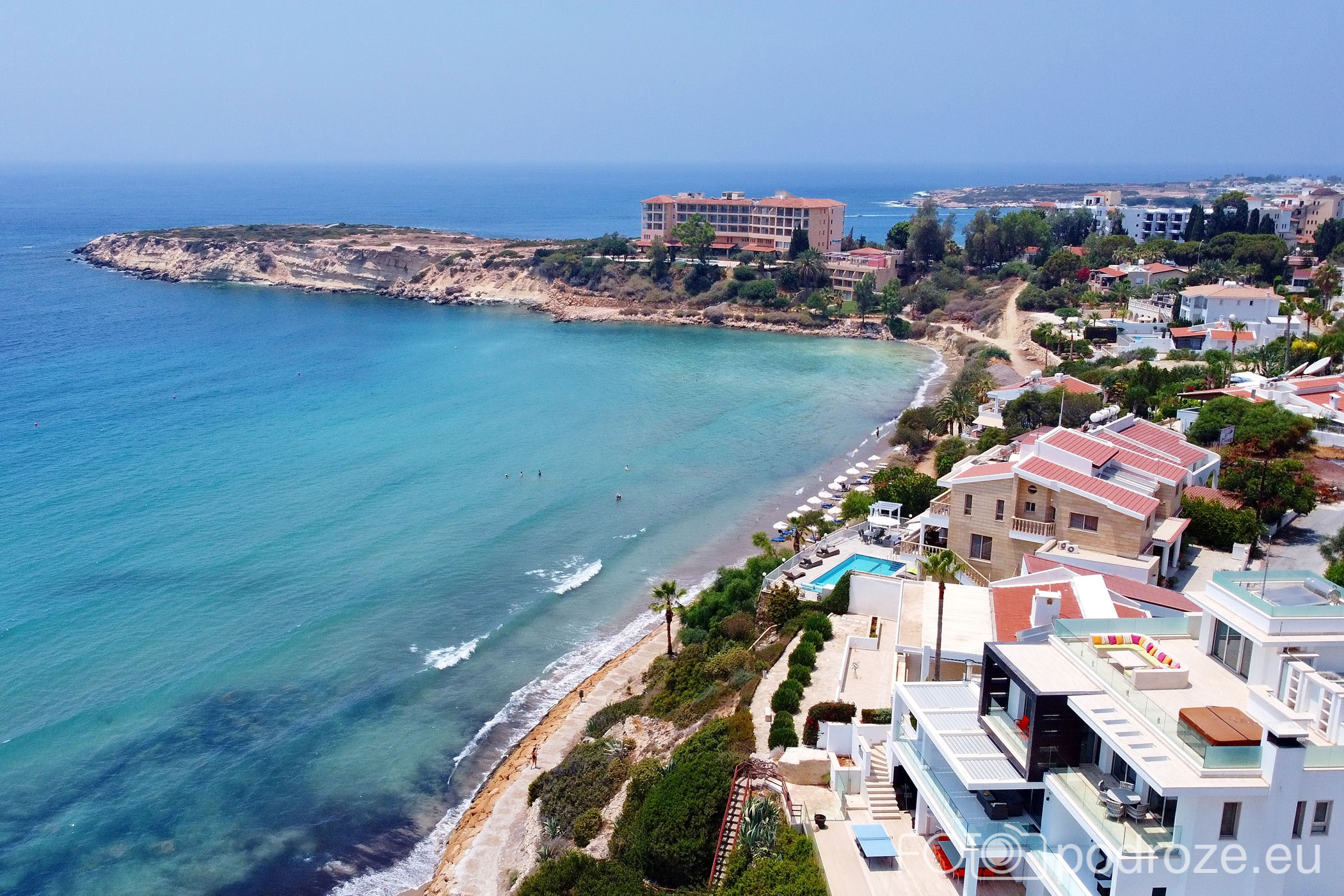 Coral Bay, czyli zatoka Koralowa to jedno z tych miejsc o których poczytacie w każdym przewodniku. To jedna z tych plaż, która przyciąga masę plażowiczów. Jasny piasek i turkusowa woda – dla wielu to wszystko, czego im potrzeba. My nie jesteśmy miłośnikami komercyjnych plaż pełnych leżaków i parasoli, choć jak widać z ujęć drona – i takie miejsce może być piękne. Warto wiedzieć, że na północnym cyplu okalającym zatokę znajduje się Muzeum Archeologiczne – Mycenaean settlement of Cyprus Museum. Widać je wyraźnie z góry, jest ukryte w skale, a na zewnątrz widoczne jako okrąg.