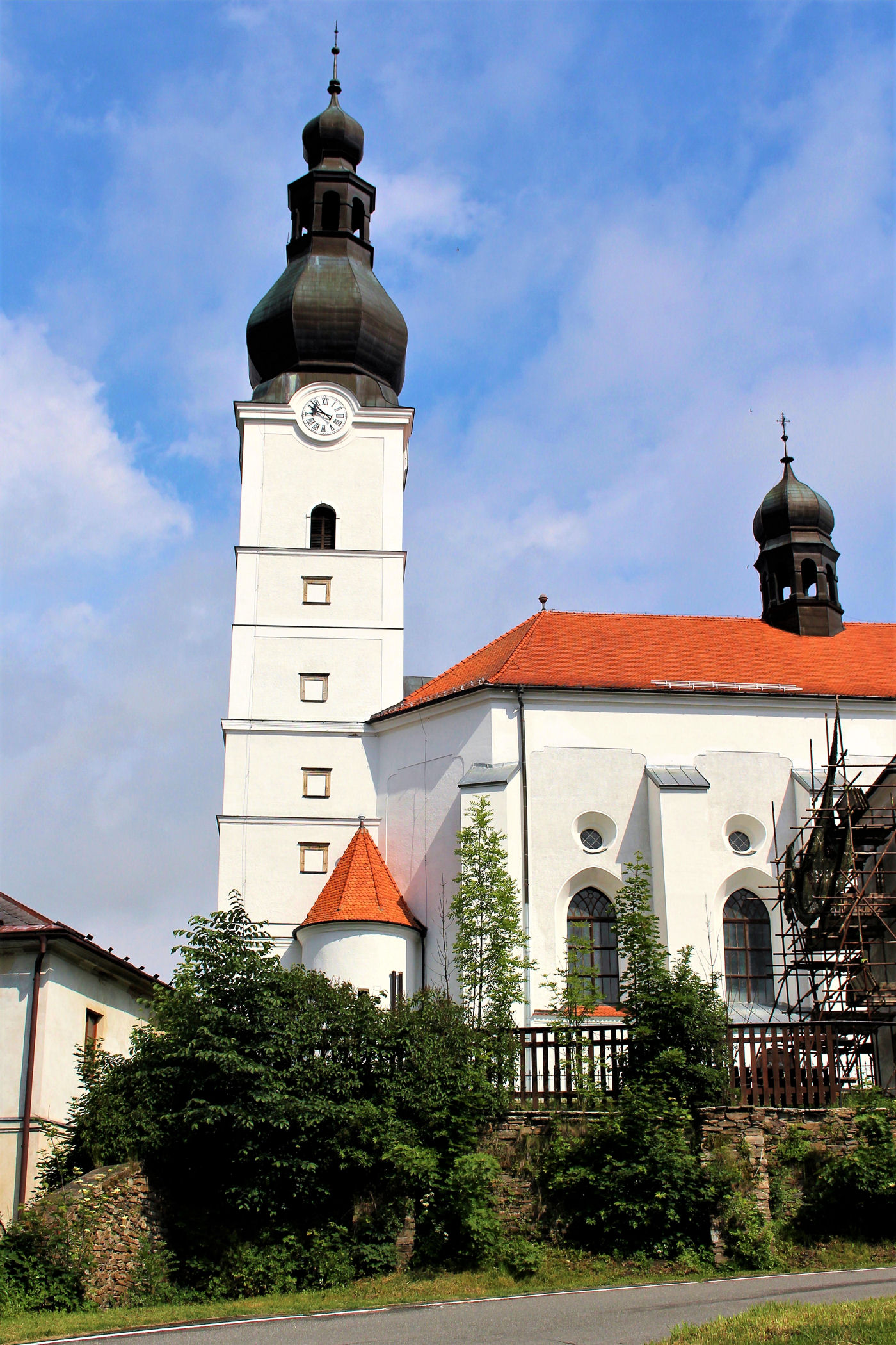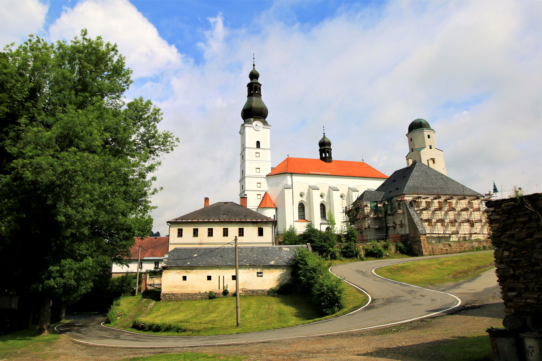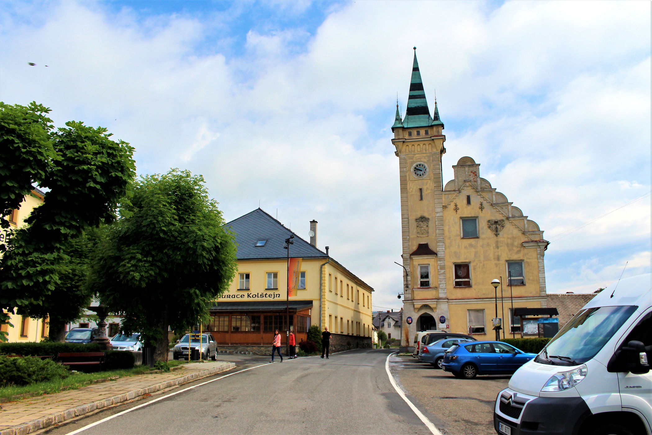 Pierwszy dłuższy postój planujemy w maleńkiej miejscowości Branna przy drodze 369. Branna w przeszłości posiadała prawa miejskie – od 1436 miała statut miasteczka, a od 1897 aż do połowy XX wieku miasta – utraciła je po wyludnieniu wsi, które nastąpiło w wyniku wysiedlenia miejscowych Niemców. Branná posiada kilka cennych zabytków architektonicznych. Najważniejszym jest gotycko-renesansowy zamek Kolštejn, którego początki sięgają XIV wieku. Po pożarze w 1926 odbudowano go częściowo w latach 60. XX wieku. W centrum wsi znajduje się budynek wójtostwa z kwadratową wieżą z przełomu XVI i XVII wieku oraz ratusz – z lat 1905-1906. Innymi zabytkami architektury są kościół parafialny z 1614 pod wezwaniem Michała Archanioła oraz budynek klasycystycznego probostwa z 1784. Od 1992 historyczne centrum wsi jest strefą pamiątkową , aktualnie część budynków jest odrestaurowywanych. Zaniedbanie widać na tą chwilę, ale wieś ma potencjał i wyjątkowy urok.