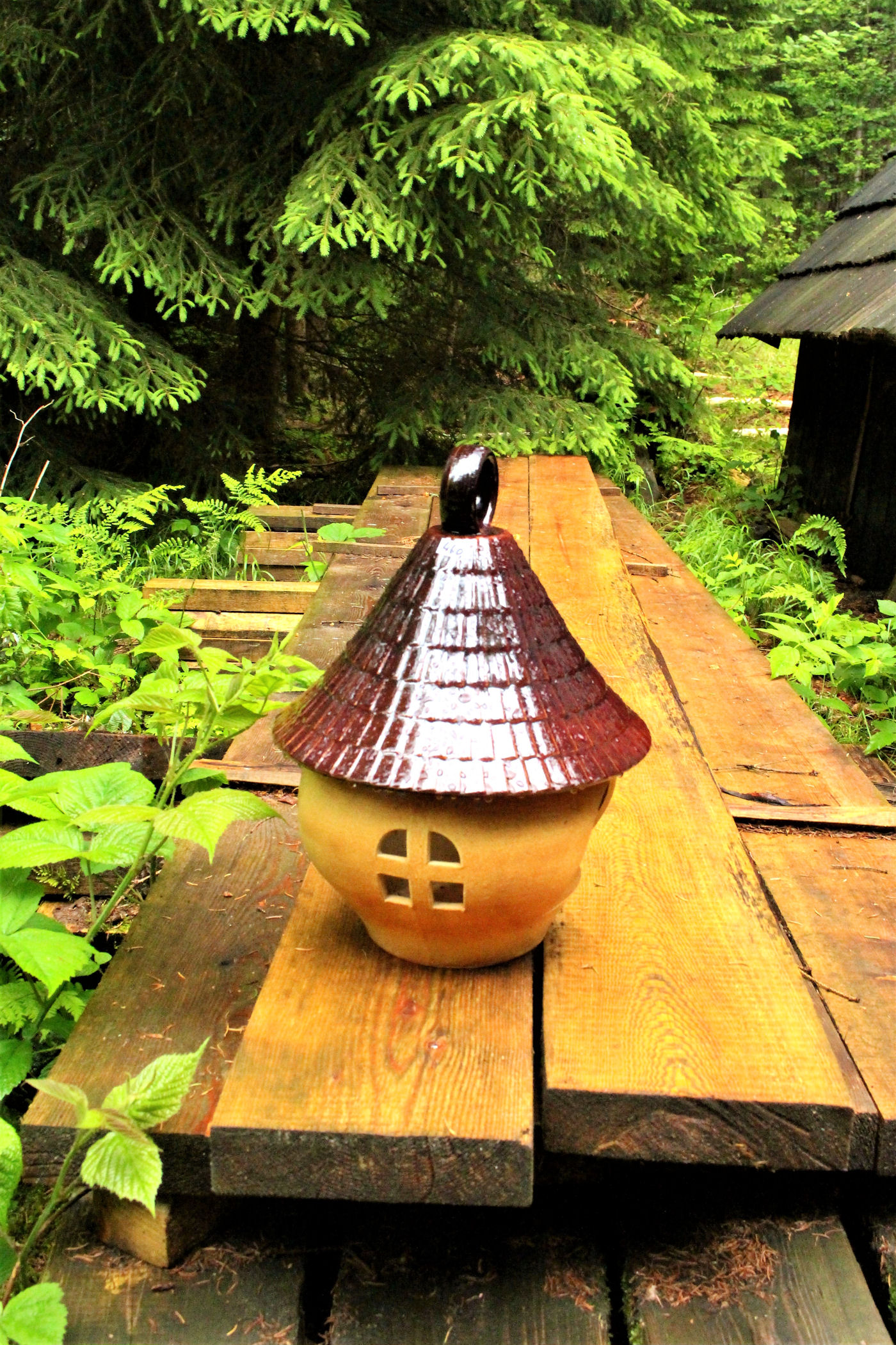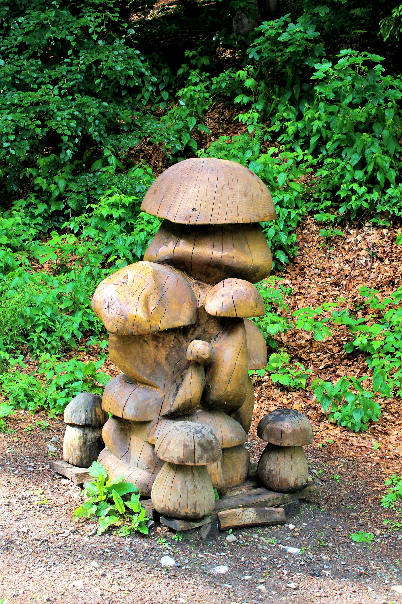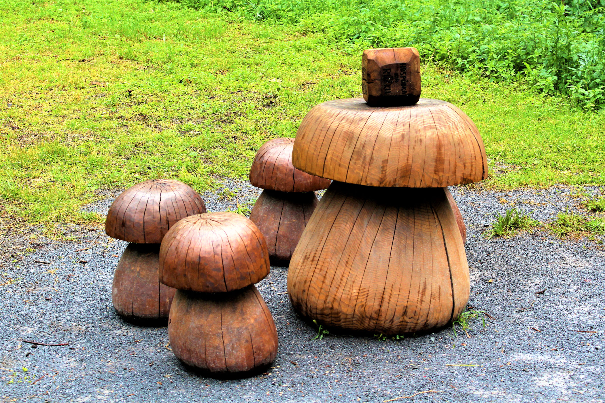 Czechy faktycznie potrafią zaskakiwać. Przed wyjazdem poszukując ciekawostek odnalazłam kolejną – bar w lesie. W sumie nic niezwykłego, ale zaintrygowała mnie informacja , że bar jest całkowicie samoobsługowy. Podjeżdżamy na ostatni parking w lesie, a dalej już na piechotkę około 2 km do celu. Na wejściu jest drzewo z zawieszonymi kijkami trekkingowymi, a nawet parasol, za 10 koron można je sobie wypożyczyć na drogę. Szlak umilają rzeźby grzybów, twarzy, ścieżka zdrowia i zajączek z drewna.