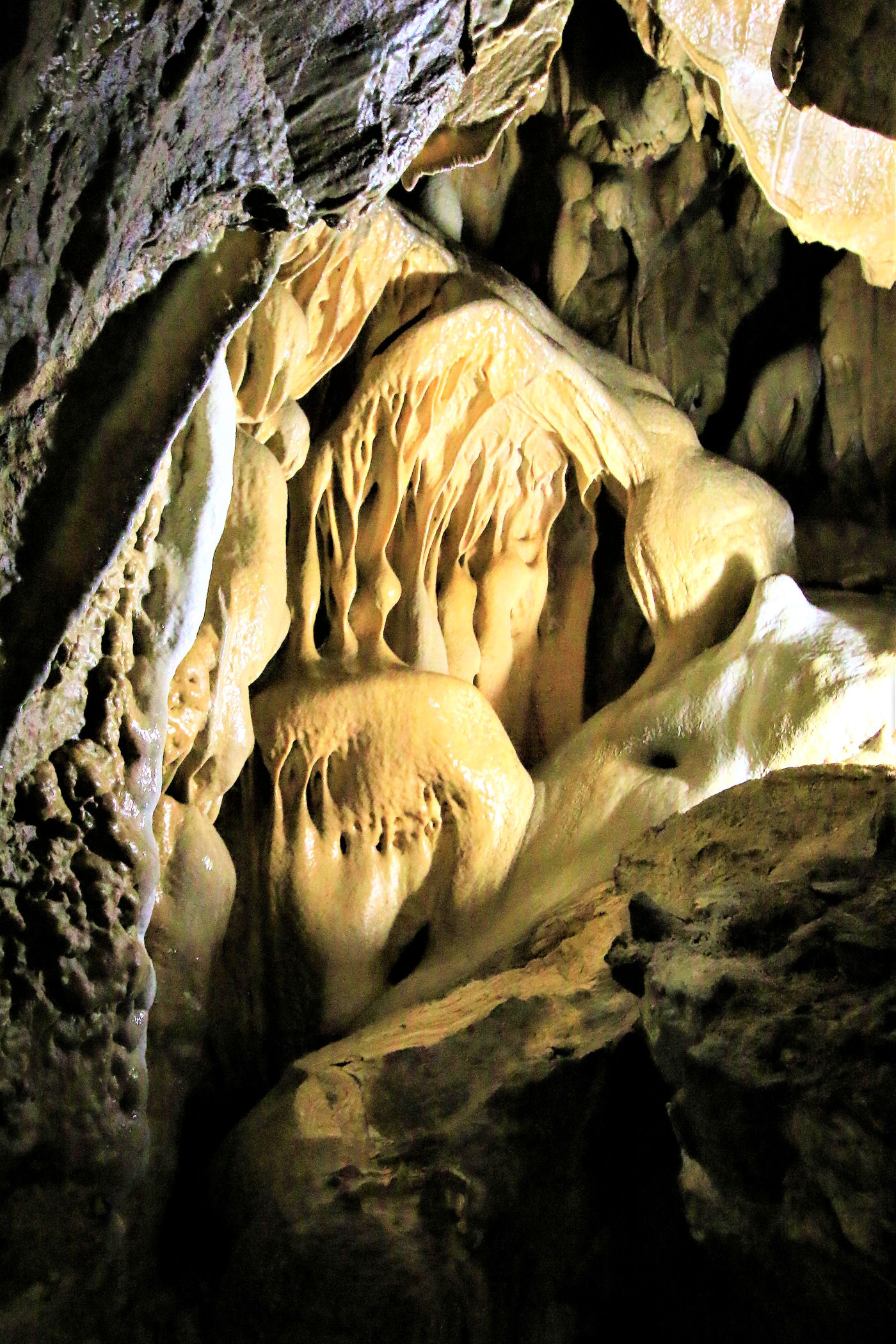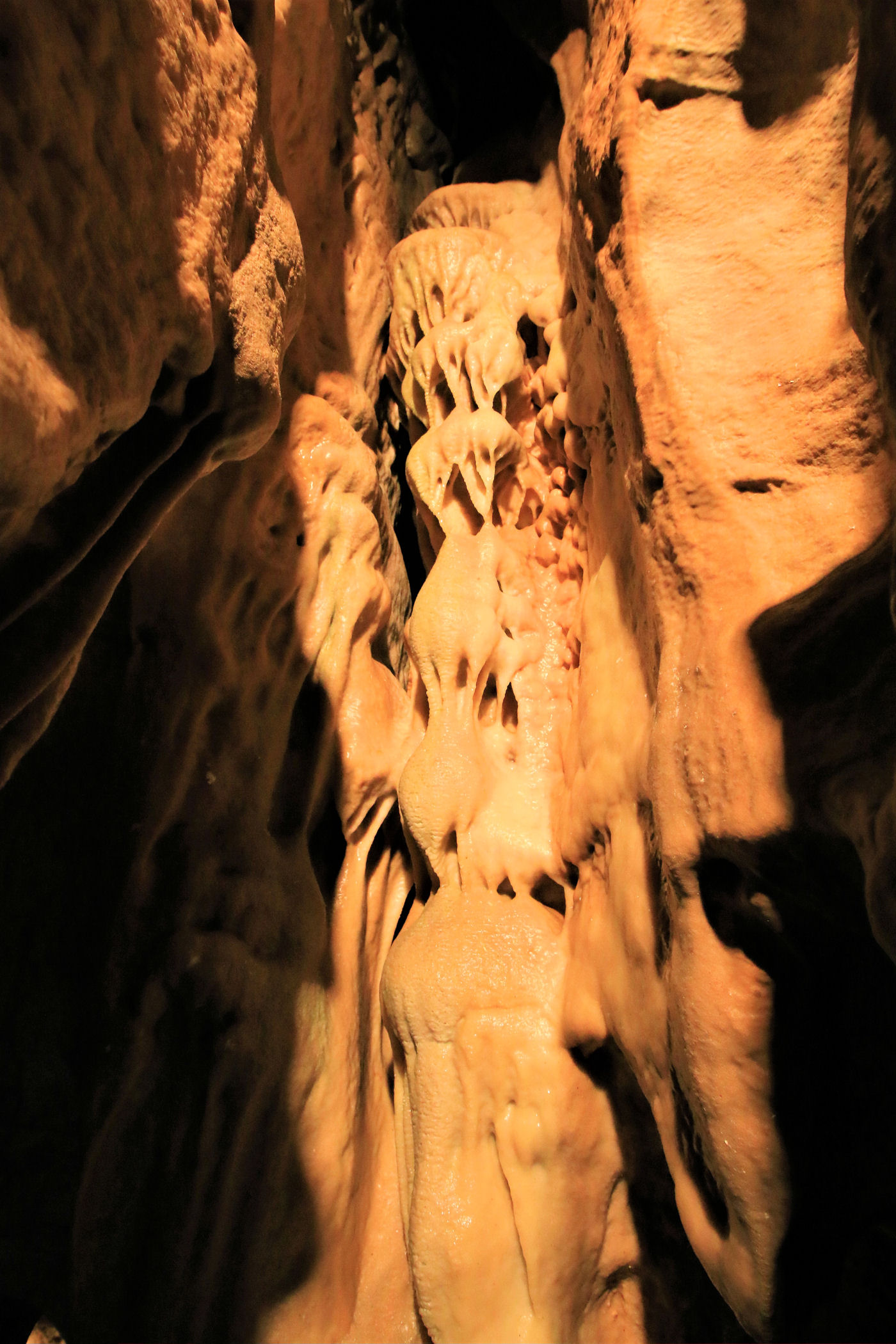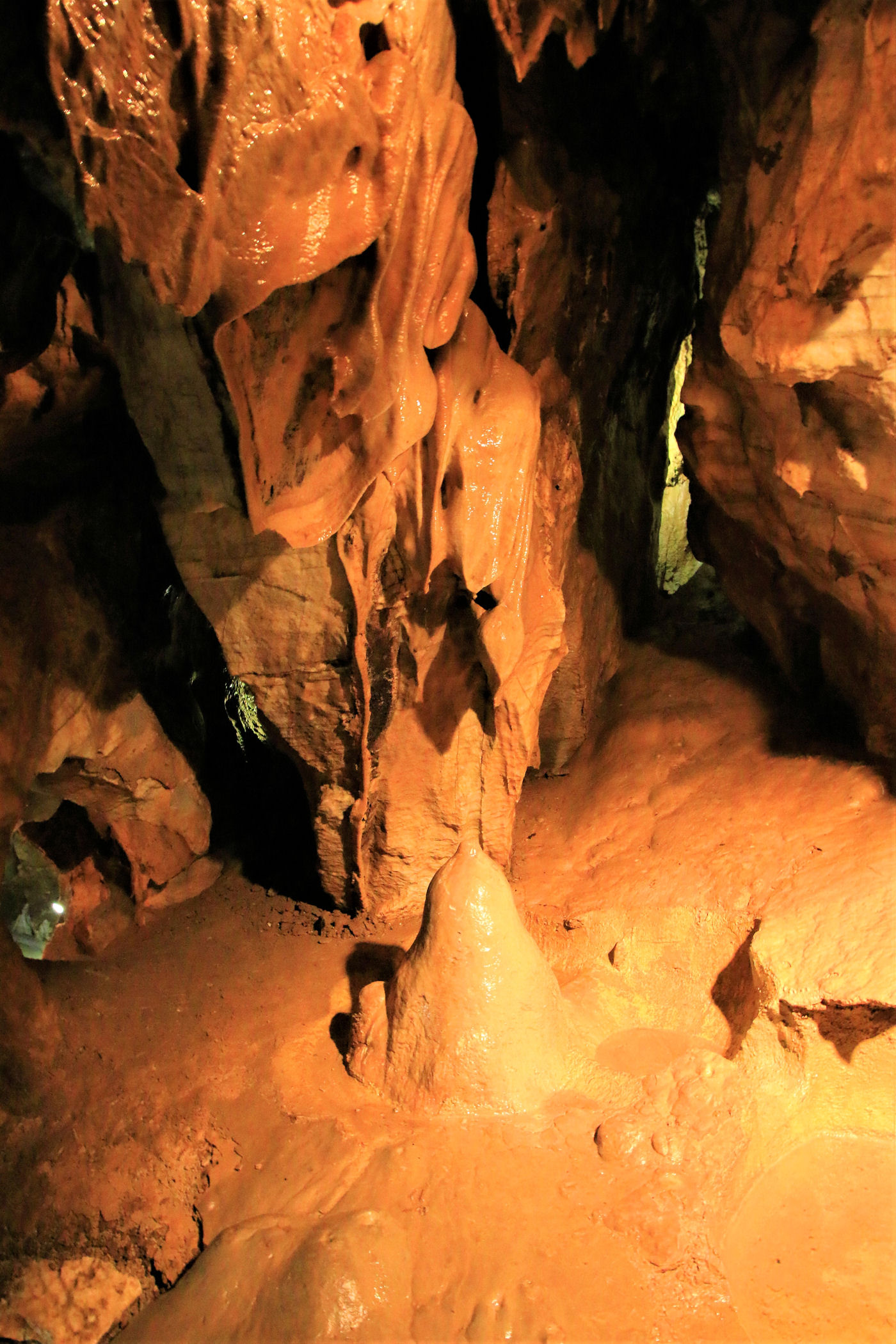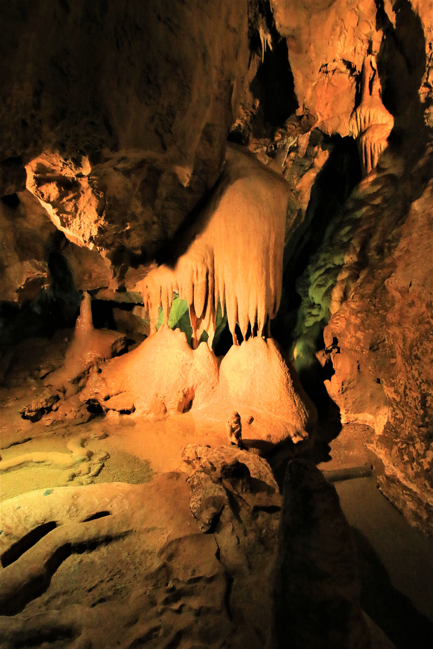 Zaledwie 2km dalej na północ od Jesioników znajduje się kolejna atrakcja – największa jaskinia Czech – Jeskyně Na Pomezí. Stawiamy się przed nią tuż przed otwarciem i dzięki temu bez czekania wchodzimy na zwiedzanie z pierwszą grupą punktualnie o 10.00 . Całość przejścia trwa zaledwie 45minut, wstęp kosztuje 110 dorośli i 70 koron dzieci, dodatkowo można wykupić pozwolenie na robienie zdjęć za 40 koron.