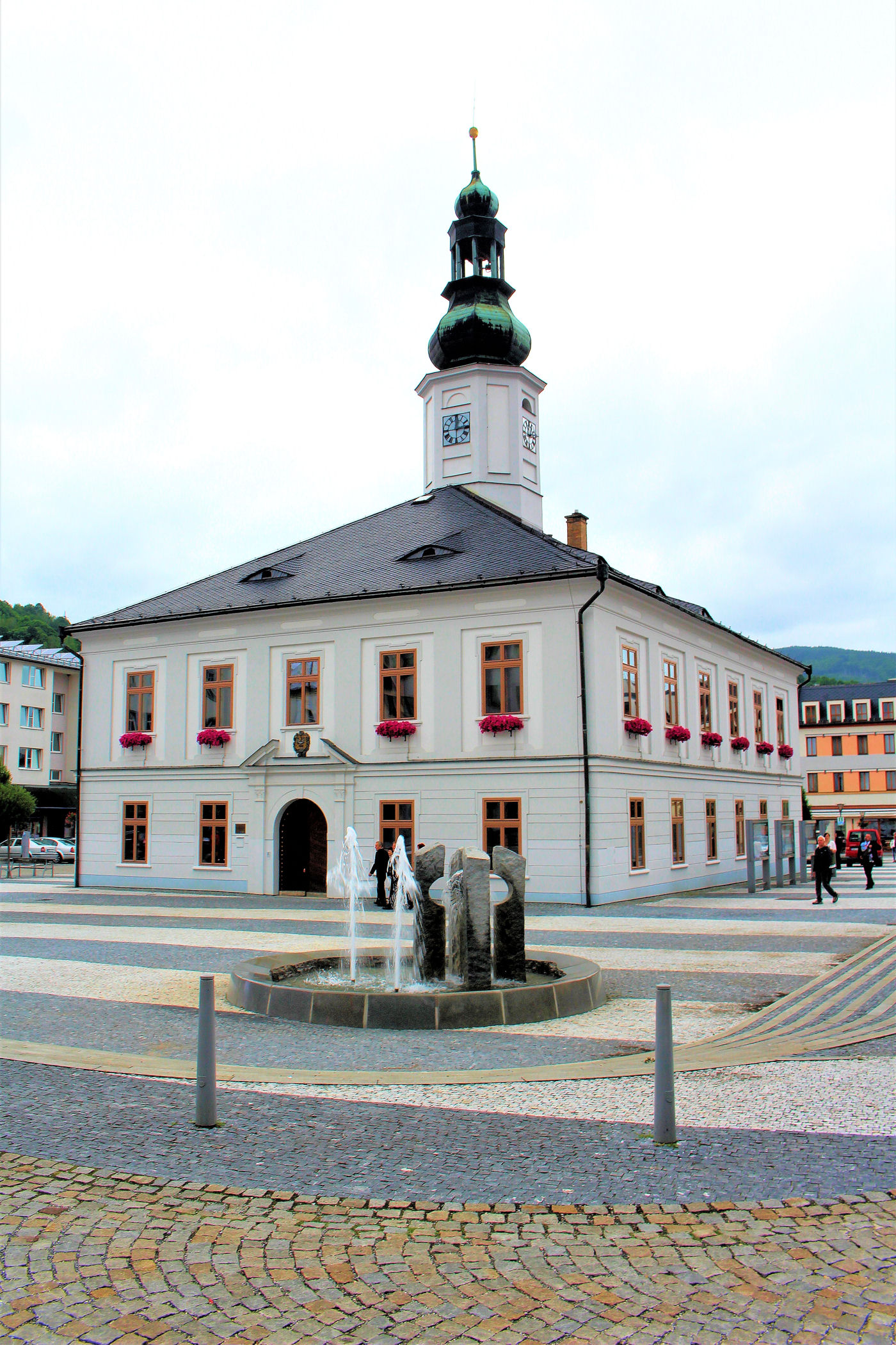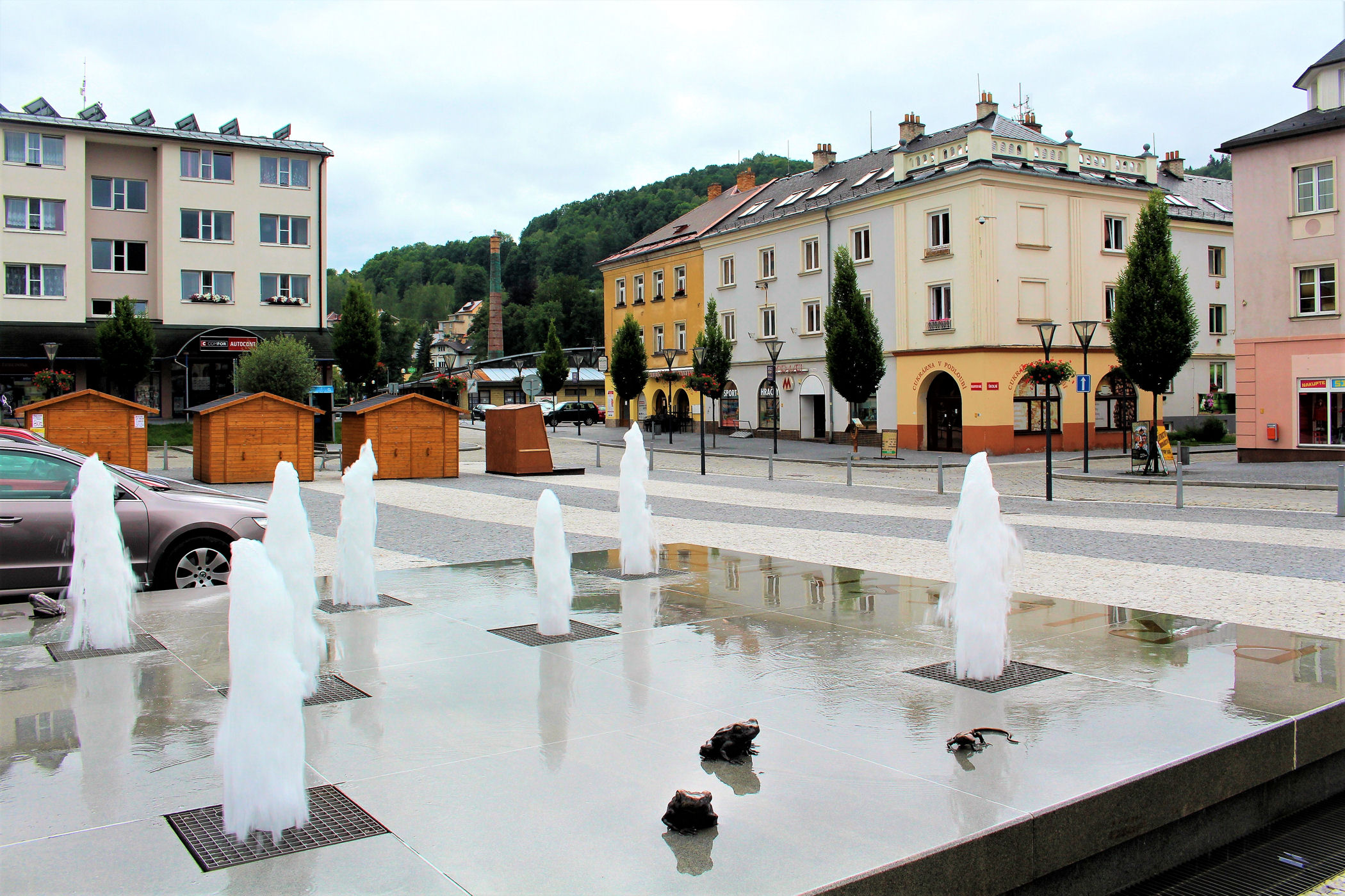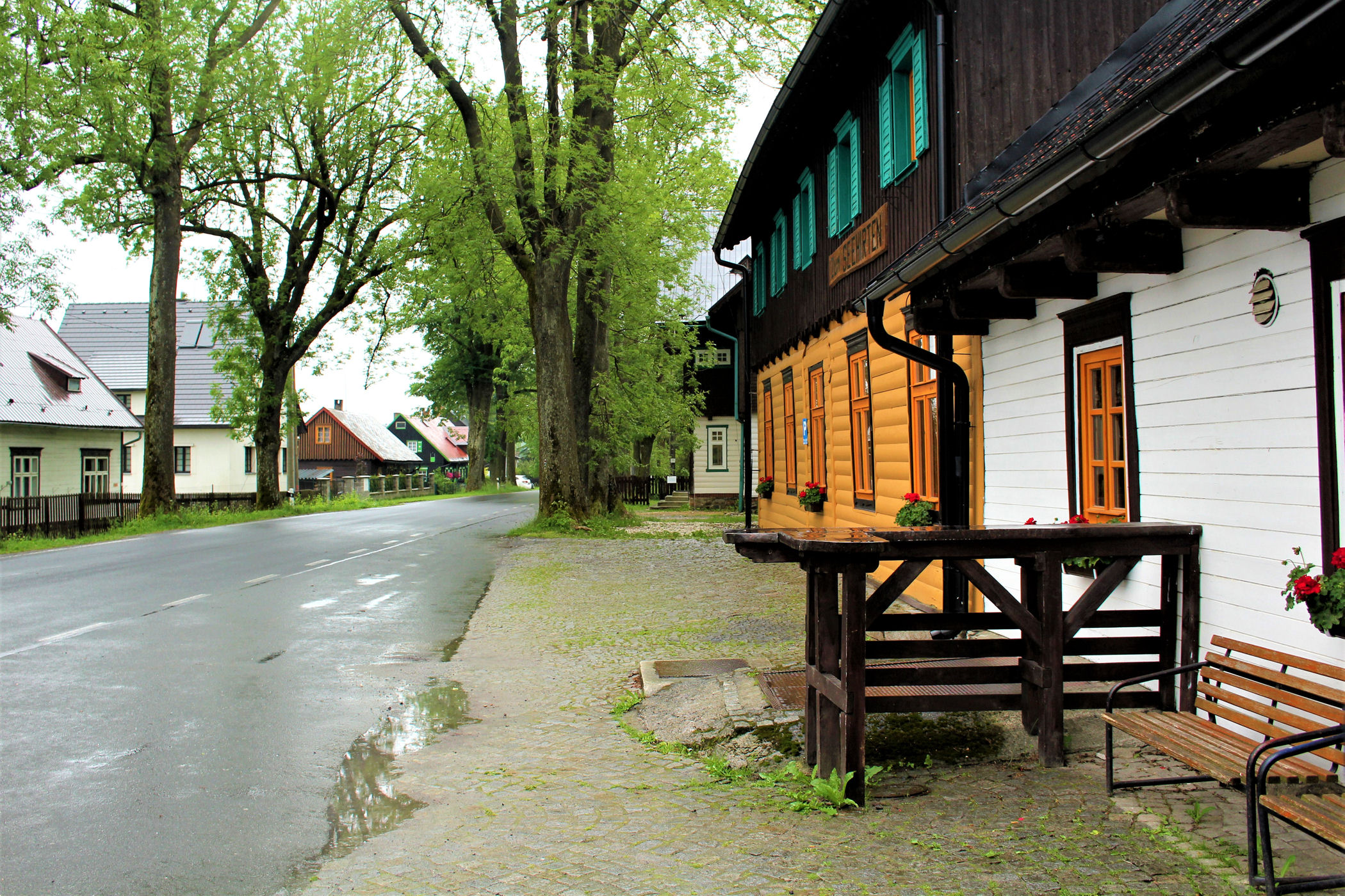 Zaczynamy od kawy w uroczej kawiarence w centrum Jesioników – stolicy regionu. Tu przeglądamy mapy i przewodniki leżące na ladzie zastanawiając się co zrobić z dzisiejszym dniem. Potem jeszcze mały spacer po centrum, które w deszczu nie wygląda szczególnie ciekawie. W przeszłości Jesionik był największym miastem biskupiego księstwa nyskiego. W czasach późniejszych rozwój miasta i okolicy związany był przede wszystkim z pierwszym na świecie zakładem wodoleczniczym – stąd nazwa Lipove Lazne. Do 1918 Jesionik był miastem zamieszkałym niemal wyłącznie przez Niemców – spis z 1910 wykazał, że dla 99,5% był on językiem ojczystym. Jeszcze w latach 30-tych była ich przewaga.