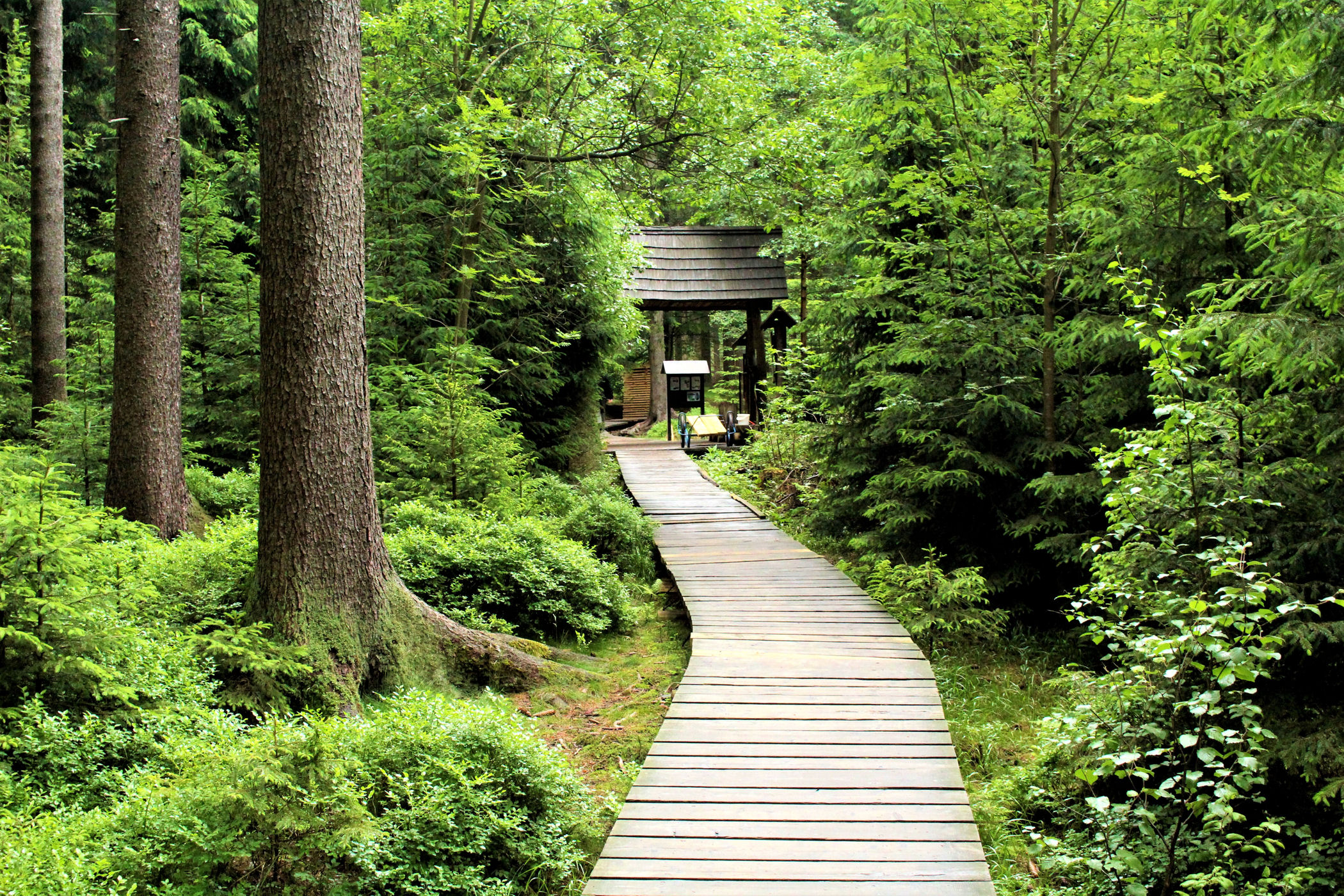 W miejscowości Rejvíz widzimy spory parking i tablice informacyjną. Parking jest niestety płatny, ale decydujemy się ruszyć na rekonesans w poszukiwaniu rezerwatu. Do jeziorka prowadzi szlak do pewnego momentu po gruncie, potem odbija ostro w lewo i dalej idzie się już po drewnianych pomostach. Kawałek dalej domek z poborem opłat za wstęp do rezerwatu.