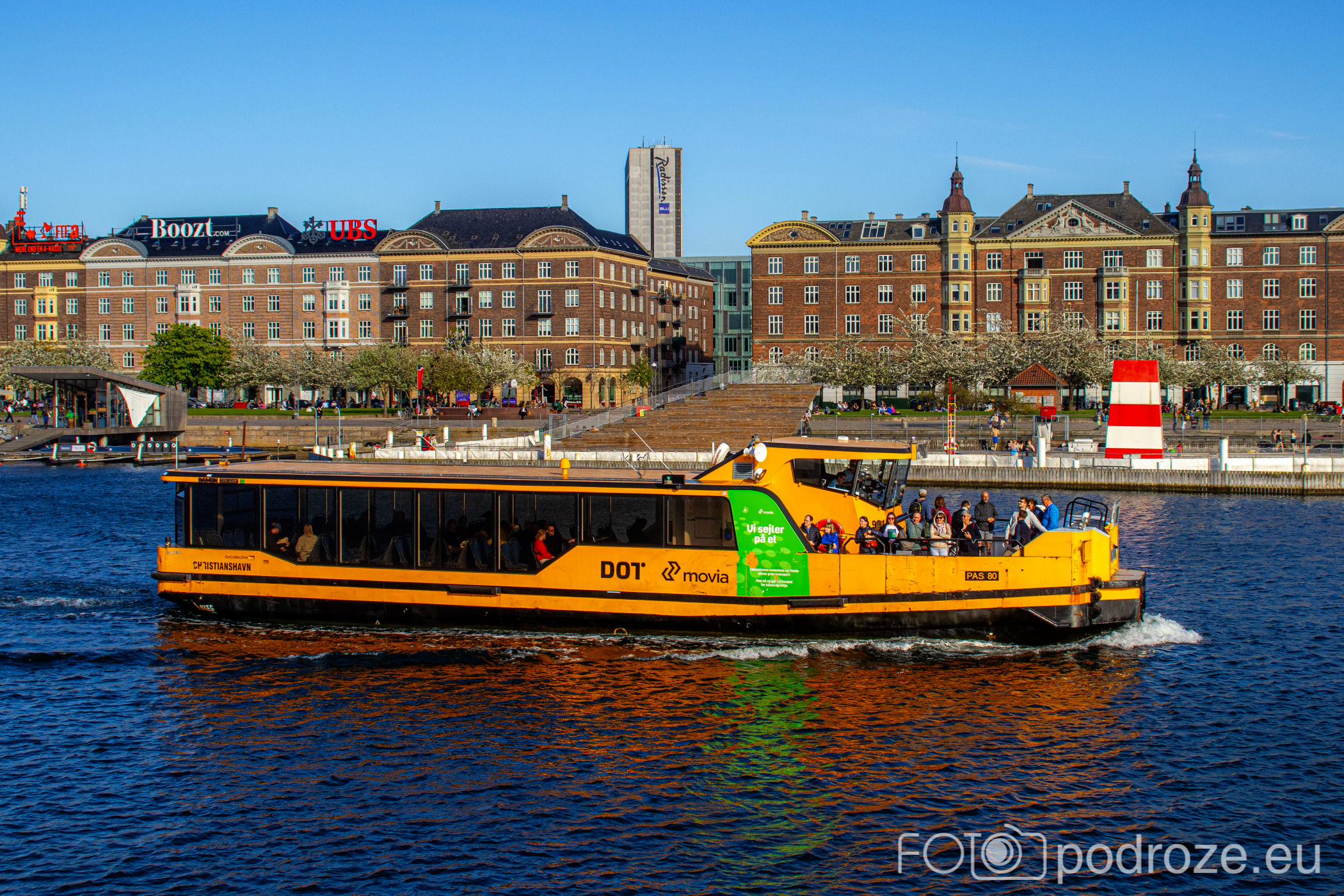 Prom wodny kursuje na dość długim odcinku od Małej Syrenki, przez Operę i Nyhavn, do Christianborgu i dalej na południe od miasta. Są tu dwie linie : 991 w kierunku południowym i 992 w kierunku północnym . Kursują co pół godziny. Obowiązują opłaty jak w innych środkach transportu. Bilety można kupić u obsługi łodzi lub w automatach na stacjach, w metrze lub za pośrednictwem aplikacji mobilnej.