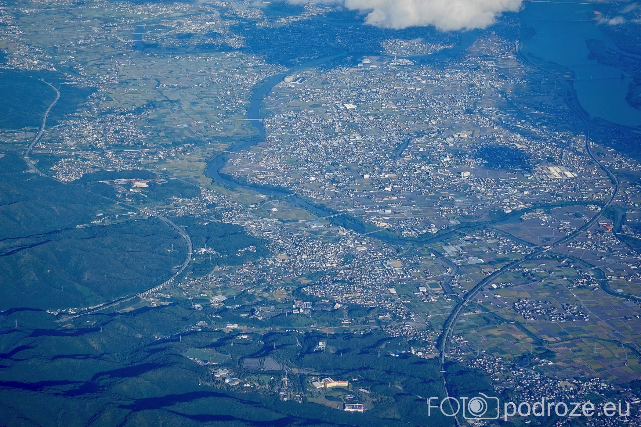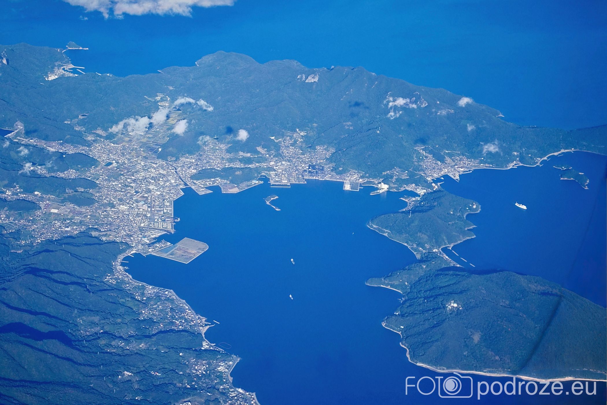 And finally, a few more views of the city and the entire Osaka Bay from the plane on the way to Kansai Airport. Osaka Bay lies between Osaka, Kobe and Awaji Island and is part of the Seto Inland Sea. Its shores are home to Osaka, Sakai, Kobe and Kansai Port (with an airport on an artificial island).