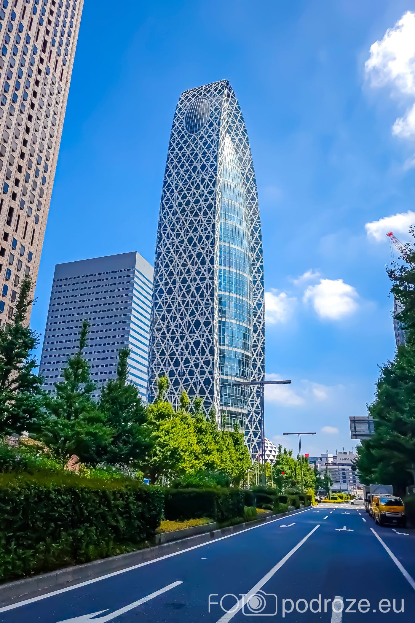 Tokyo Mode Gakuen is one of the most distinctive and futuristic buildings in Shinjuku, instantly catching the eye with its unusual form. The skyscraper stands out with its organic, spiral shape, resembling a cocoon or a gigantic sculpture.