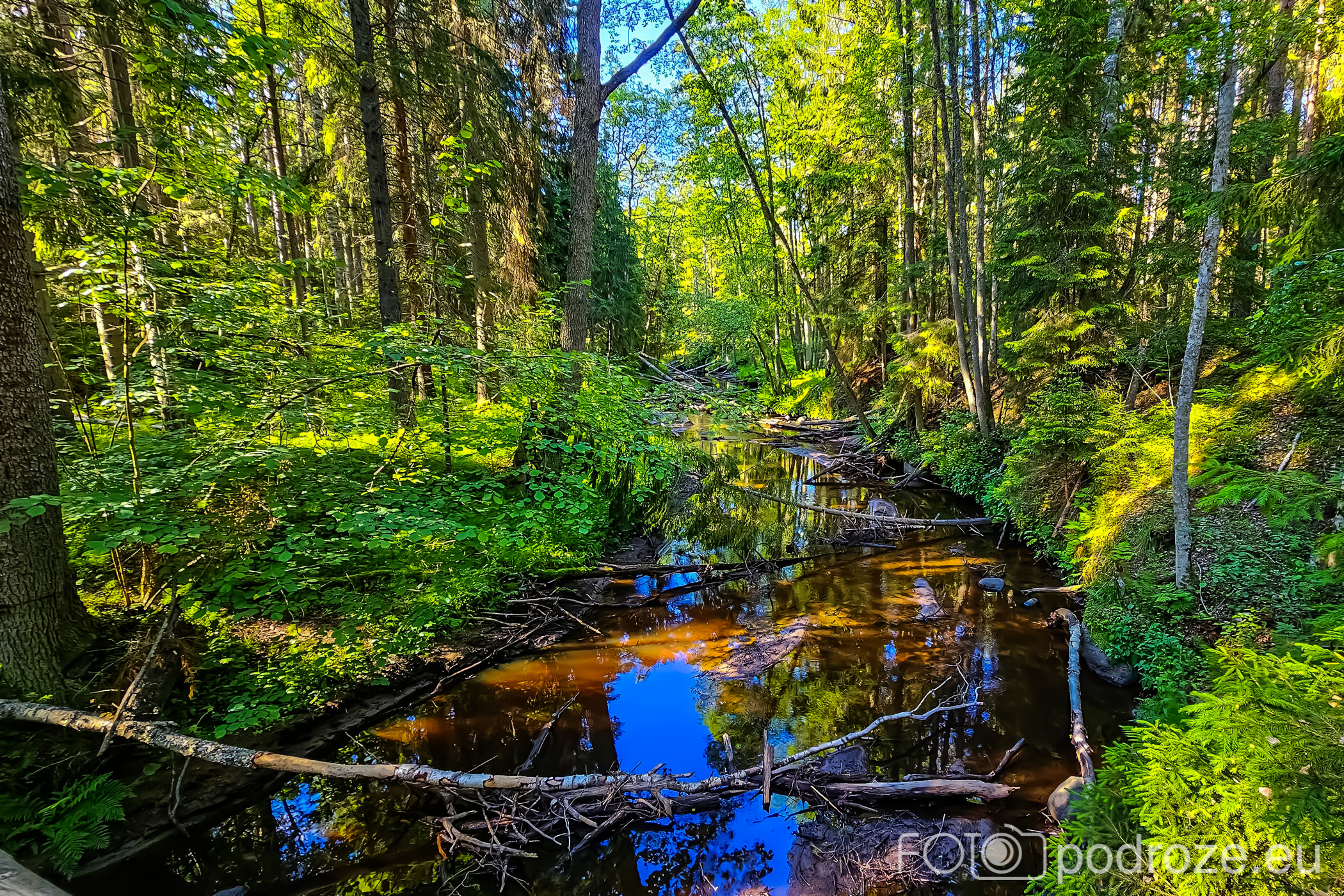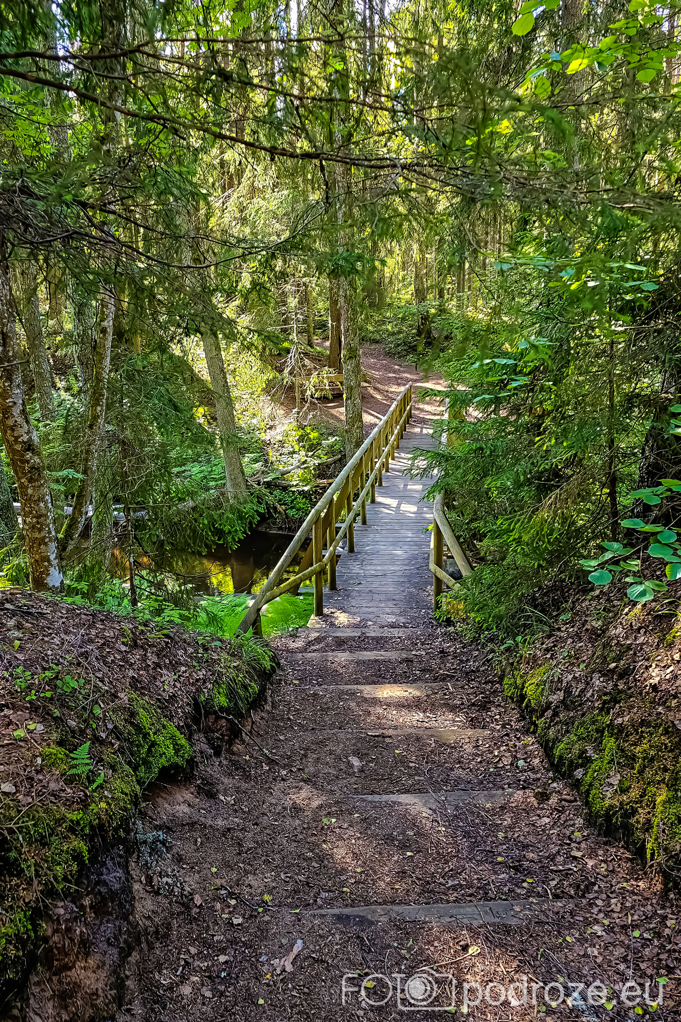 Dalej szlak prowadzi wzdłuż plaży i potem z powrotem przez las przez mostki nad leśnym potokiem. Jedynym nieprzyjemnym elementem tego miejsca są komary, ale taki już urok Estonii.
