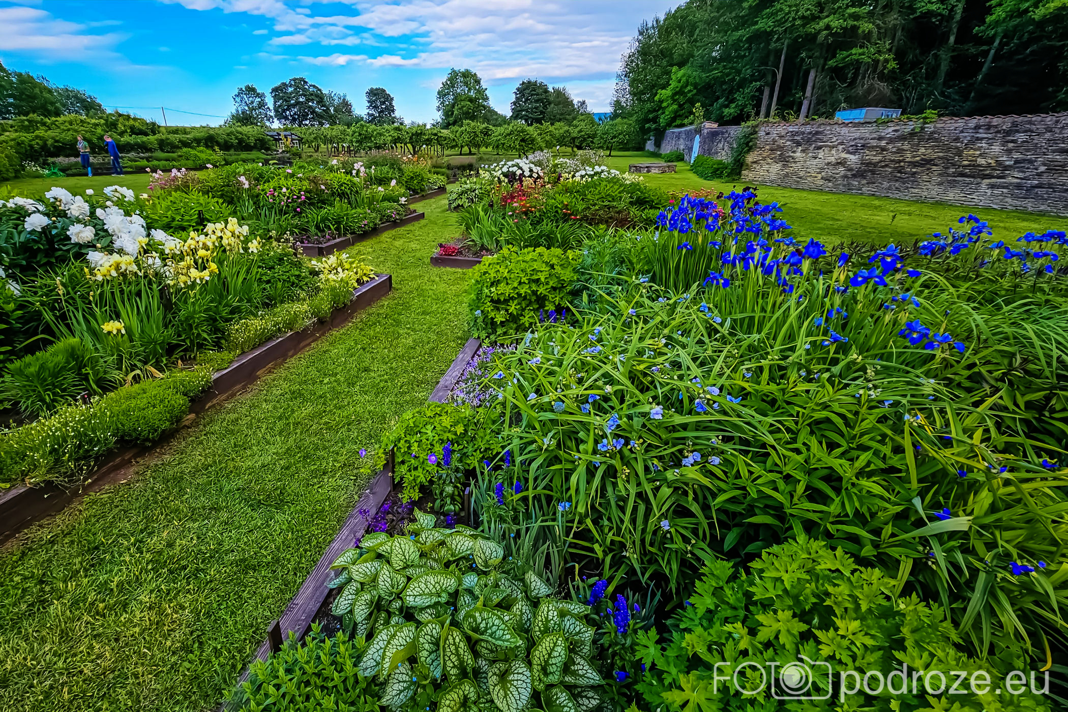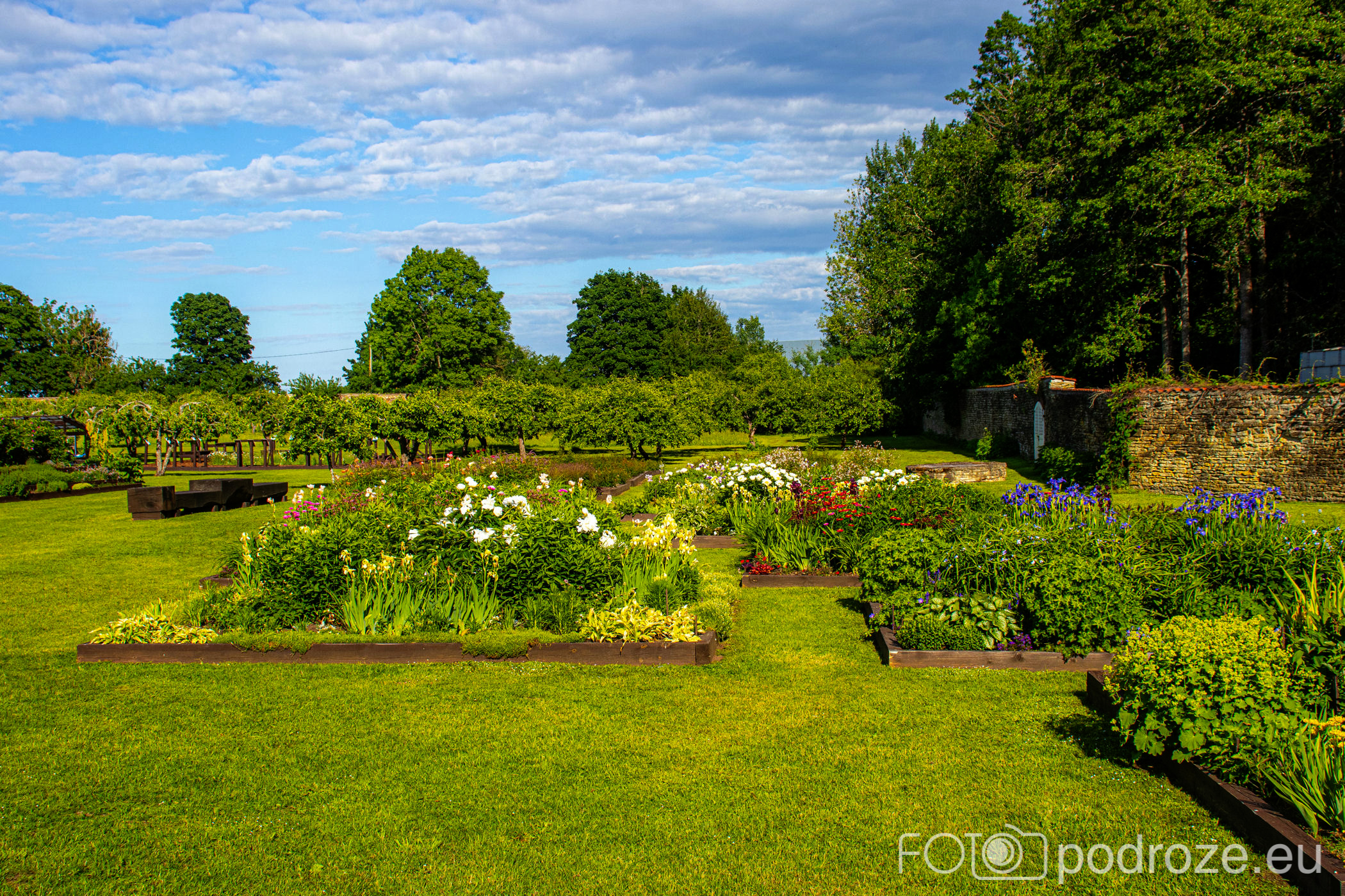 Przez boczną bramkę między budynkami przechodzimy do ogrodów. Piękne, zadbane z wieloma kwiatami i warzywami nie jest typowym ogrodem pałacowym.