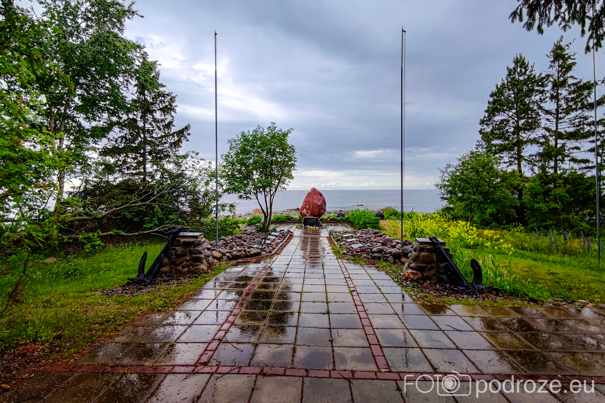 W to miejsce zajeżdżamy podczas ulewnego deszczu, dlatego nie będzie w galerii latarni morskiej do której już nikt z nas nie szedł. To miejsce jest ważne dla Estończyków i dlatego zależało im, aby nam je pokazać. Dno Zatoki Fińskiej na północ od półwyspu Juminda uważane jest za masowy grób statków i jednostek pływających. Podobno w tym rejonie zaginęło w morzu aż 15 tysięcy osób. W 2001 roku decyzją prezydenta Estonii na przylądku odsłonięto pomnik poświęcony wydarzeniom sierpnia 1941 roku. Granitowy głaz, tablice pamiątkowe, miny morskie i data wyryta na kamieniu wzywają, aby nie zapomnieć o ofiarach II wojny światowej.