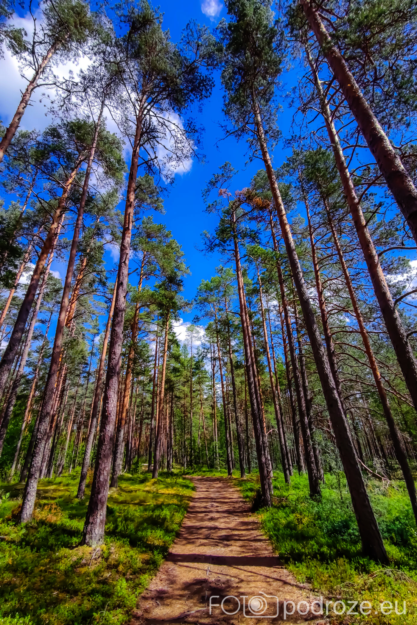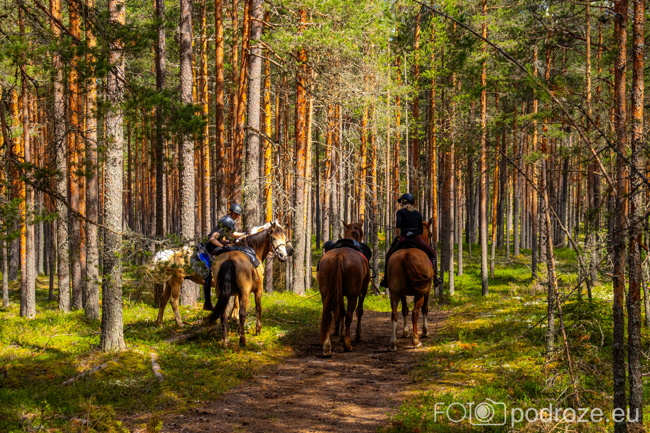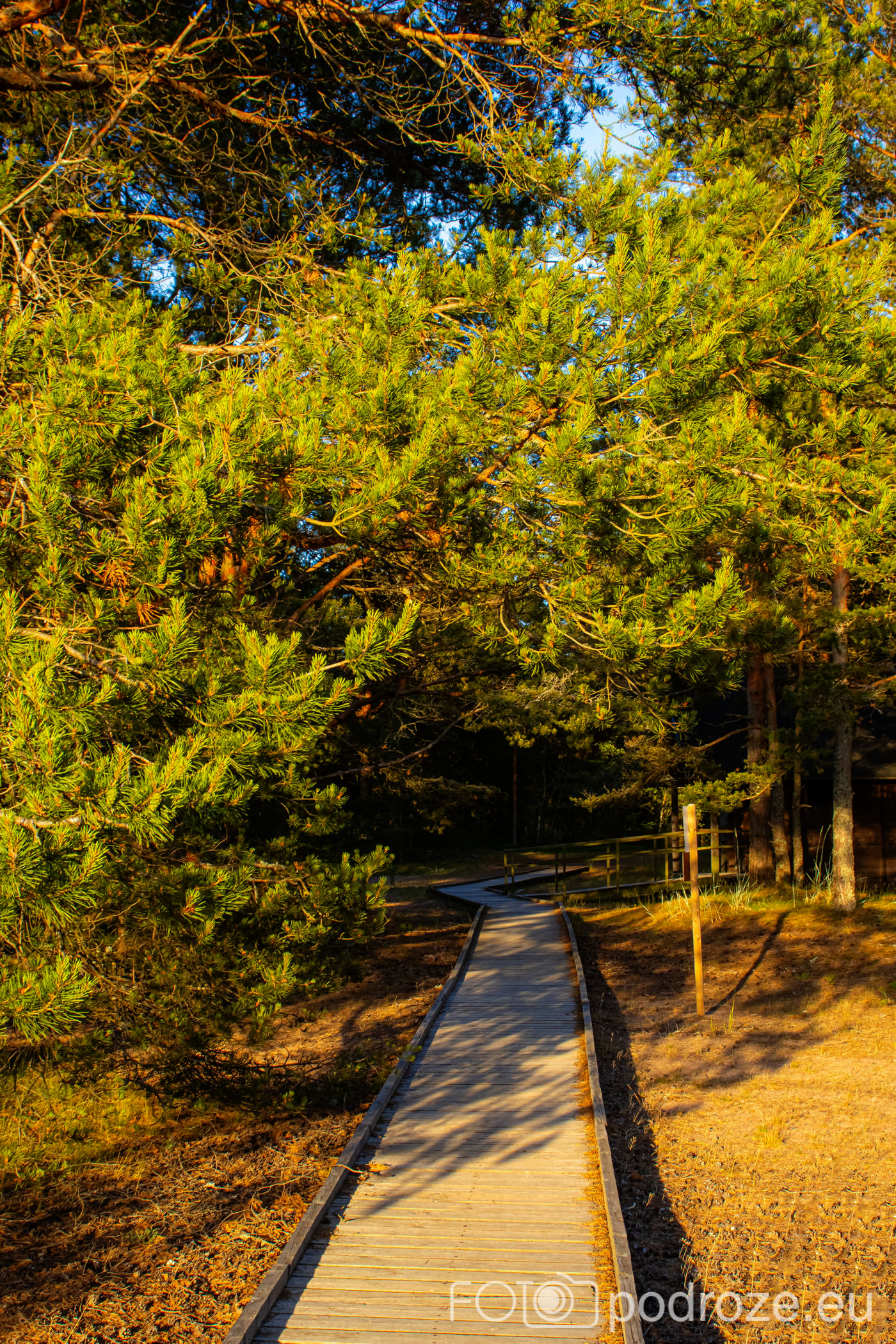 Parkujemy samochód na dużym darmowym parkingu z toaletami i ruszamy na szlak. My zaczynamy od lewej strony i idziemy na początku urokliwą drogą przez las sosnowy. Po za nami i kilkoma osobami na koniach nie ma tu nikogo. Wszyscy wolą iść szlakiem przez bagna i tym samym wracać.