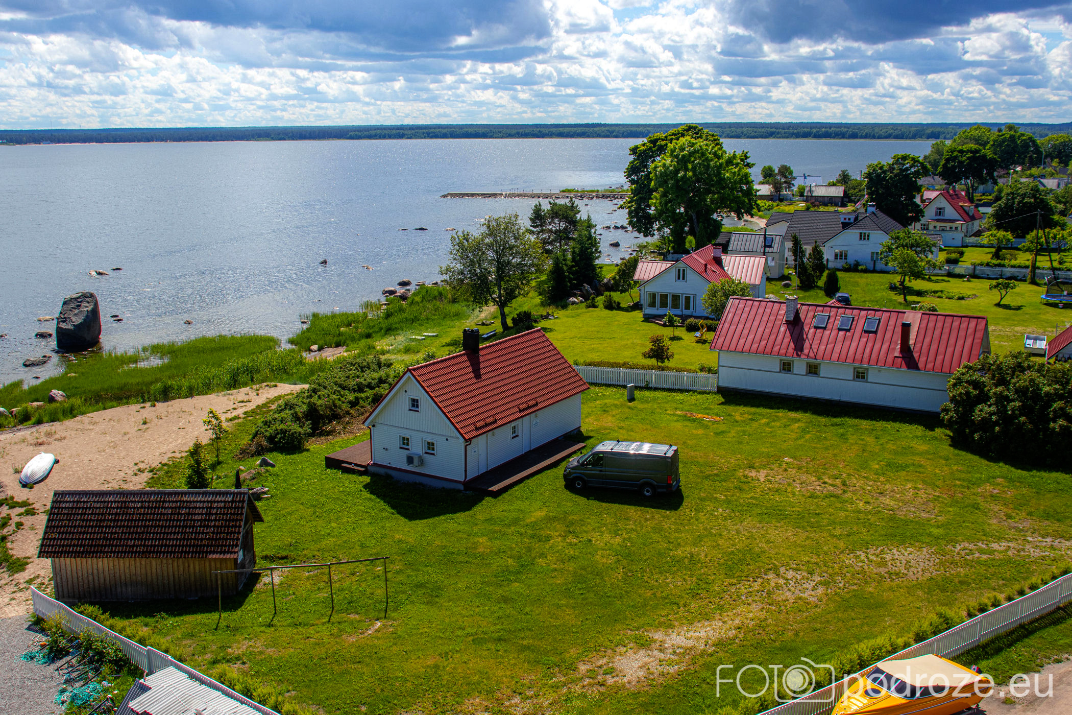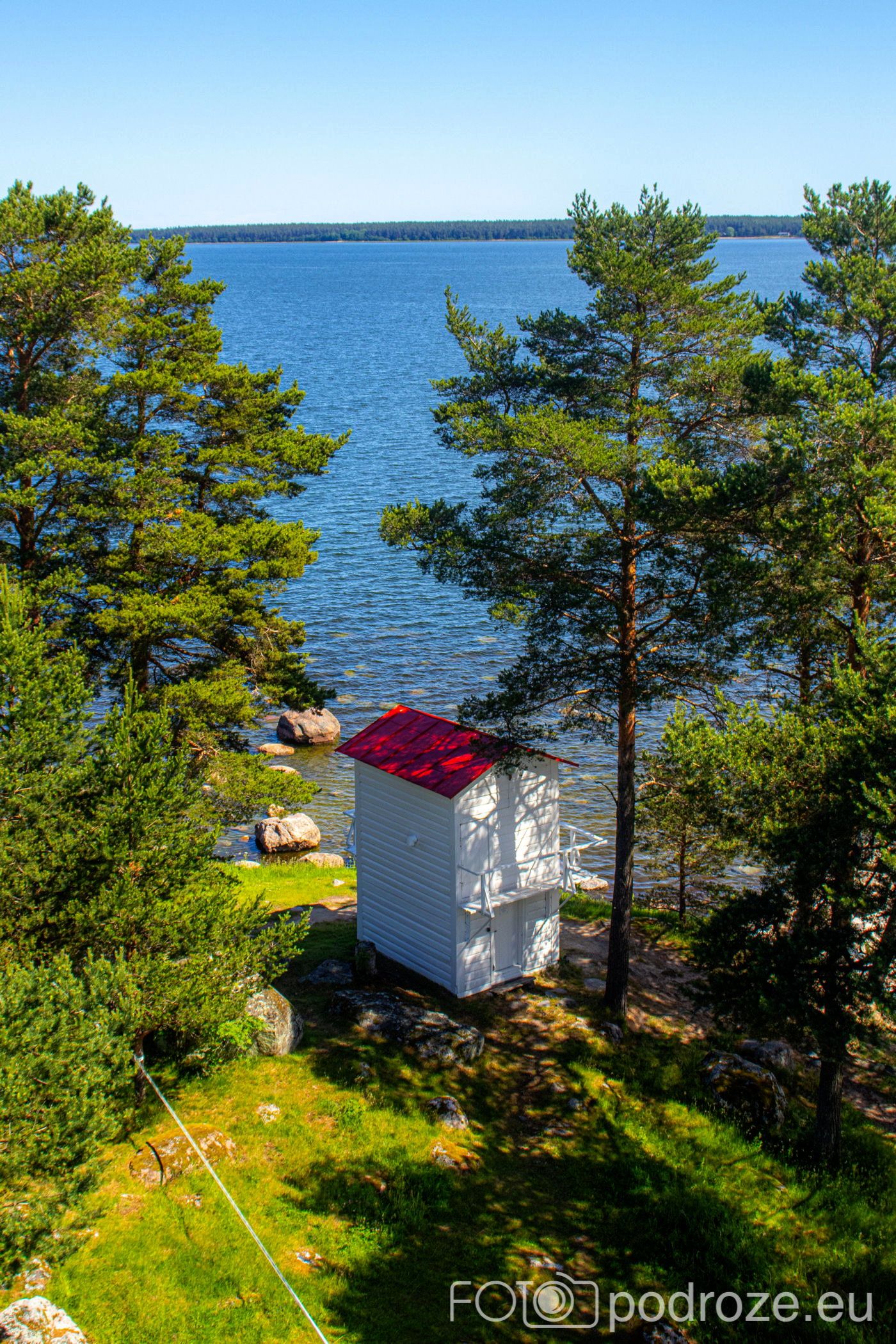 Jedziemy dalej wzdłuż wybrzeża. Na południu zatoki Eru laht znajduje się niepozorna wieża widokowa pośrodku niczego. Zapewne gniazdują tu jakieś ptaki, ale nie udało się nam ich dojrzeć. W oddali tylko troszkę łabędzi i pasące się krowy.