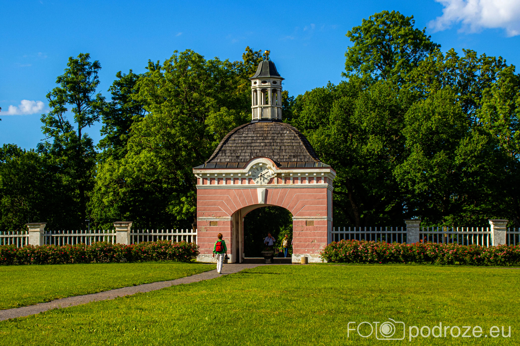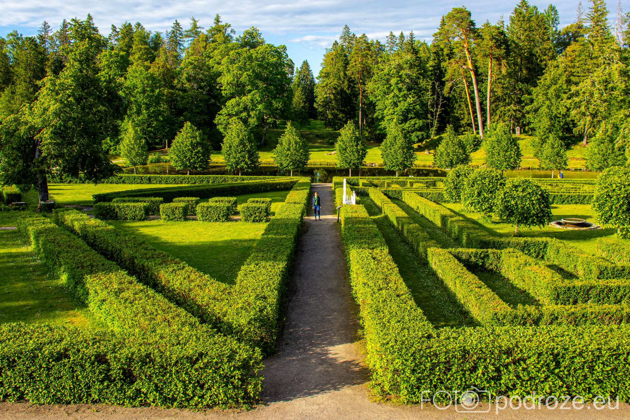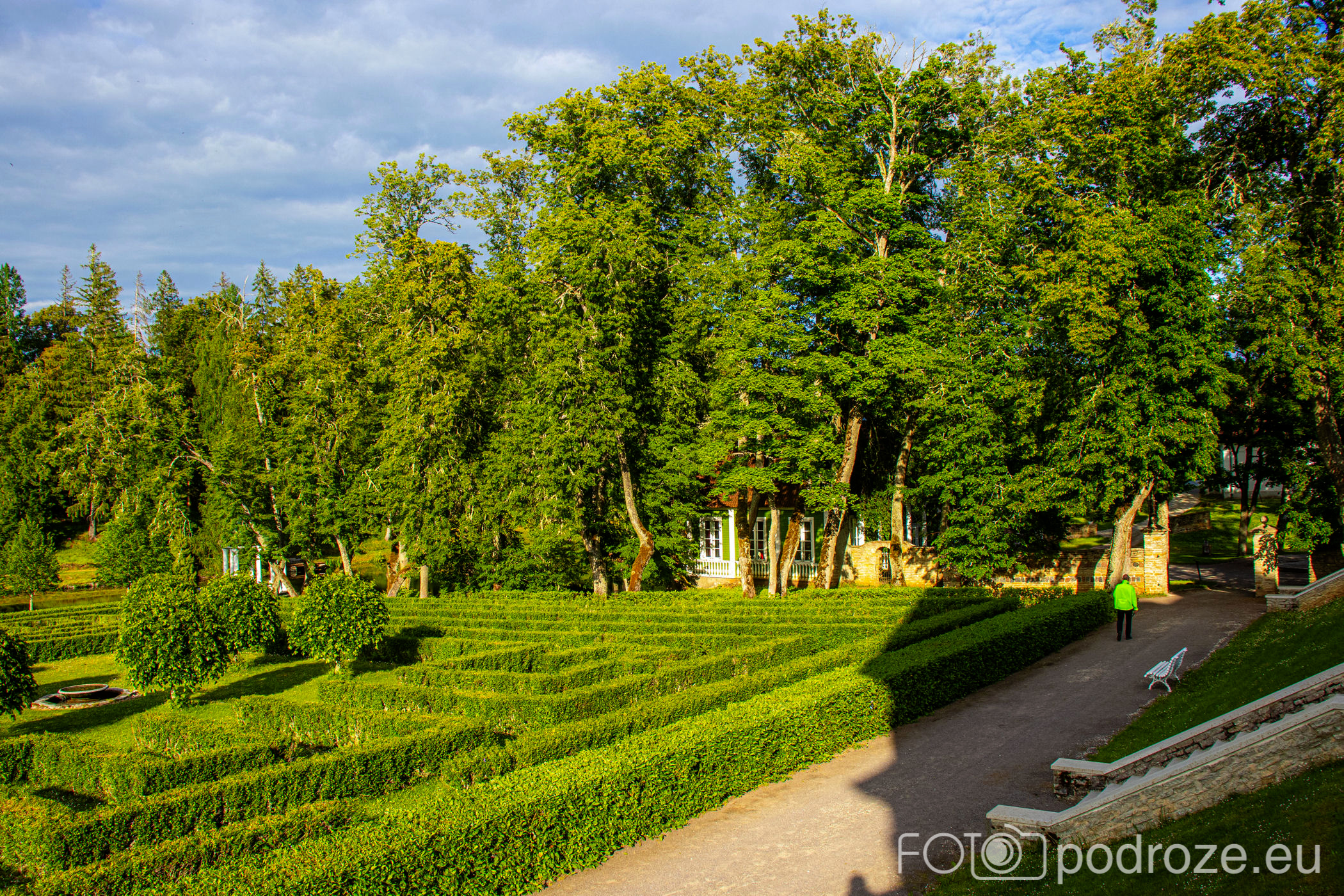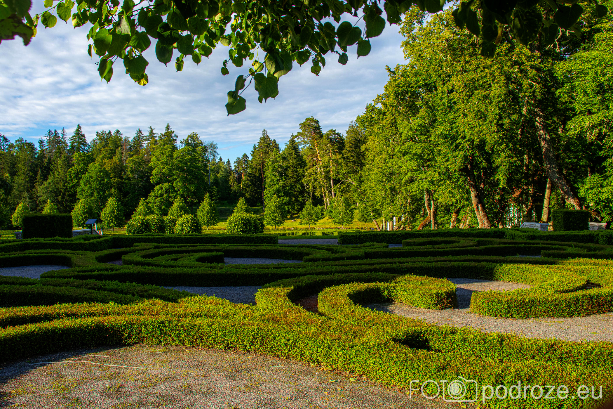 Urokliwa budowla pałacyku sąsiaduje z wyjątkowo pięknymi i zadbanymi ogrodami. Park założono w stylu francuskim, a zaprojektowany w stylu angielskim ma w sumie powierzchnię 18 hektarów oraz niemal 60 kilometrów ścieżek spacerowych. My obchodzimy tylko mały fragment terenu.