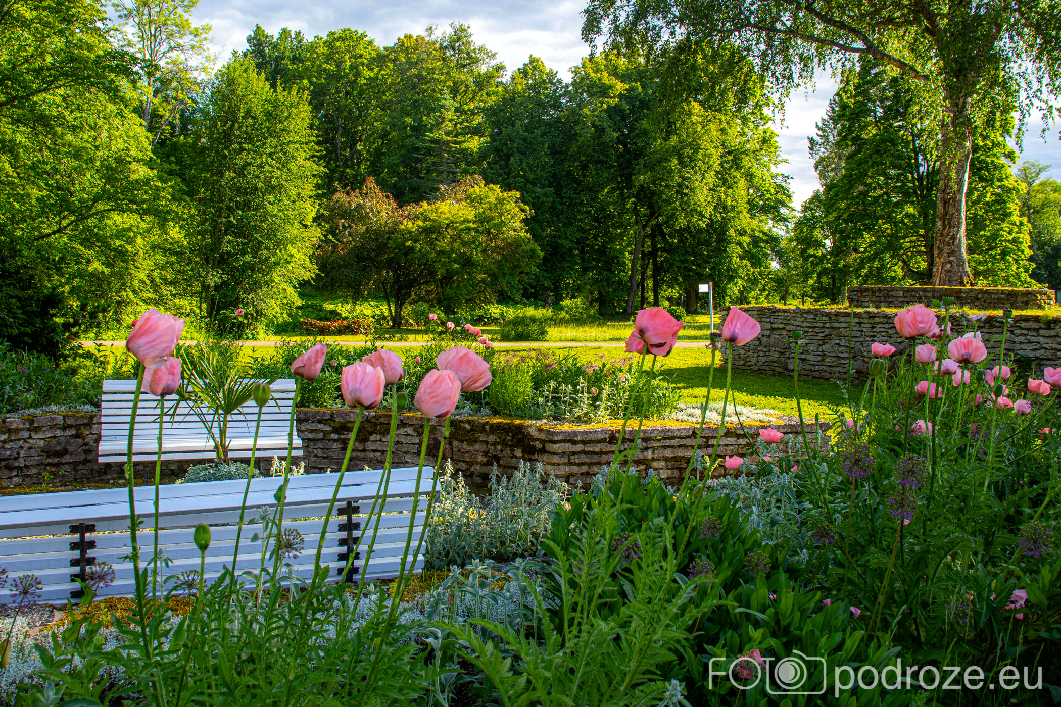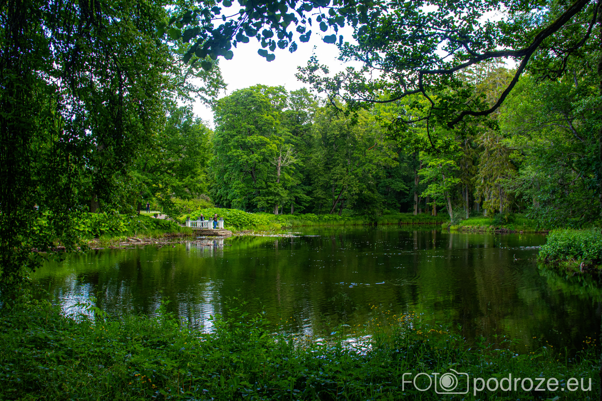 Tu za pałacem znajdują się też inne ogrody parkowe z małym stawem i ciekawą ławką, którą nazwaliśmy „ławka dla rozwodników”