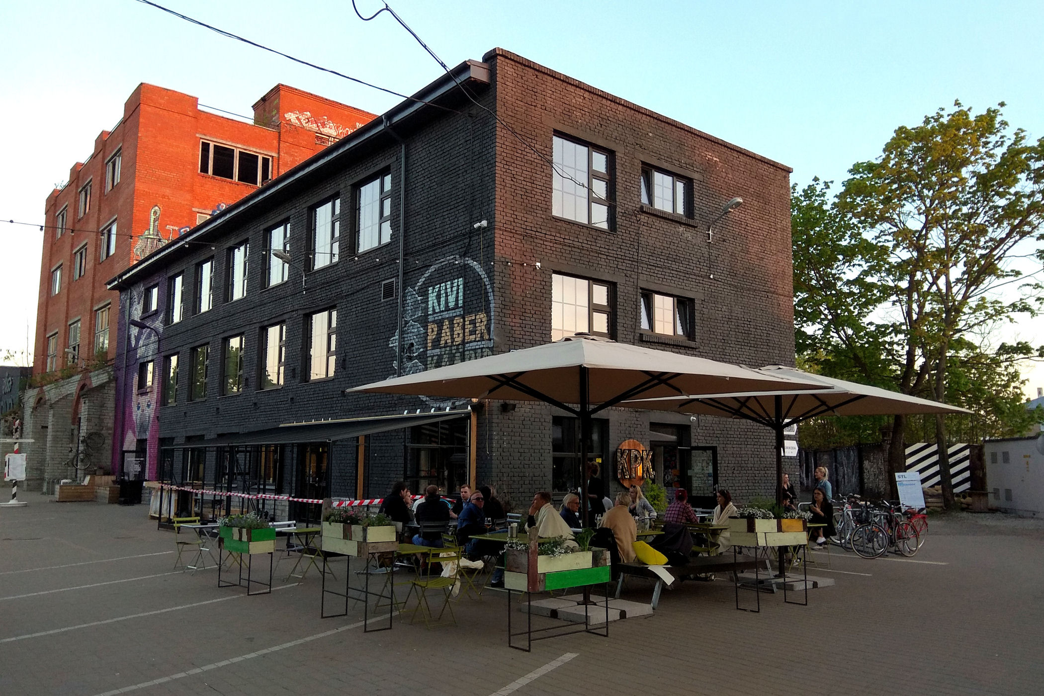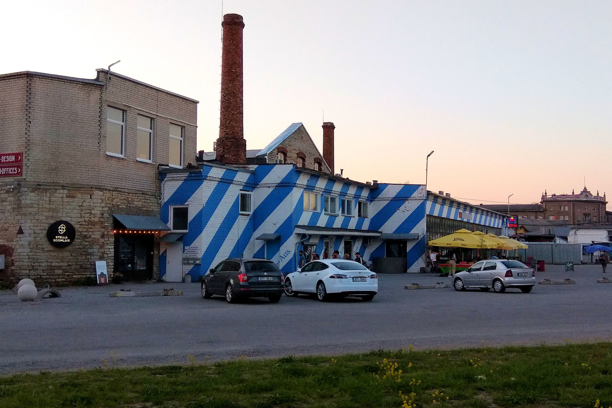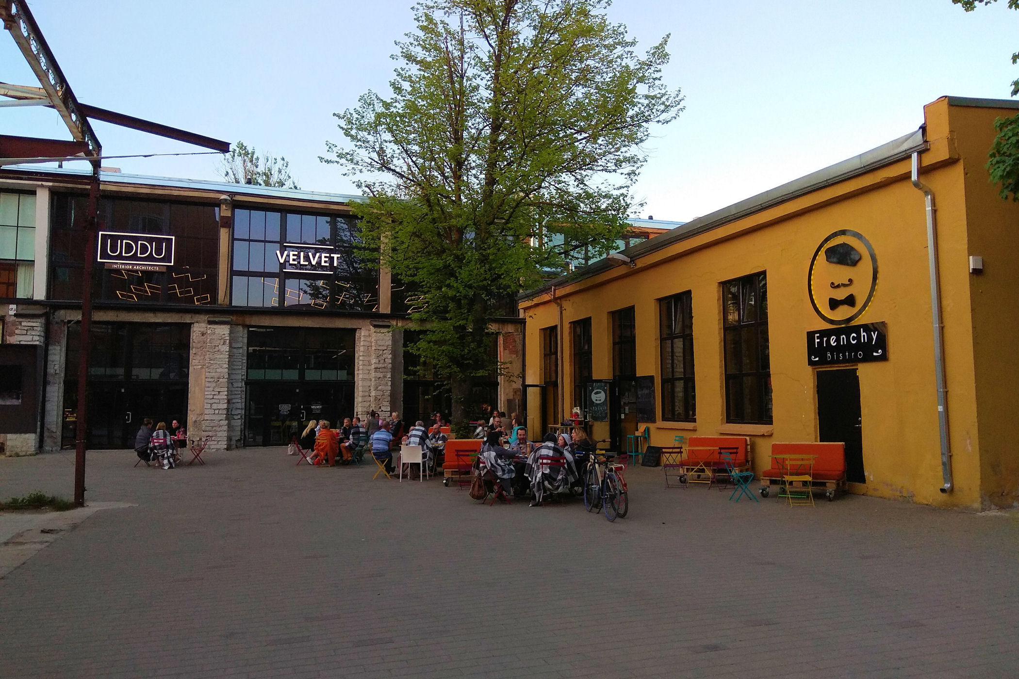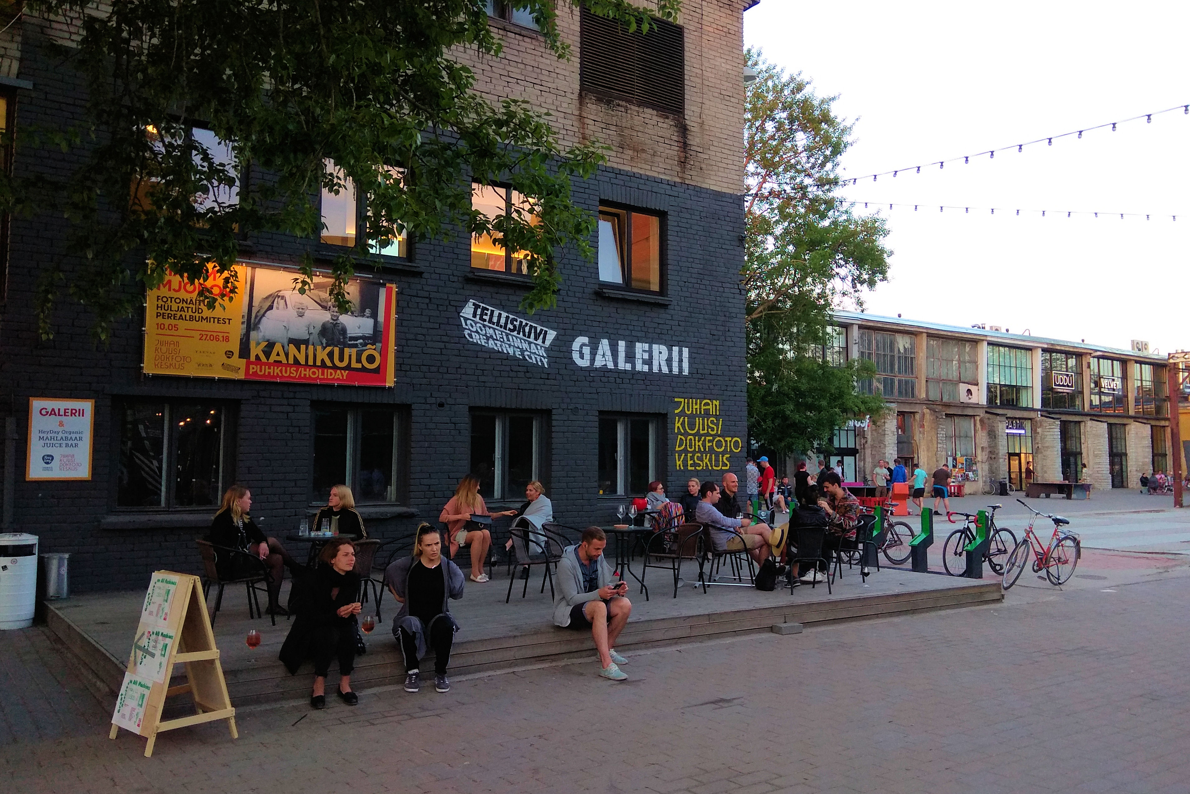 W południowej części naszej opisywanej Dzielnicy Kalamaja w trójkącie pomiędzy torami, znajduje się zaskakujące miejsce – Telliskivi Creative City. To dzielnica miasta z hangarami fabrycznymi po byłych zakładach kolejowych obecnie będąca pewnego rodzaju eksperymentem. Poindustrialne obiekty przekształcane są bowiem z centrum sztuki, miejsce kultury i najbardziej „dizajnerskie” miejsce w mieście z ciekawymi kawiarniami i restauracjami ( w tym jednej w starych wagonach kolejowych ). Organizowane są tu koncerty, różnego rodzaju eventy artystyczne oraz zajęcia sportowe. Pewnie nigdy byśmy tu nie zajrzeli, gdyby nie goszczący nas Estończycy, którzy zorganizowali tu spotkanie. A warto, bo miejsce na prawdę zaskakujące