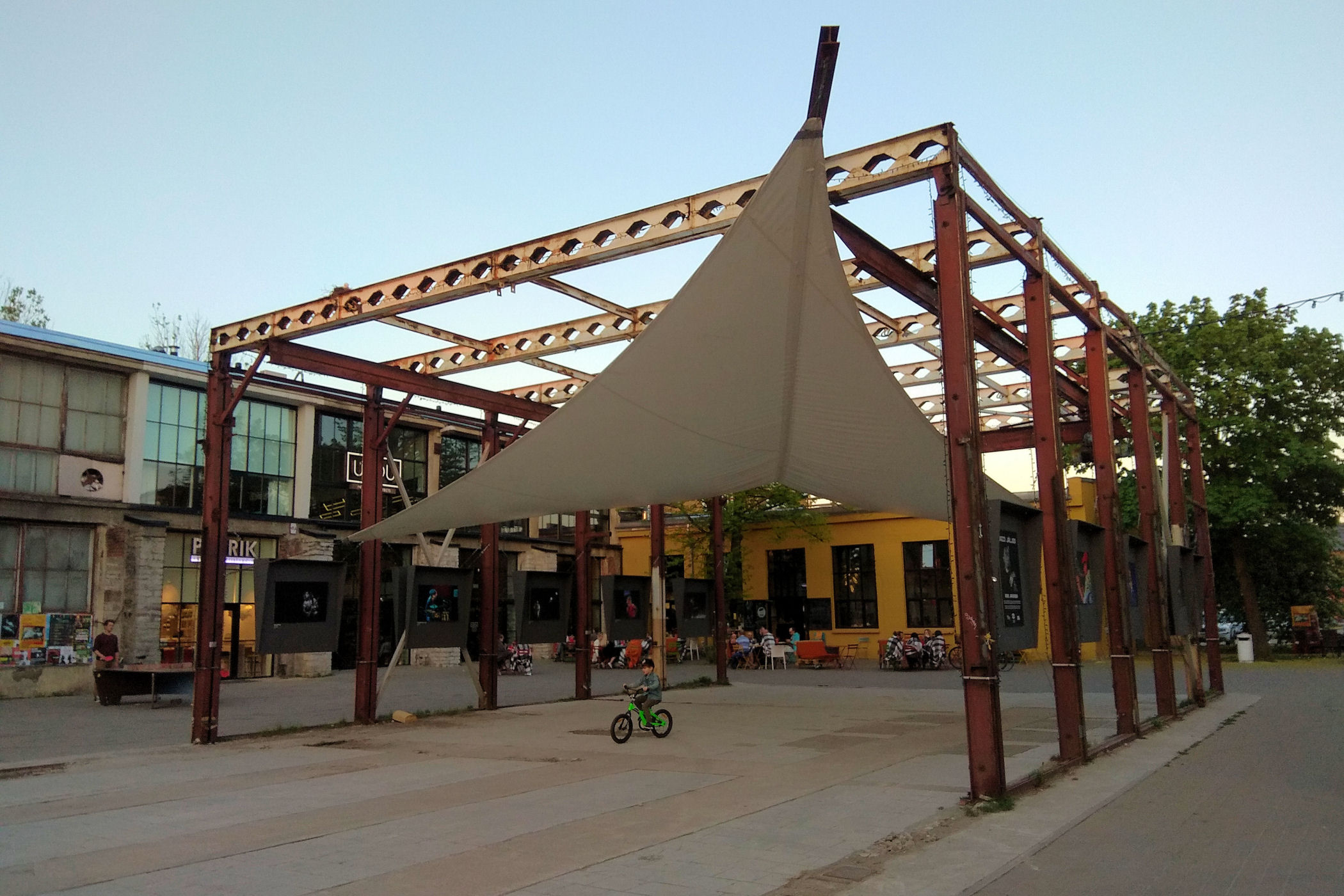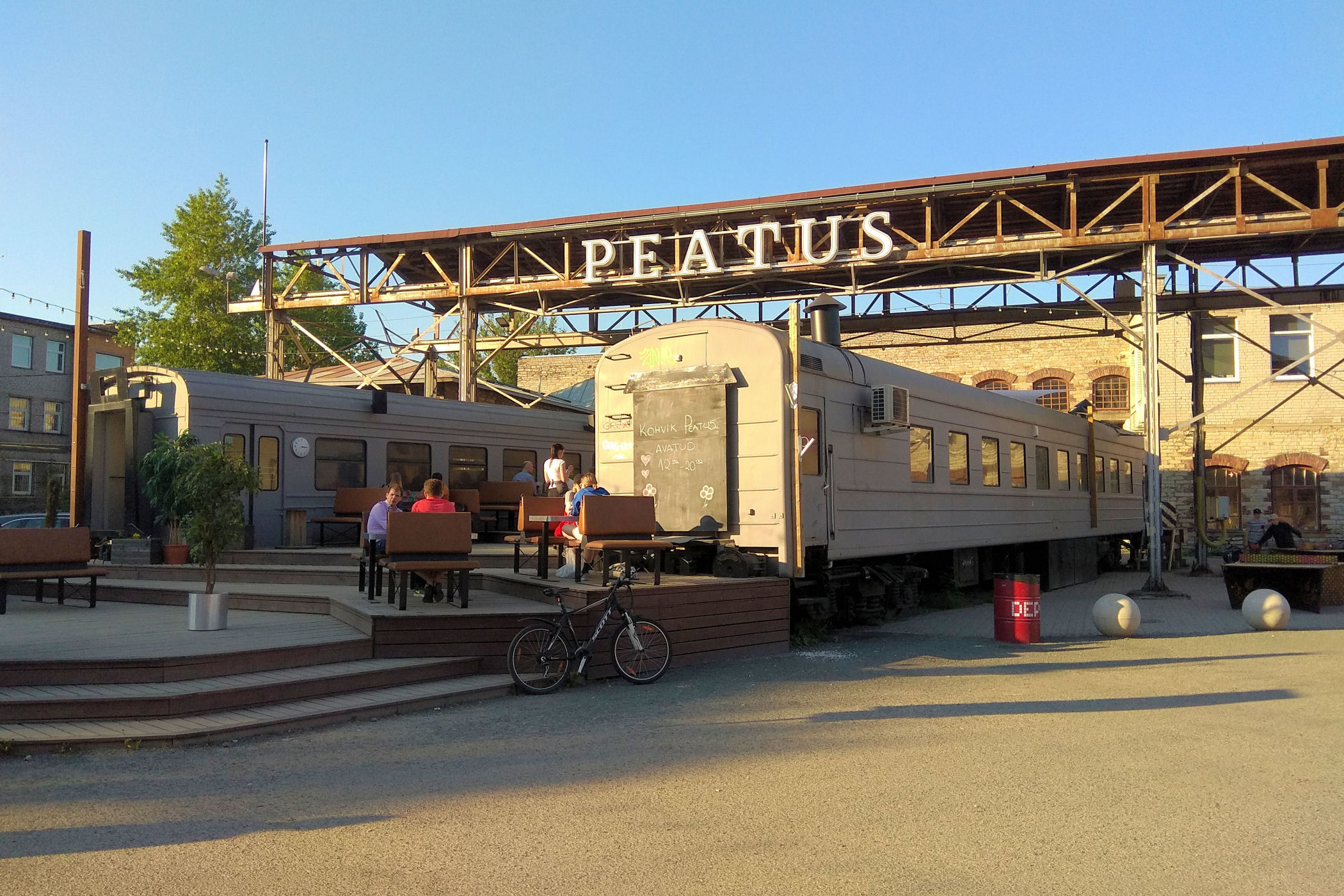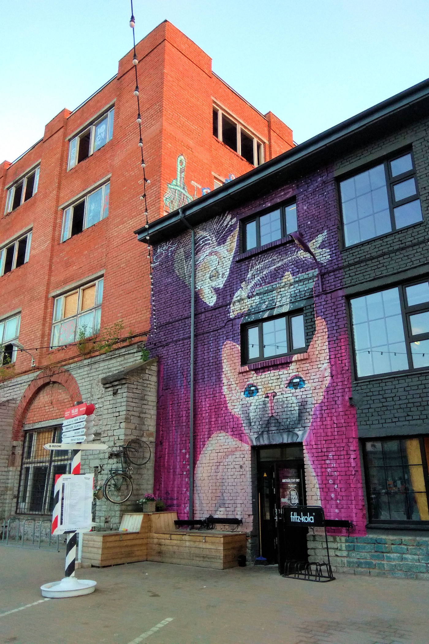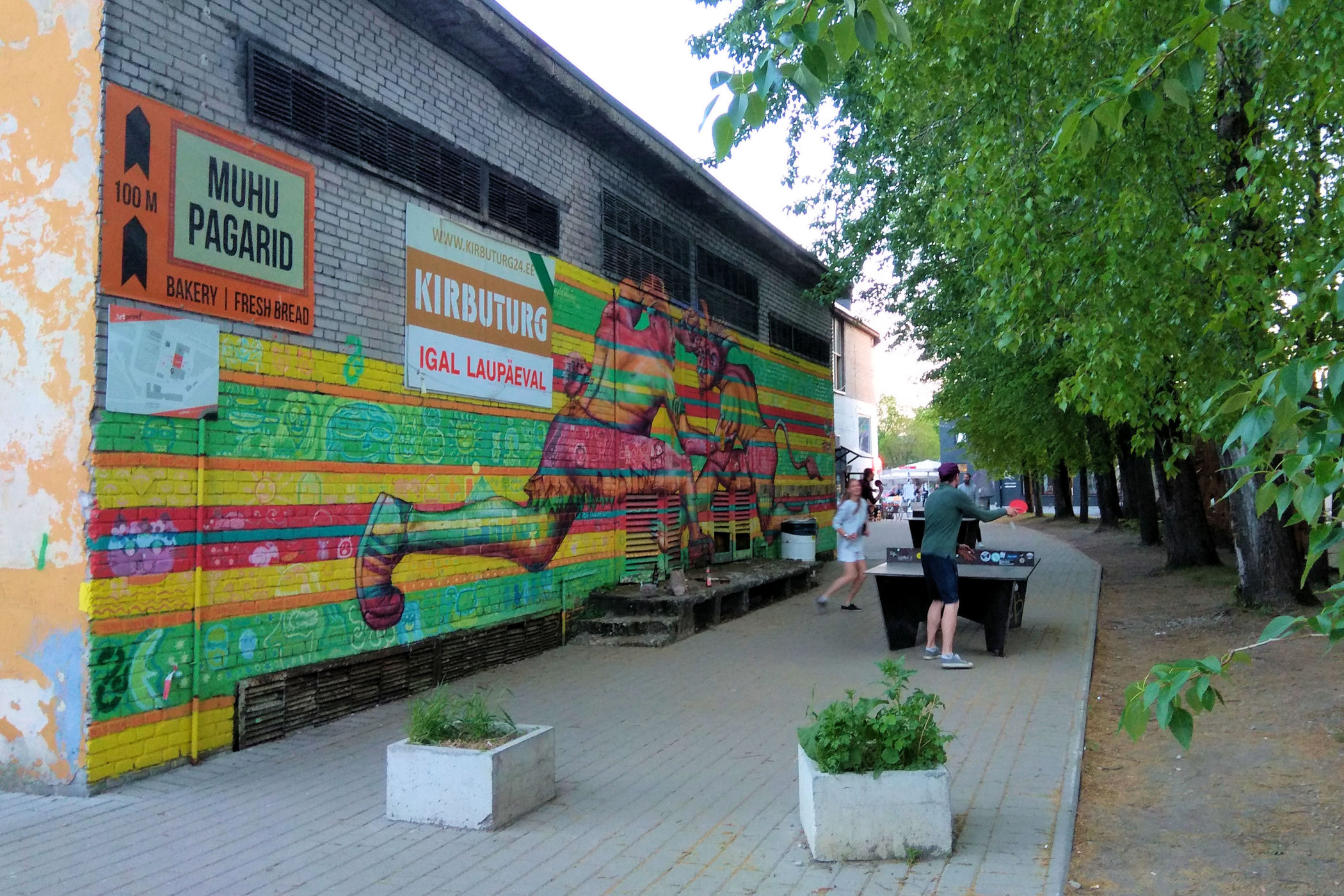 W południowej części naszej opisywanej Dzielnicy Kalamaja w trójkącie pomiędzy torami, znajduje się zaskakujące miejsce – Telliskivi Creative City. To dzielnica miasta z hangarami fabrycznymi po byłych zakładach kolejowych obecnie będąca pewnego rodzaju eksperymentem. Poindustrialne obiekty przekształcane są bowiem z centrum sztuki, miejsce kultury i najbardziej „dizajnerskie” miejsce w mieście z ciekawymi kawiarniami i restauracjami ( w tym jednej w starych wagonach kolejowych ). Organizowane są tu koncerty, różnego rodzaju eventy artystyczne oraz zajęcia sportowe. Pewnie nigdy byśmy tu nie zajrzeli, gdyby nie goszczący nas Estończycy, którzy zorganizowali tu spotkanie. A warto, bo miejsce na prawdę zaskakujące