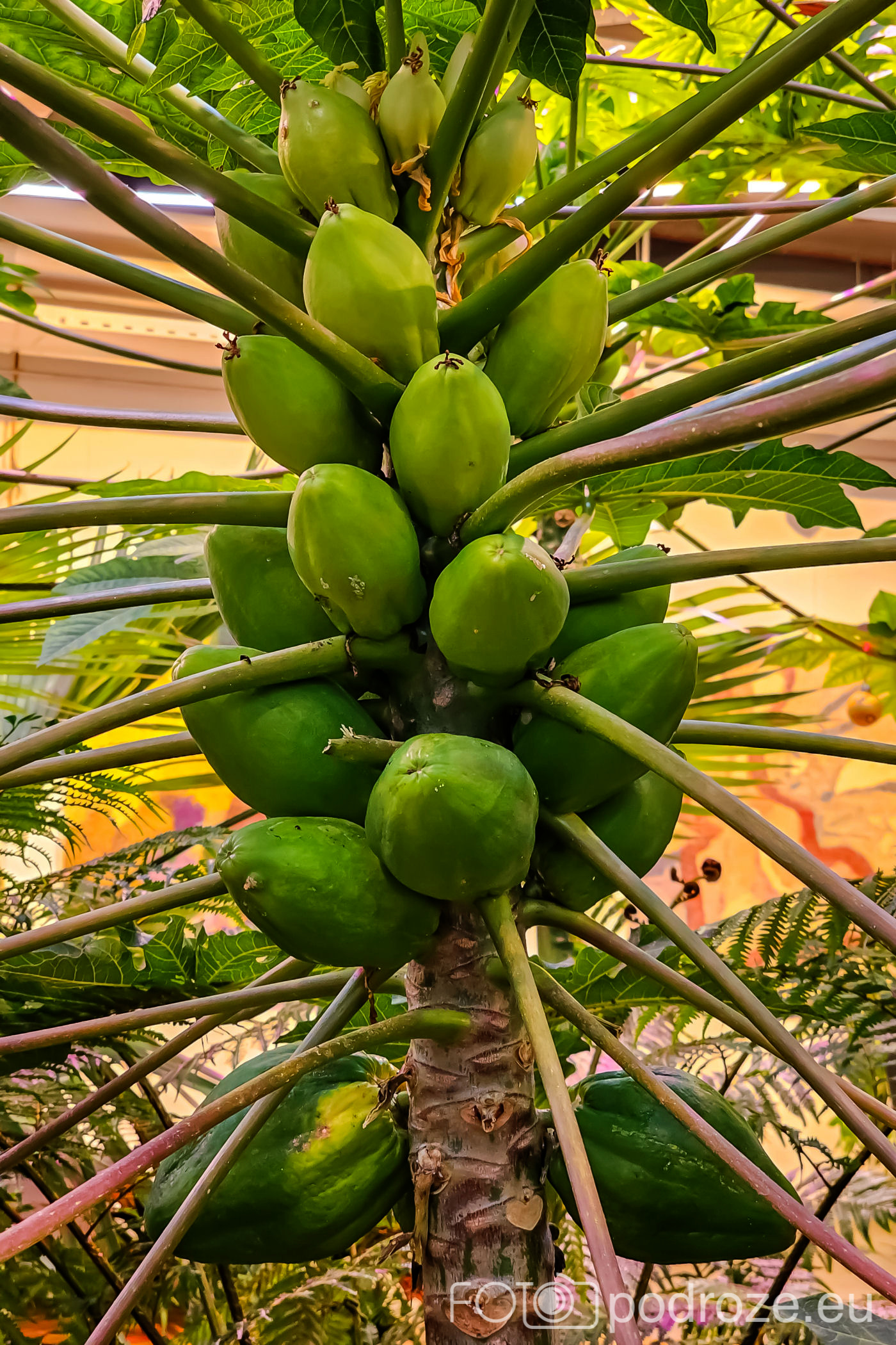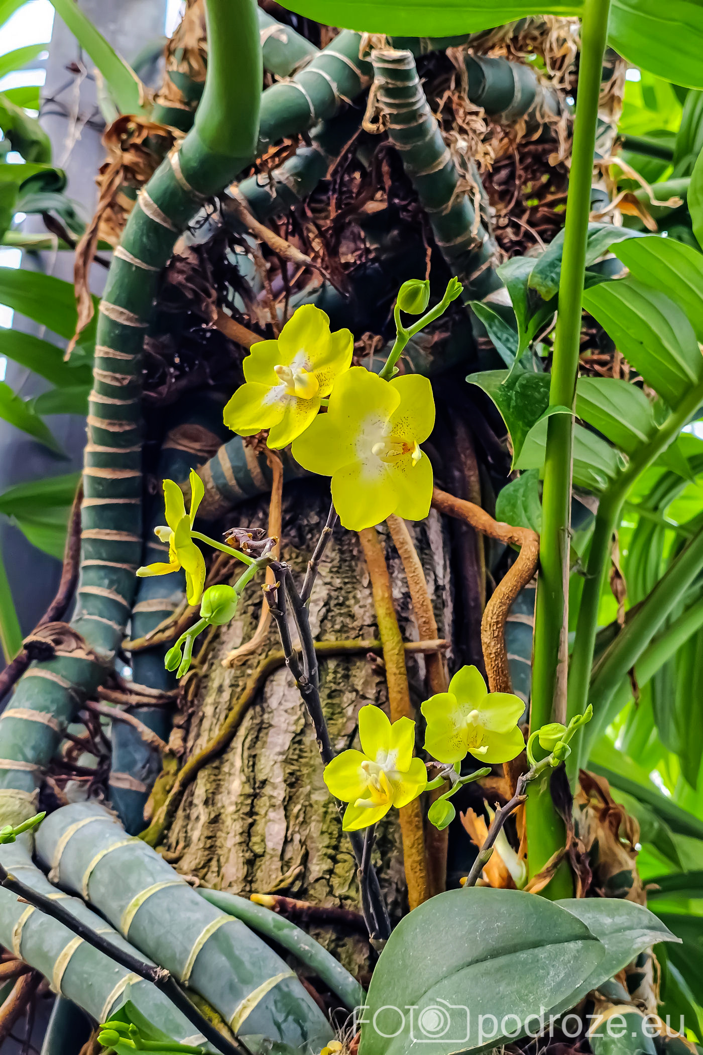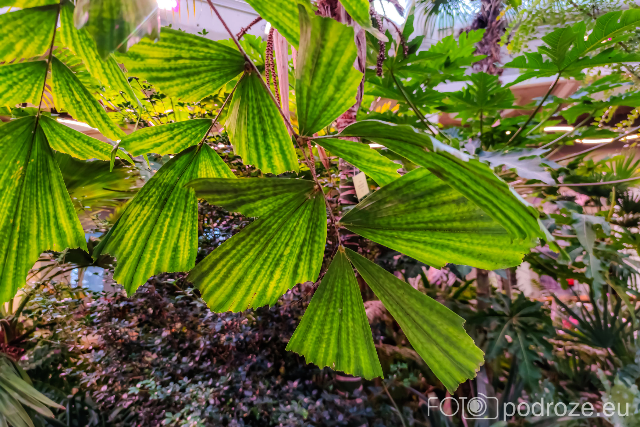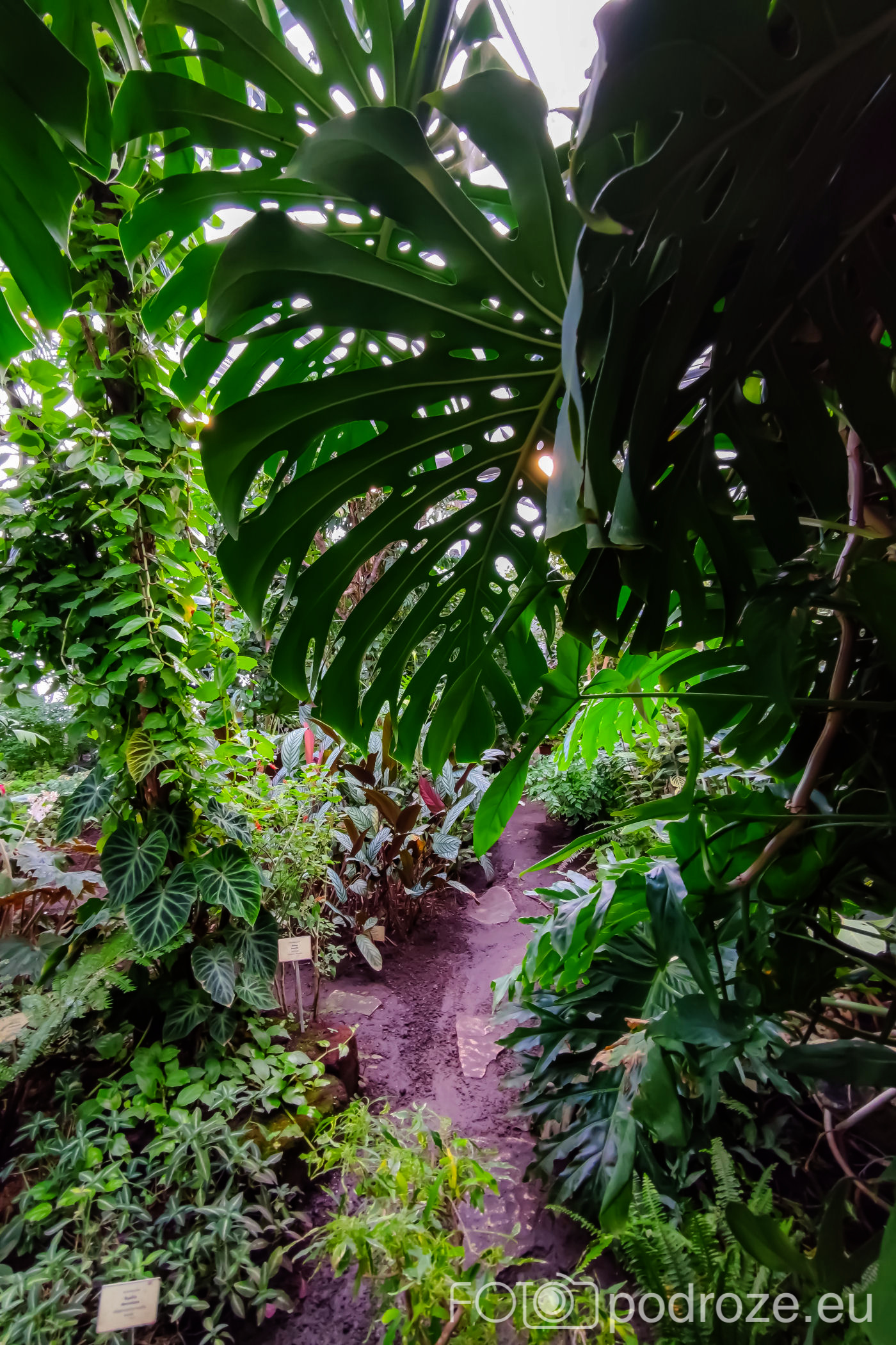 Wnętrza składają się z kilku różnych części. Zaczynamy od części środkowej, najwyższej gdzie znajduje się szatnia, kafeja i oczywiście pierwsze rośliny. Są tu też schodki z małą antresolą i widokiem na palmy od góry. Są też wejścia do kilku osobnych pomieszczeń w których na bieżąco odbywają się różne warsztaty.
