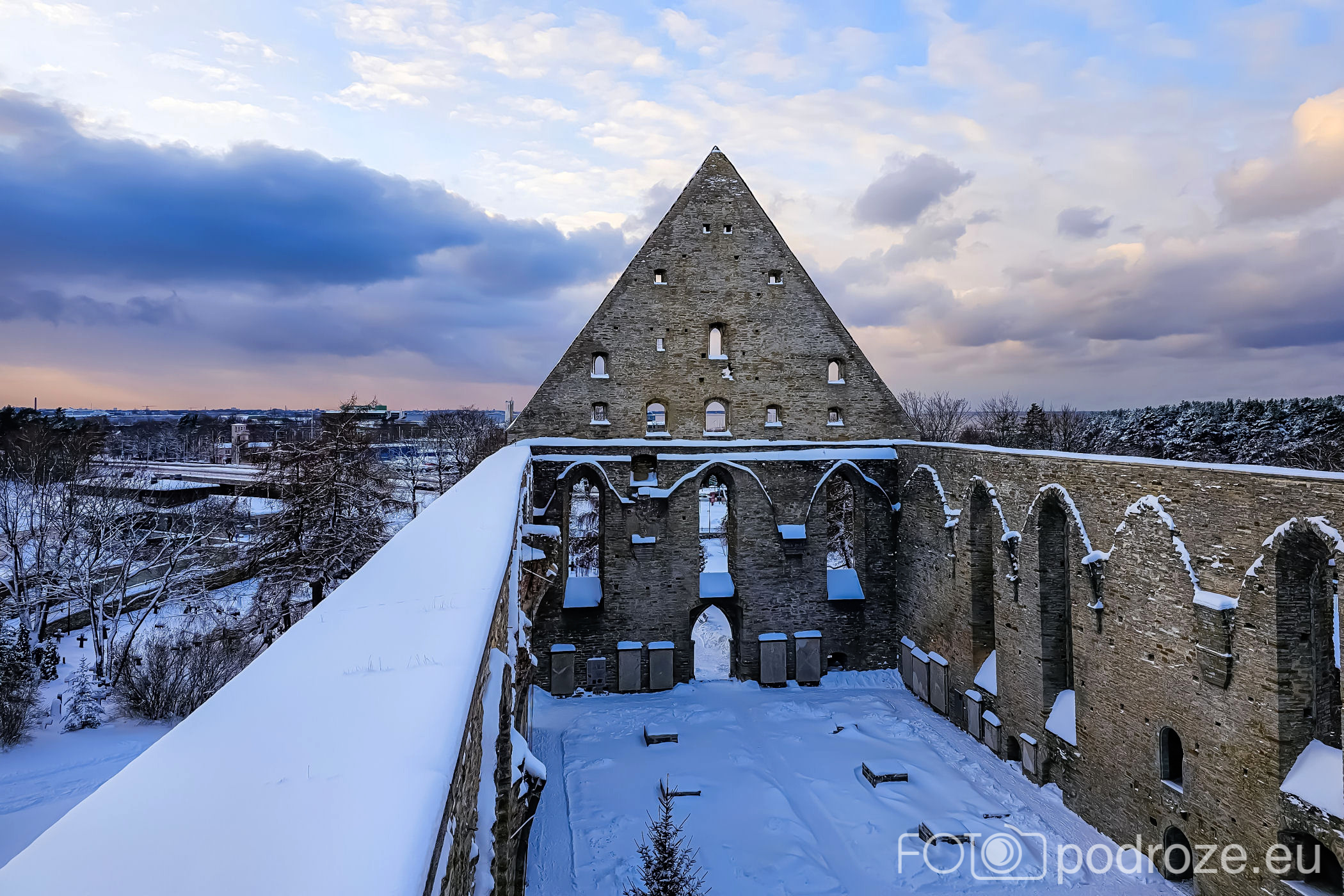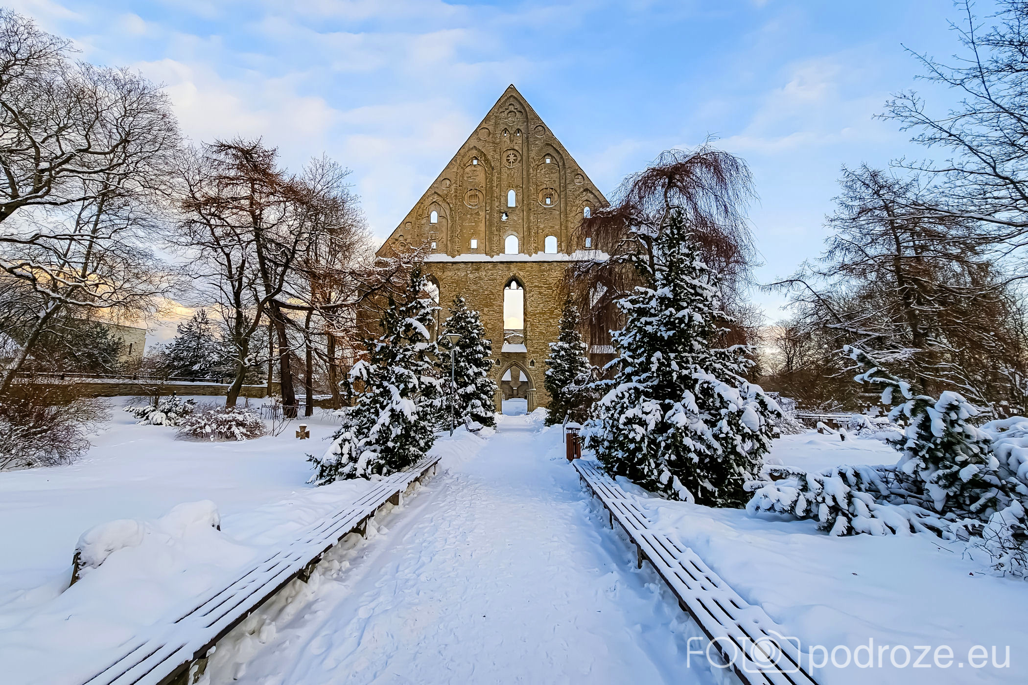 Zanim powędrujemy promenadą w kierunku morza zatrzymujemy się przed bramą ruin Klasztoru Piryta. Niestety wieczorem obiekt jest już zamknięty (czynne do 19.00). Za bramą widzimy ruiny Kościoła Katolickiego i klasztor zgromadzenia Brygidek. Jako ciekawostkę dodam, że w klasztorze znajduje się pensjonat prowadzony przez siostry, można więc tu zostać na dłużej.