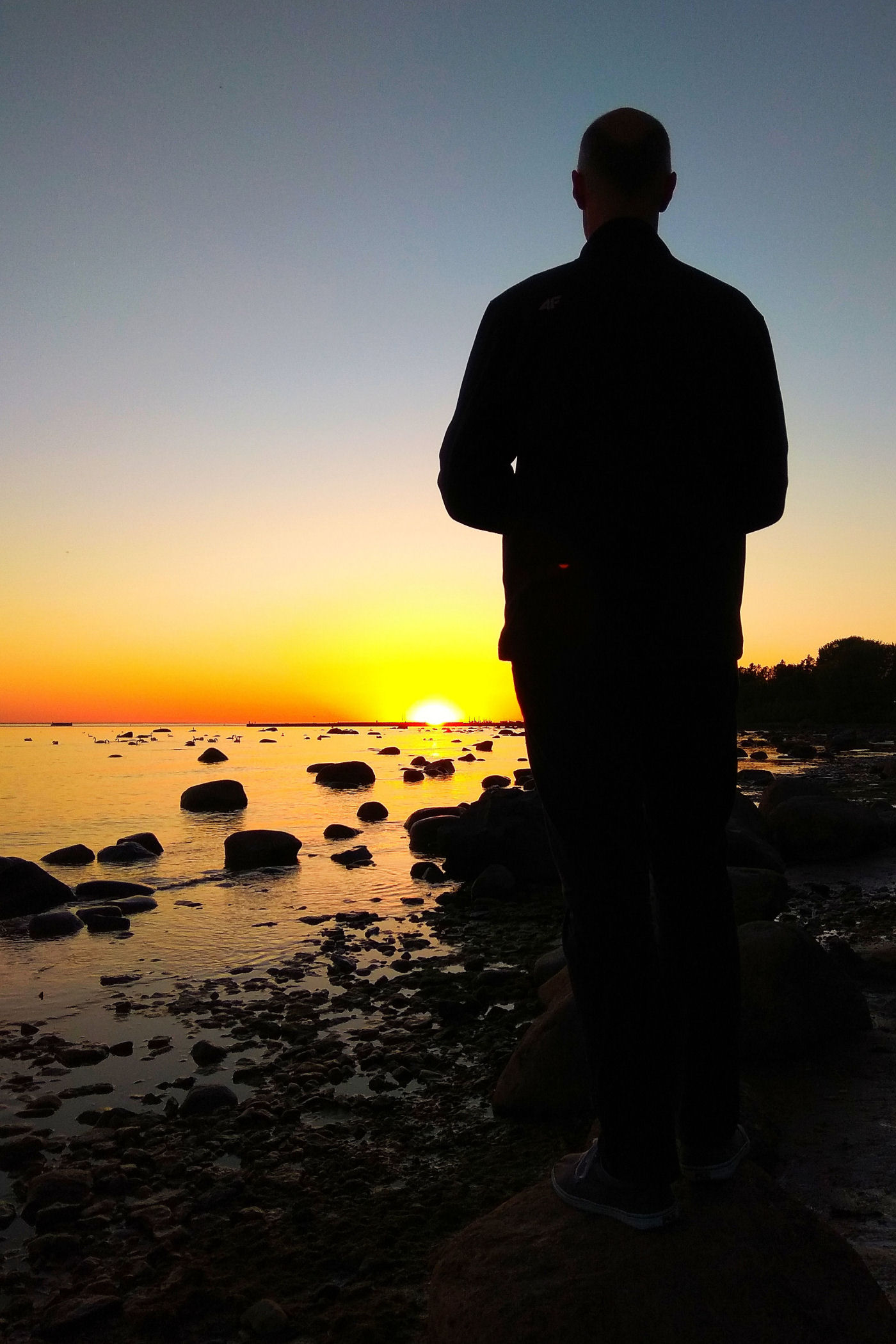 Na sama końcówkę zachodu słońca koleżanka zabiera nas jeszcze kilometr dalej na północ do punktu widokowego zwanego Merivälja muul . Plaża jest tu dość wąska, za to malownicza ze względu na dużą ilość kamieni.