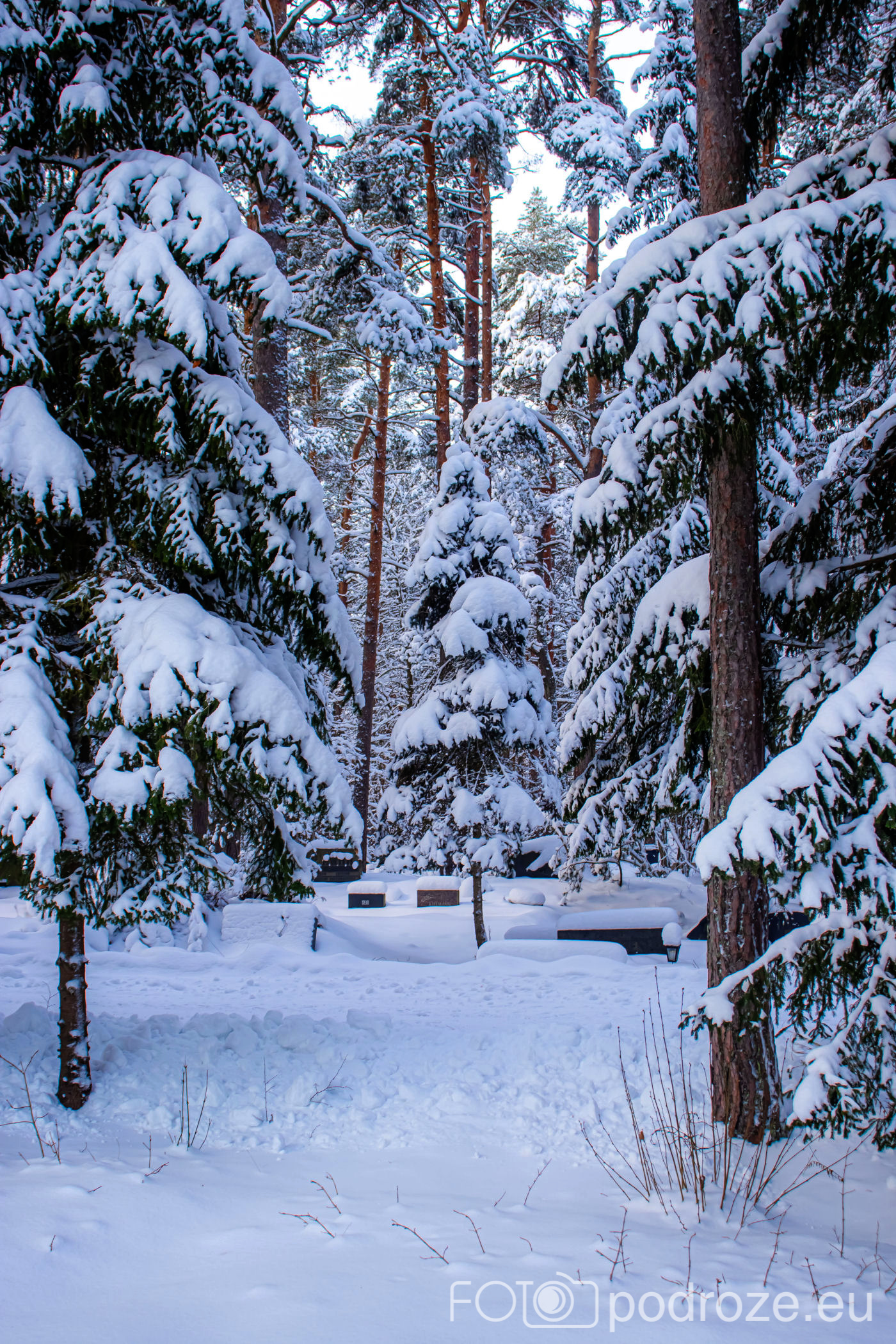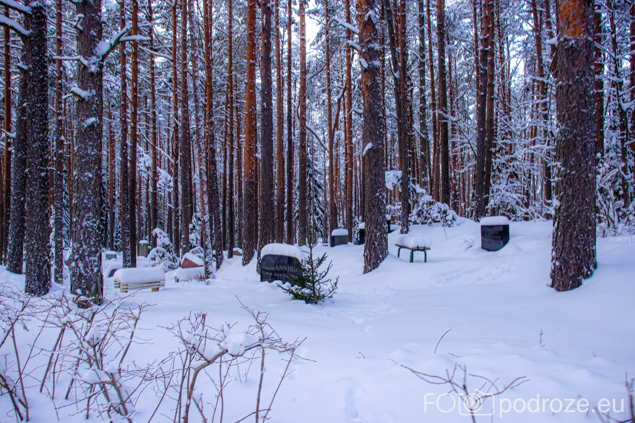 W oczekiwaniu na powrotny autobus do centrum Tallina wędrujemy jeszcze aleją ciągnąca się wzdłuż bajecznego lasu. W jego części znajduje się cmentarz. Jest tak ukryty w lesie, że dopiero po chwili można się zorientować, że się tam znajduje.