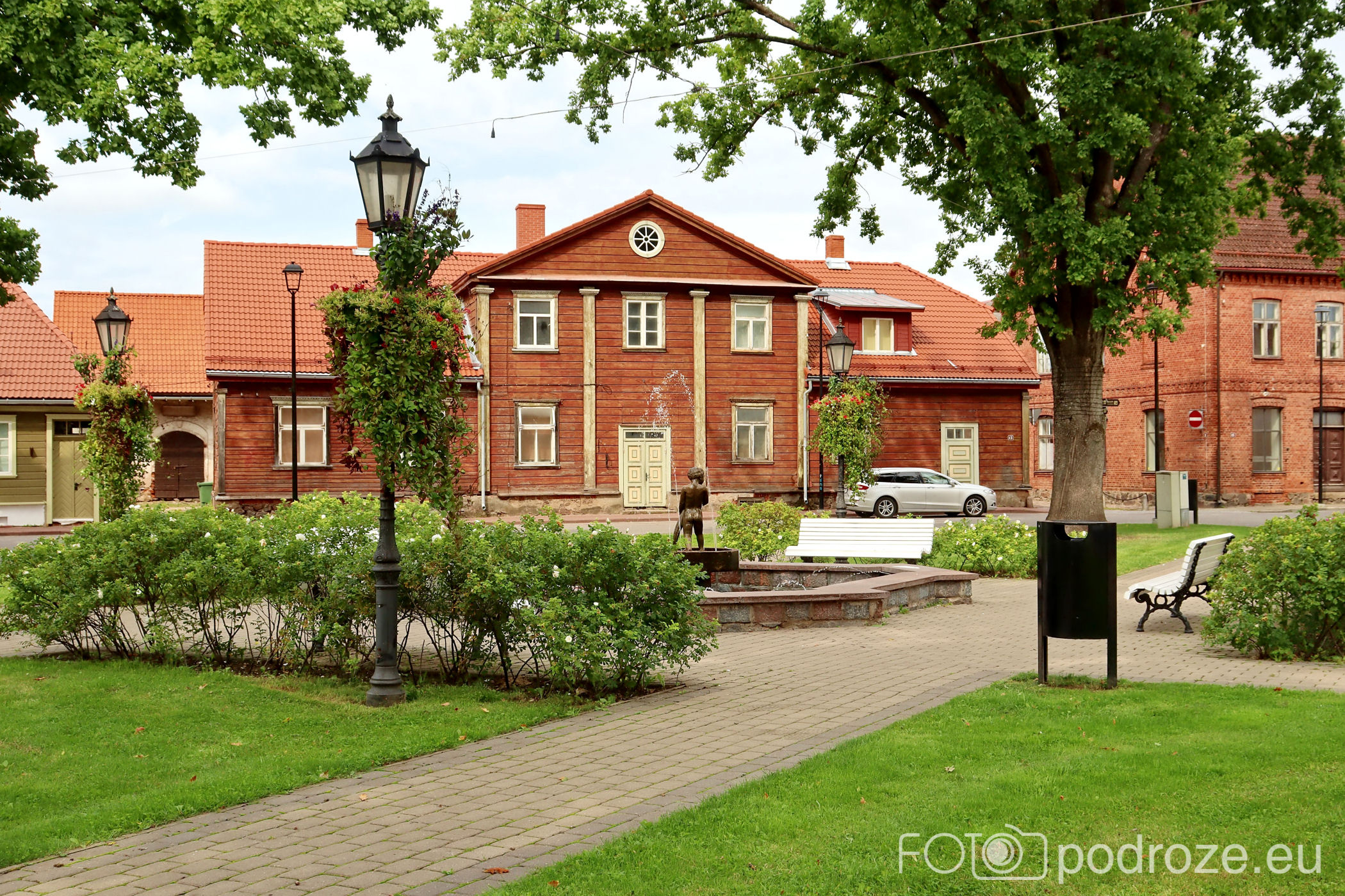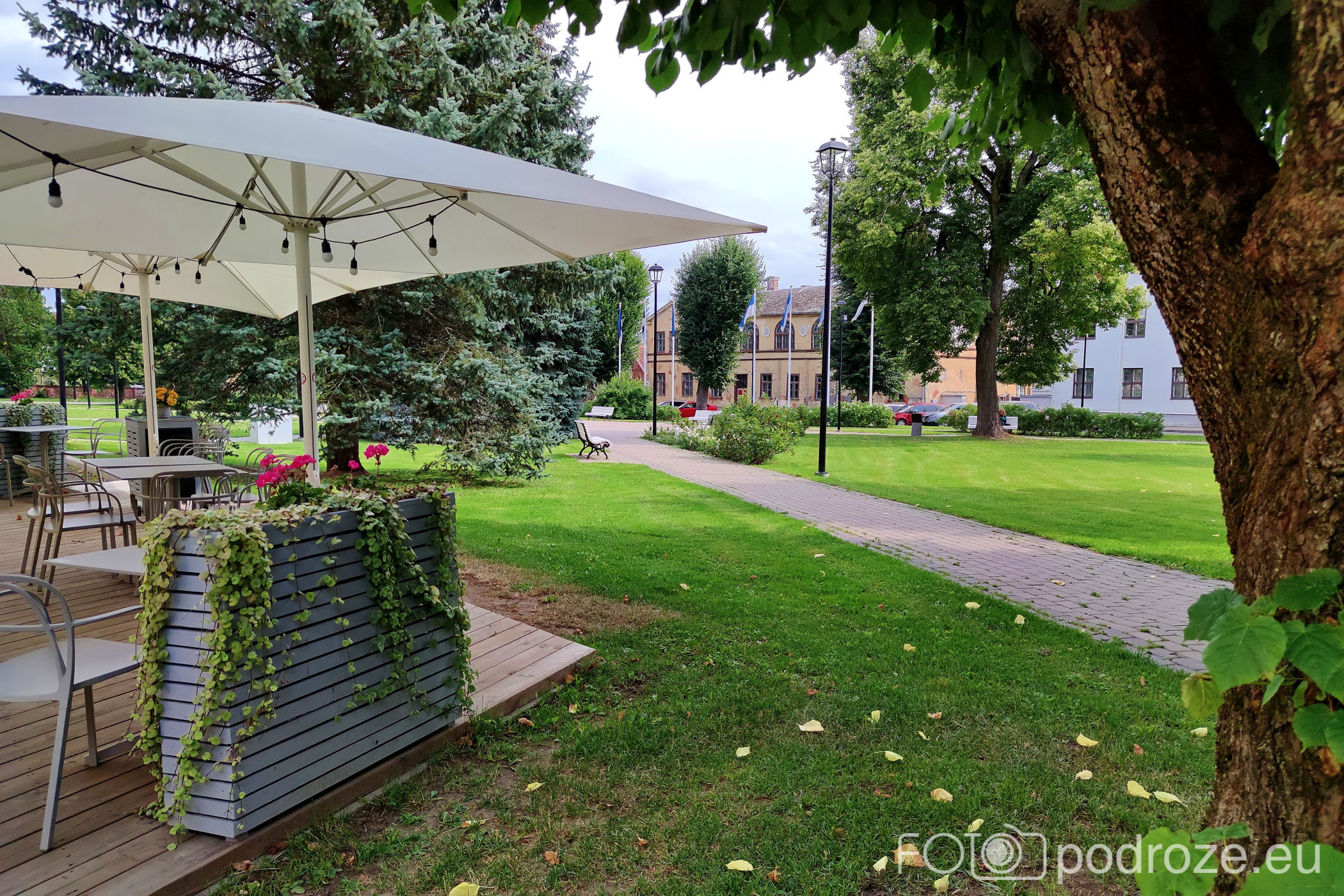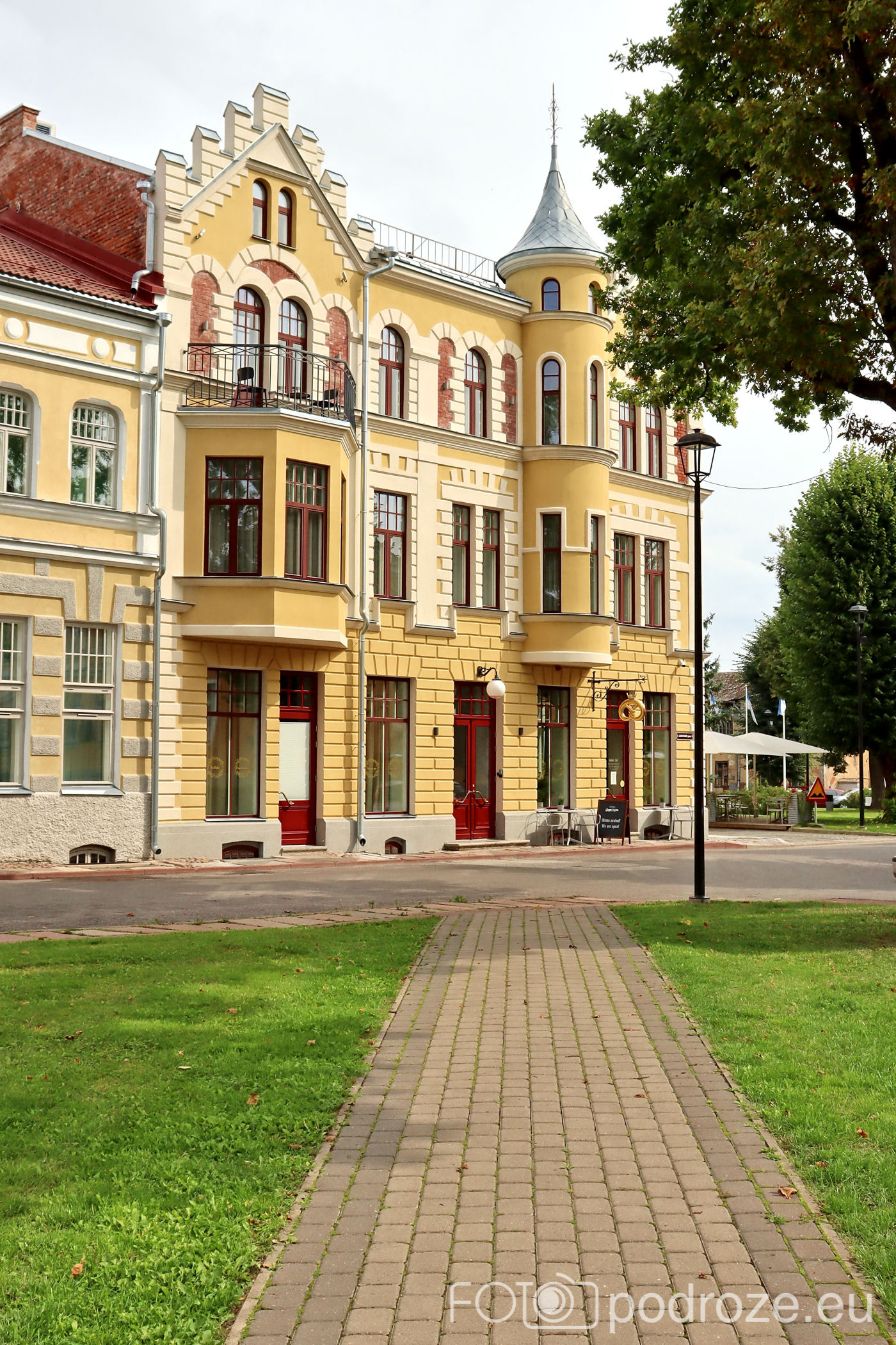Uliczki, które pokazałam powyżej kierują mnie prosto do serca miasta. Tu znajduje się kilka placów i parków. Pierwszy z nich to główny plac Laidoneri . Przy placu znajduje się kilka obiektów usługowych , urząd oraz muzeum. Najbardziej rzuca się jednak w oczy przepięknie odnowiony budynek hotelu – Park Hotell Viljandi