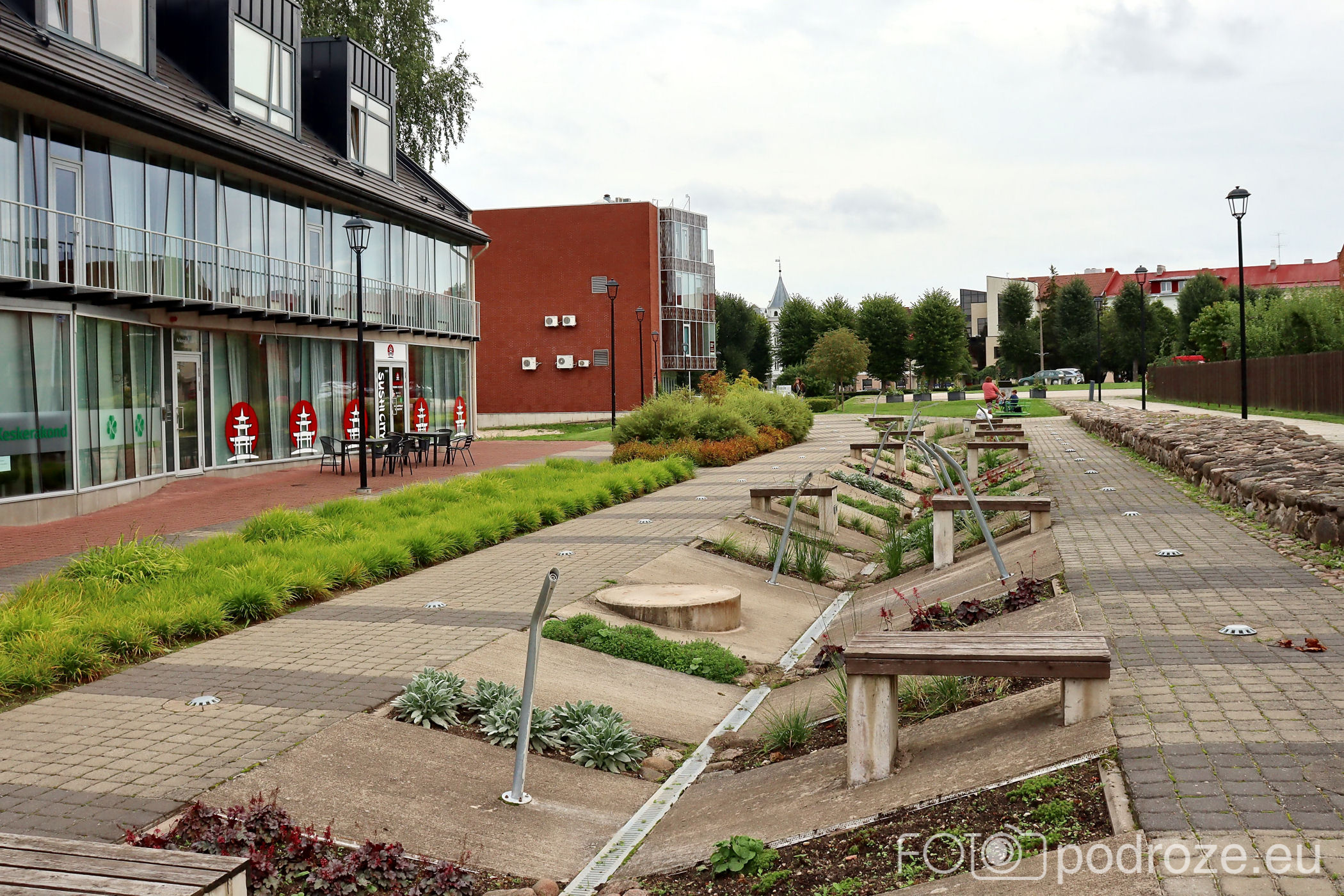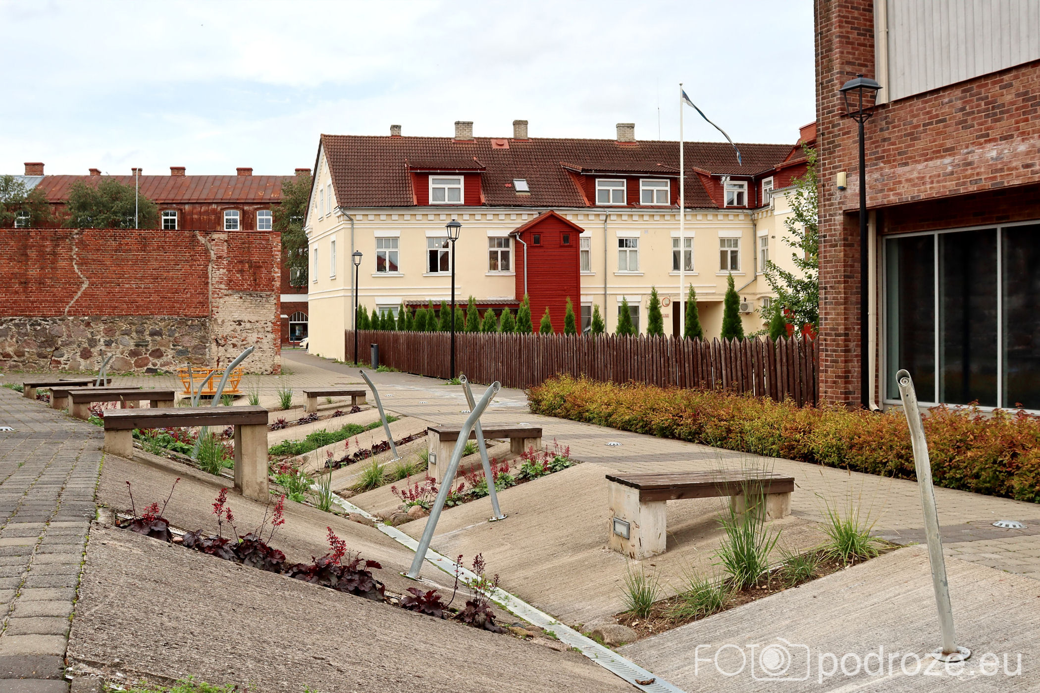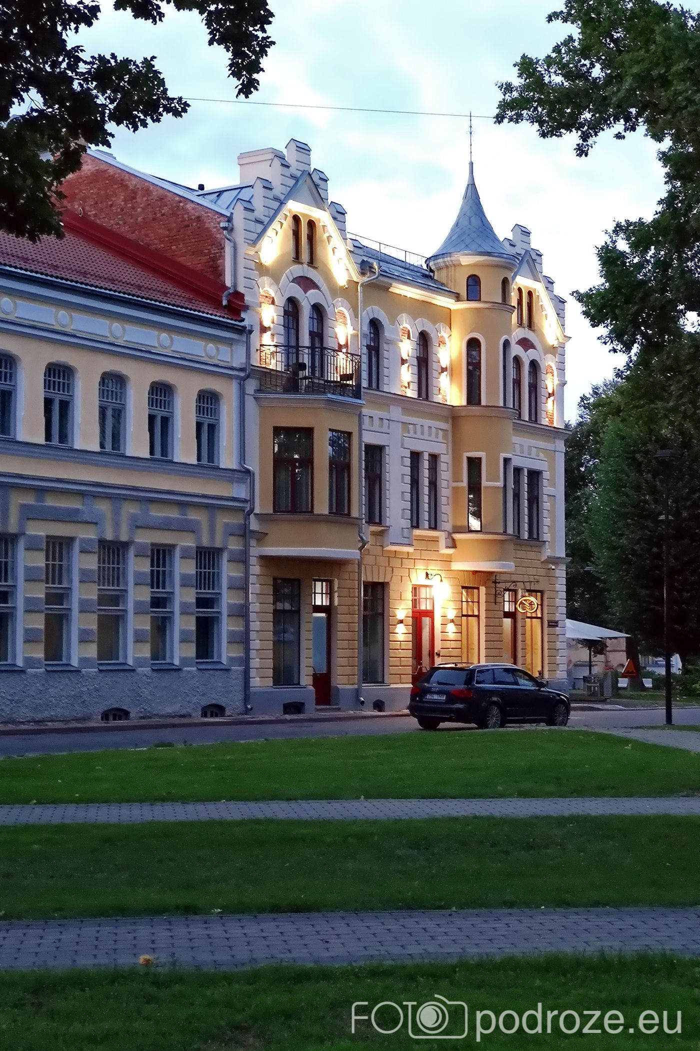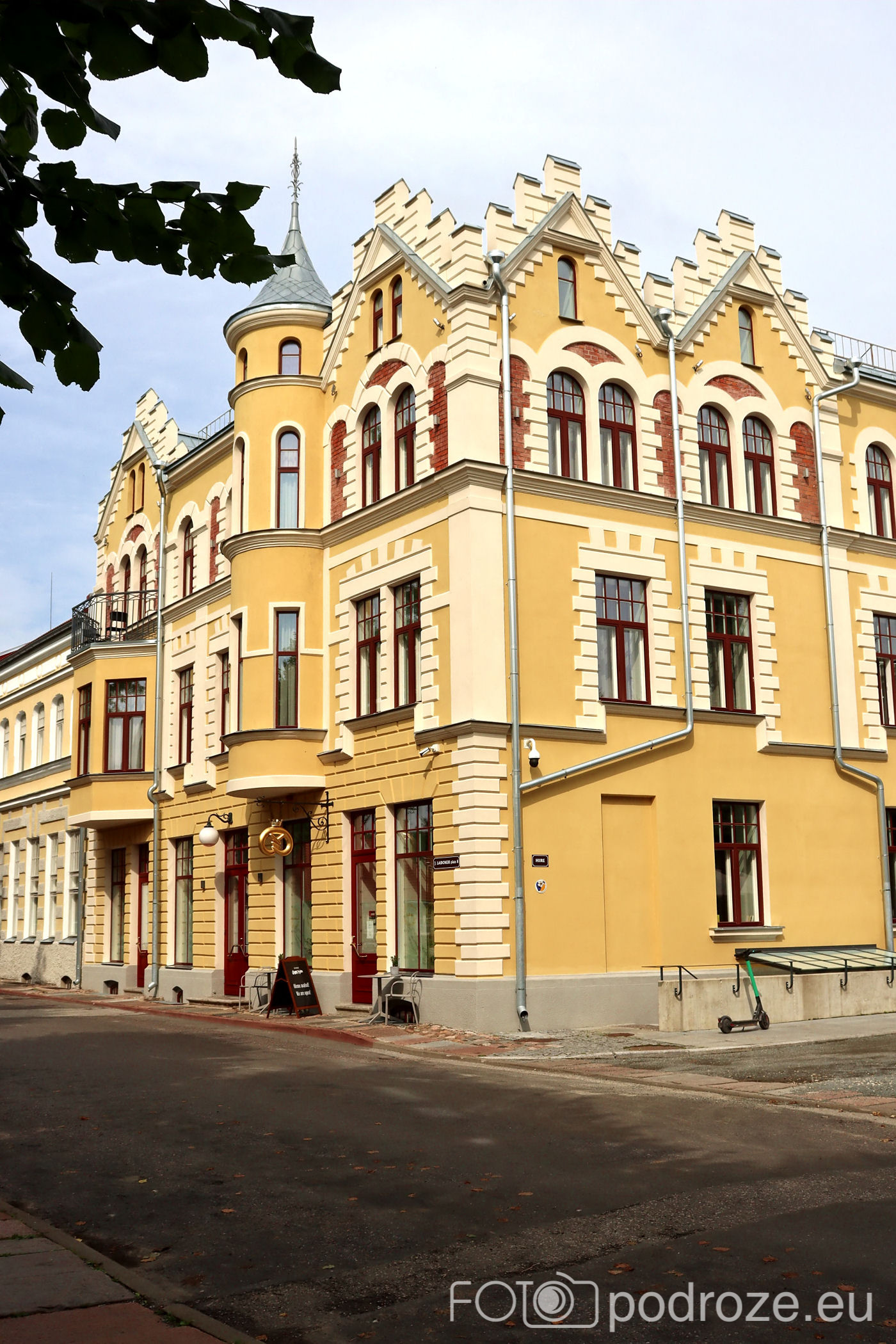 Uliczki, które pokazałam powyżej kierują mnie prosto do serca miasta. Tu znajduje się kilka placów i parków. Pierwszy z nich to główny plac Laidoneri . Przy placu znajduje się kilka obiektów usługowych , urząd oraz muzeum. Najbardziej rzuca się jednak w oczy przepięknie odnowiony budynek hotelu – Park Hotell Viljandi