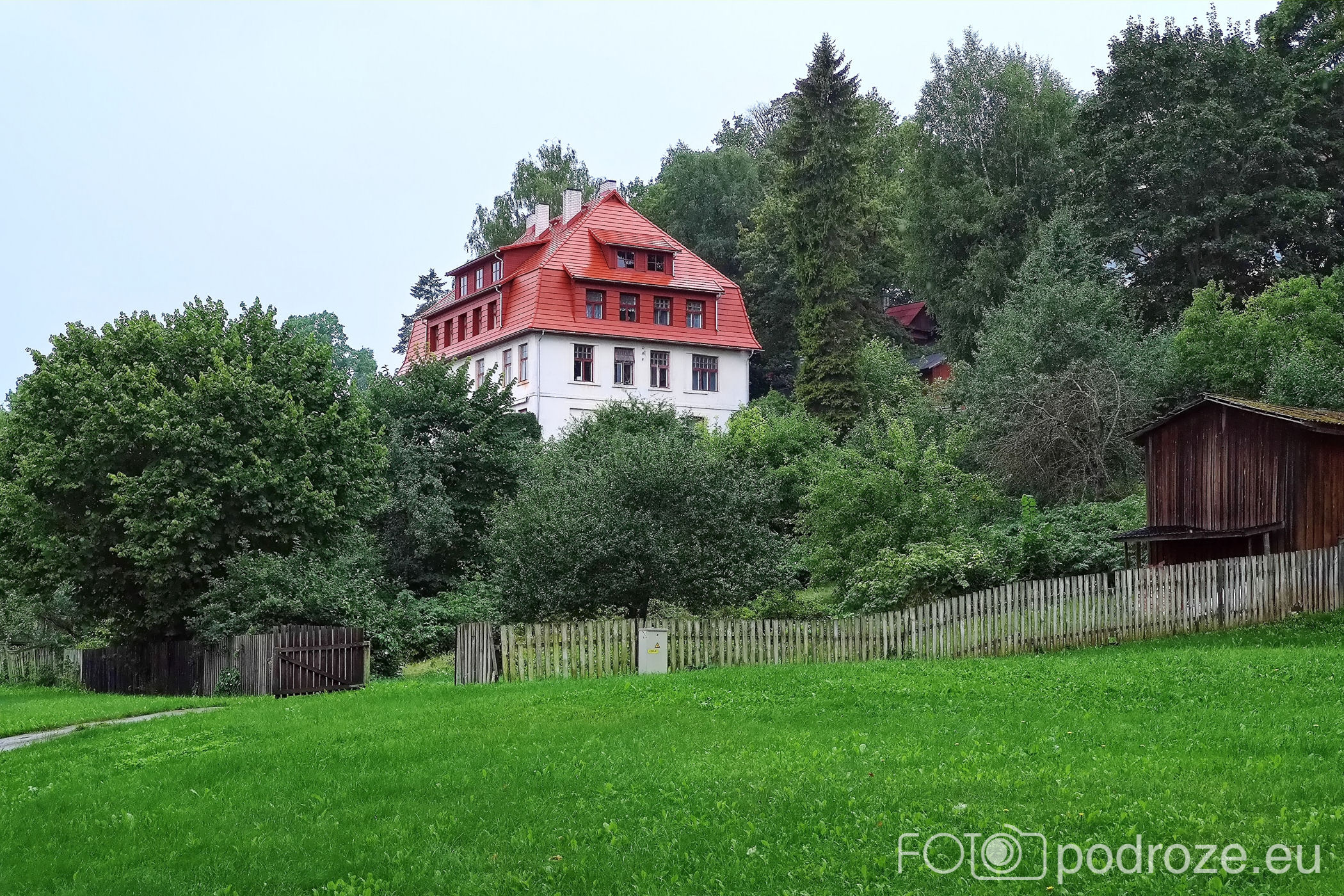 Tuż za szkołą sportową zaczyna się park, a w środku niego odnajdujemy budynek dworu. Pochodzi on z tego samego okresu co rotunda, był po prostu budynkiem mieszkalnym przy stajni, ale obecnie mieści się w nim szkoła średnia.